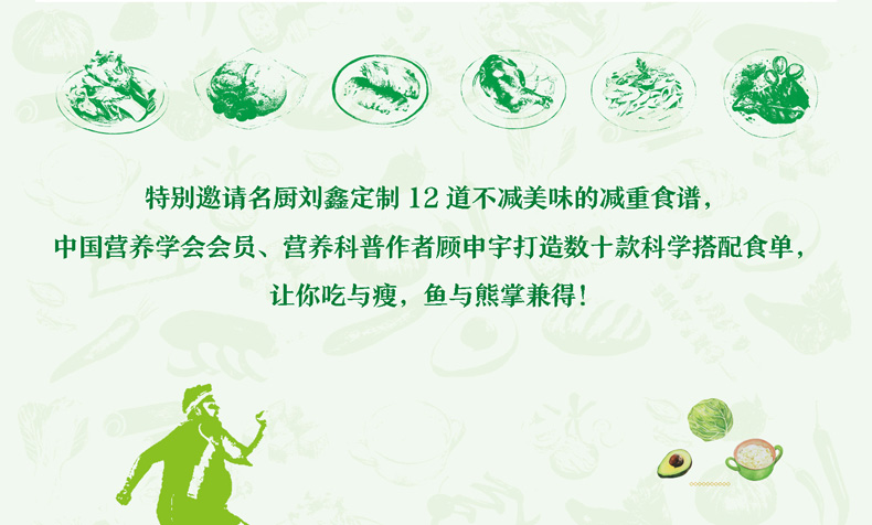 本书还邀请名厨刘鑫定制12道不减美味的减重餐谱,中国营养学会会员、营养科普作者顾申宇打造数十款科学搭配食单,让你吃与瘦,鱼与熊掌兼得!