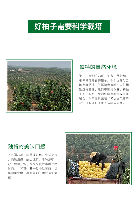 引进种植上百个柚子品种,选择与当地土壤特性、气候特点等种植条件相适应的品种,不断筛选并改善,将柚子生长的每一个时刻与当地气候完美融合,最终得到优选的晚熟有机心柚!