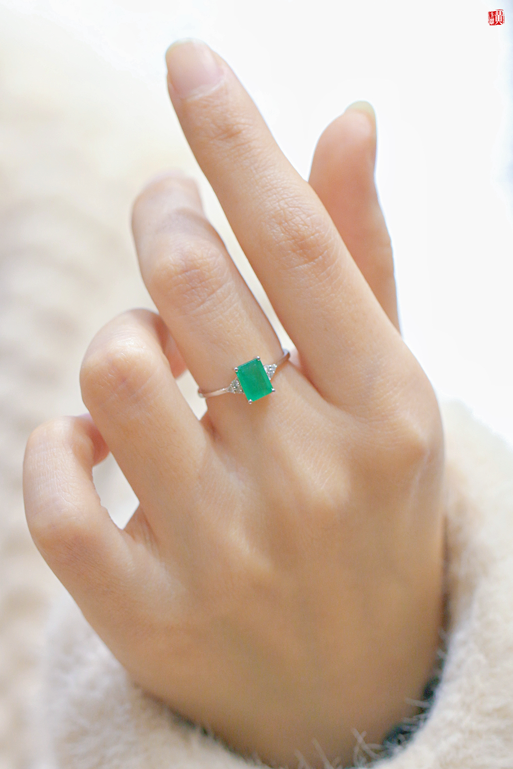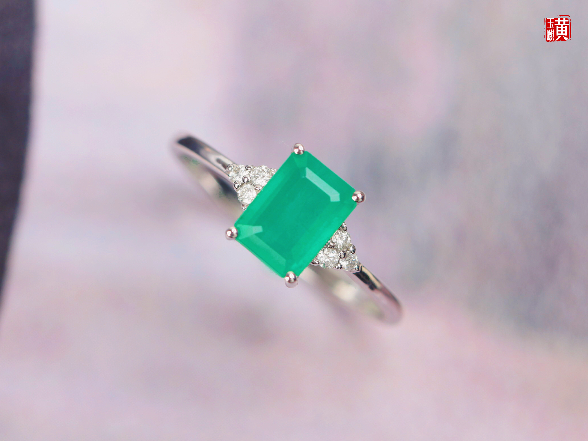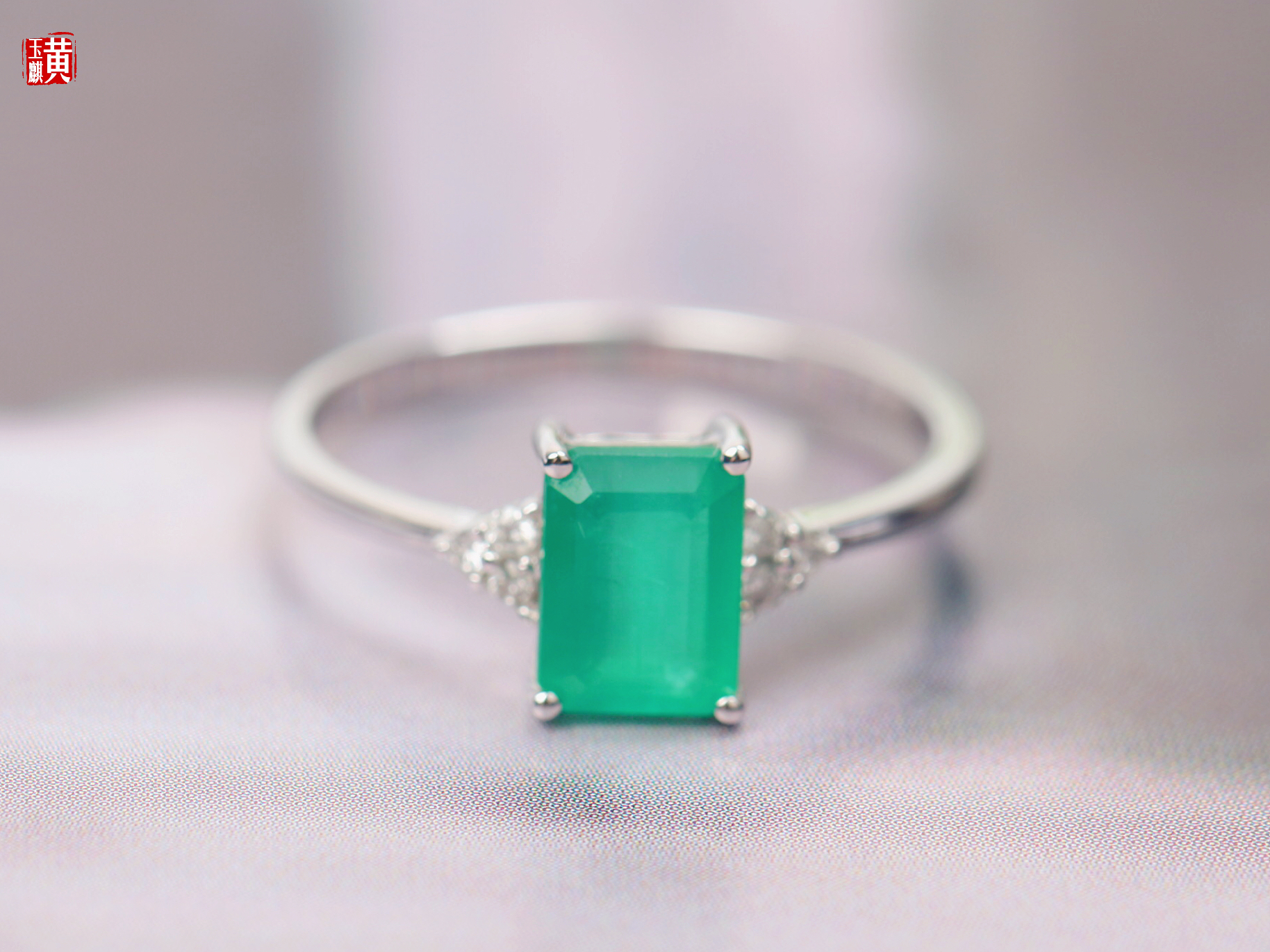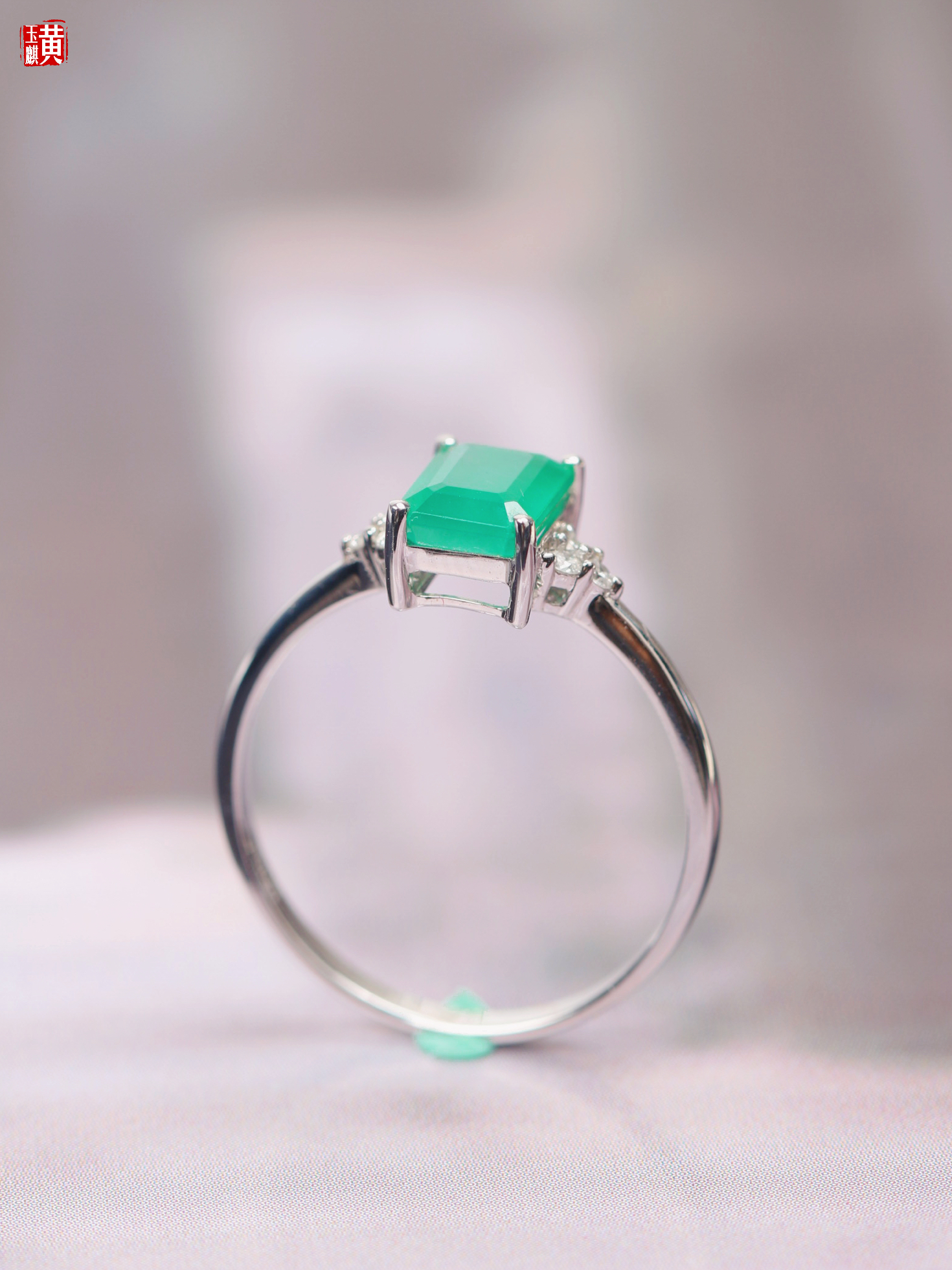 【指尖流沙】18k金镶祖母绿石戒指