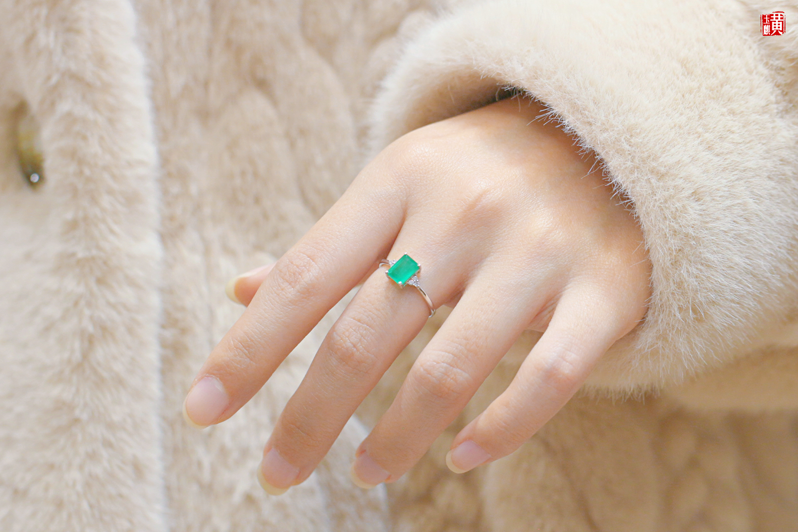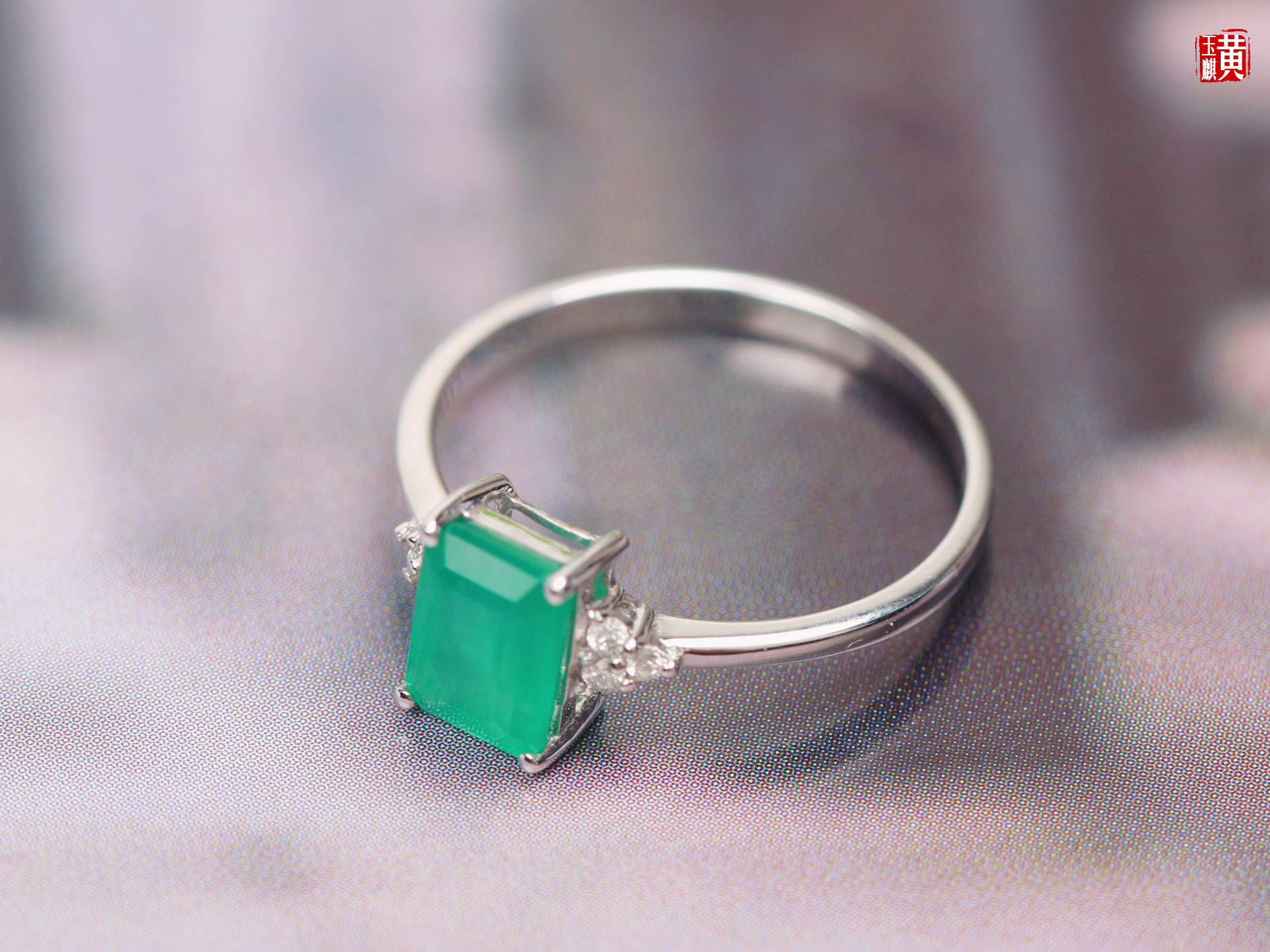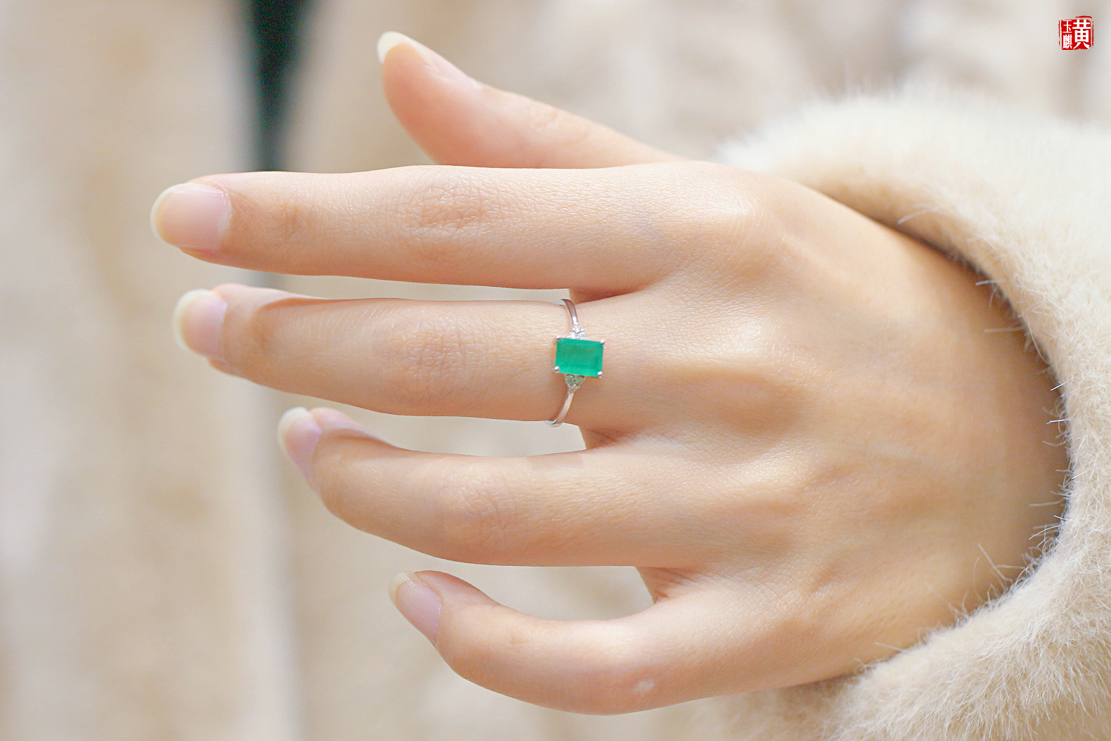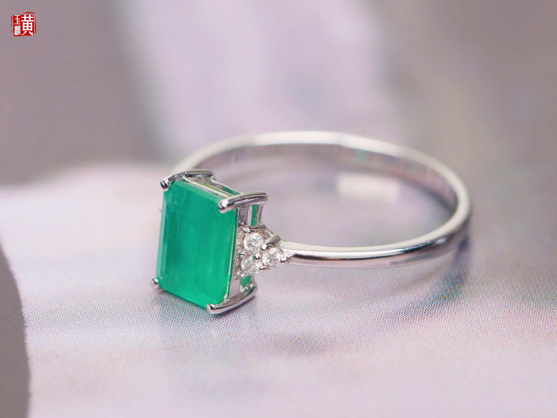 【指尖流沙】18k金镶祖母绿石戒指