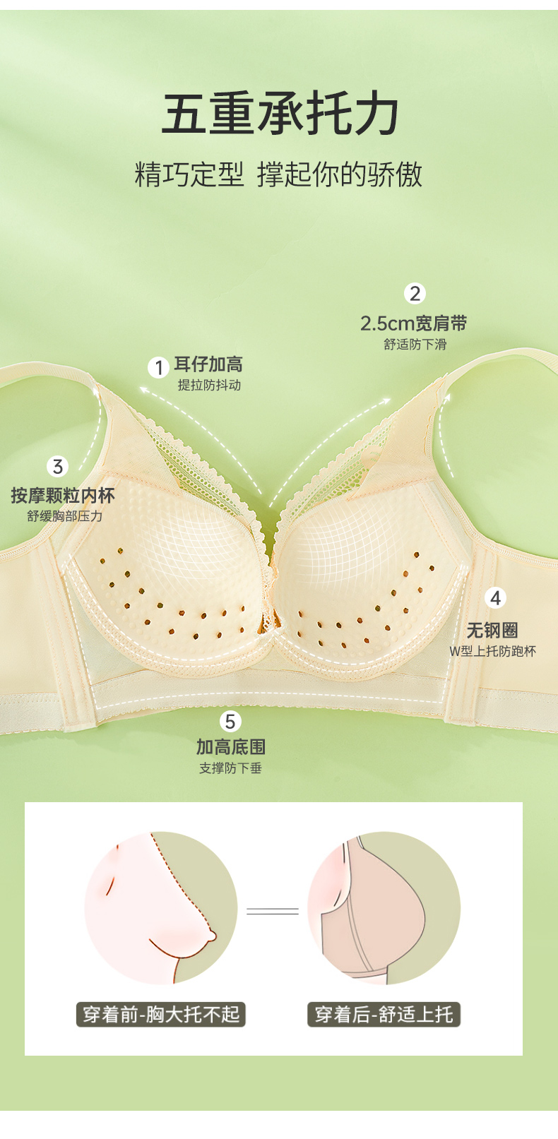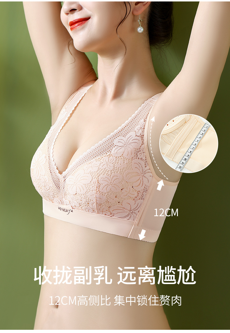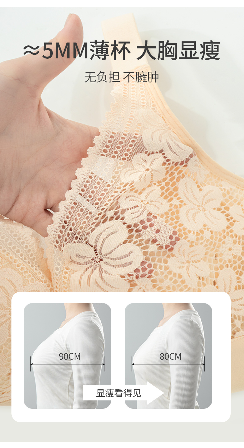 雅黛丽内衣女大胸显小薄款洞洞杯透气文胸无钢圈收副乳防下垂胸罩