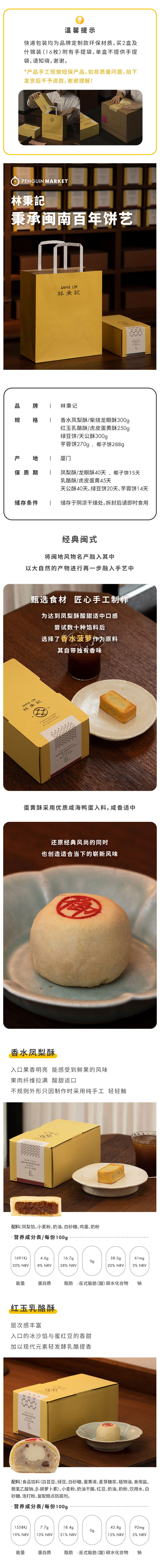 企鹅市集|林秉记经典闽式手工制作糕点礼盒 椰子饼/香水凤梨酥/乳酪酥/蛋黄酥/芋蓉饼/绿豆糕多口味