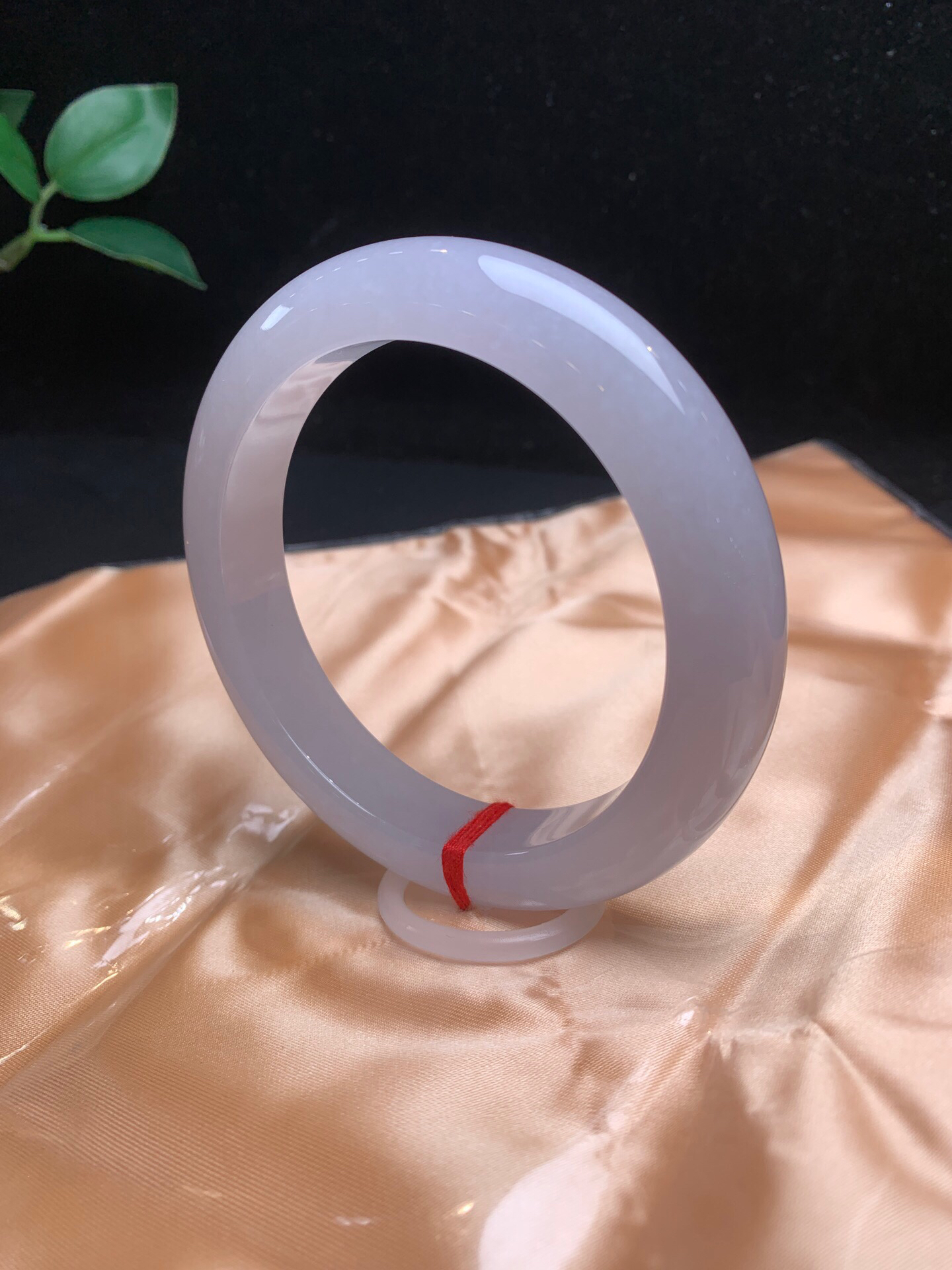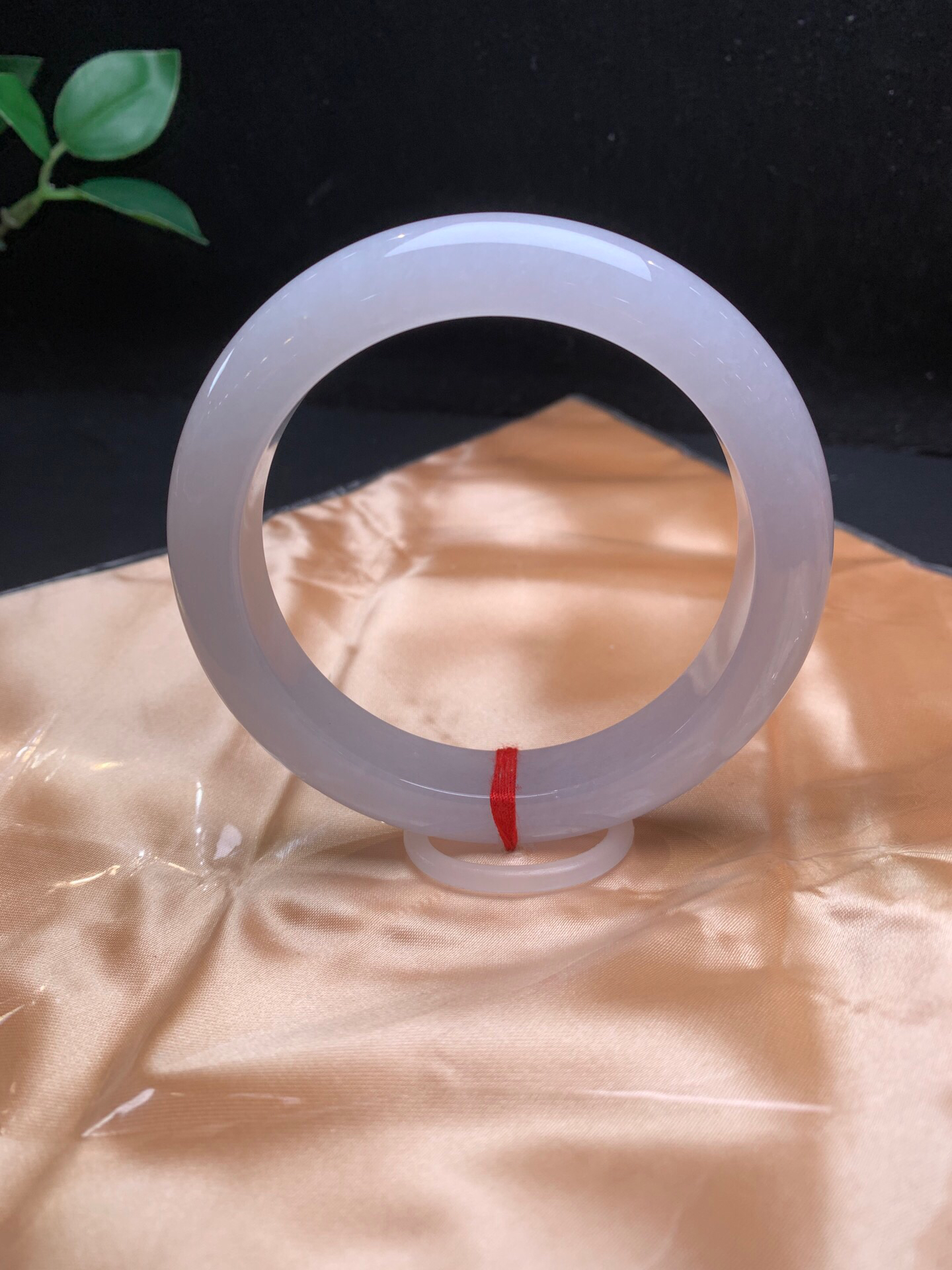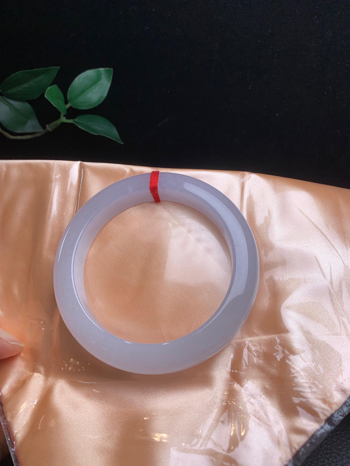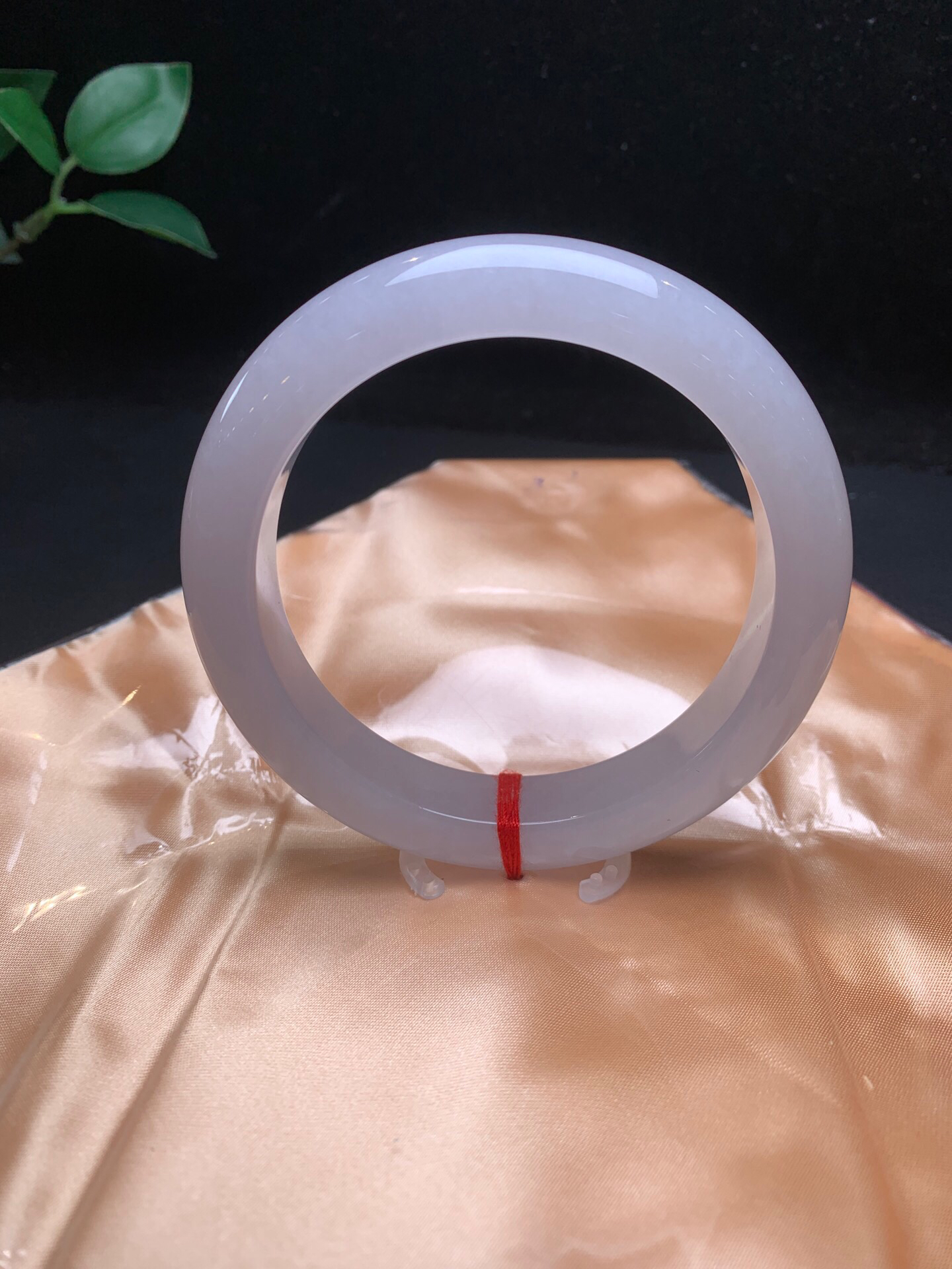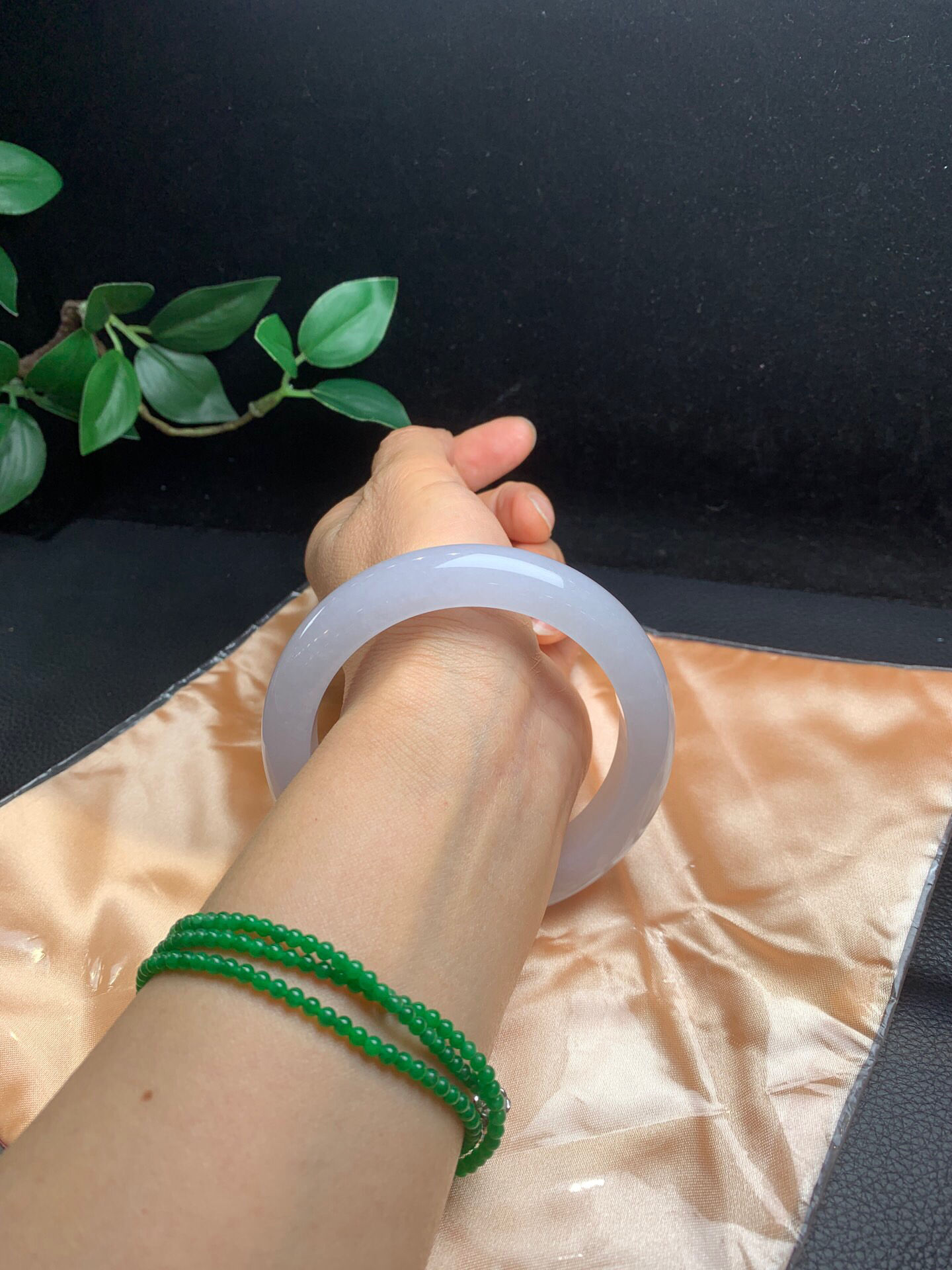 612929,62.5冰底淡春手镯,淡紫罗兰底大圈,整条都润润的,干净清爽