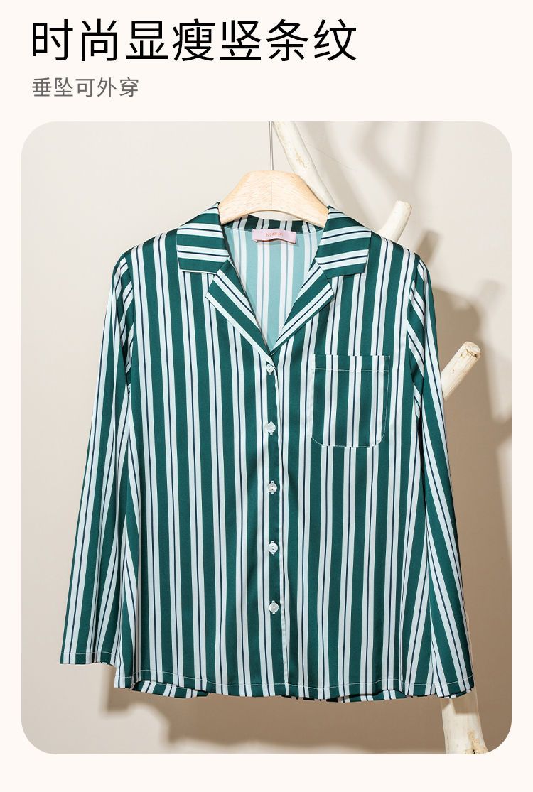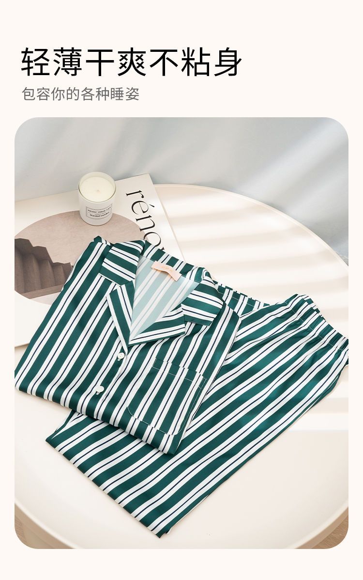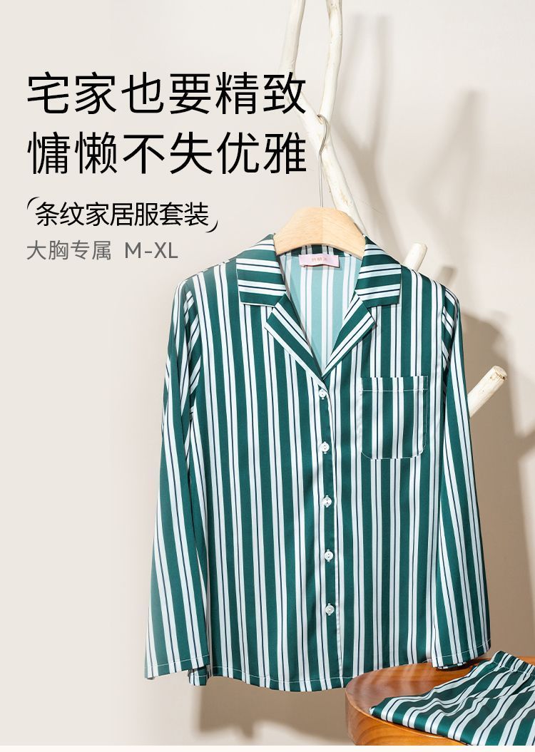 奶糖派大胸显瘦条纹家居服套装优雅垂顺轻盈干爽睡衣时尚可外穿