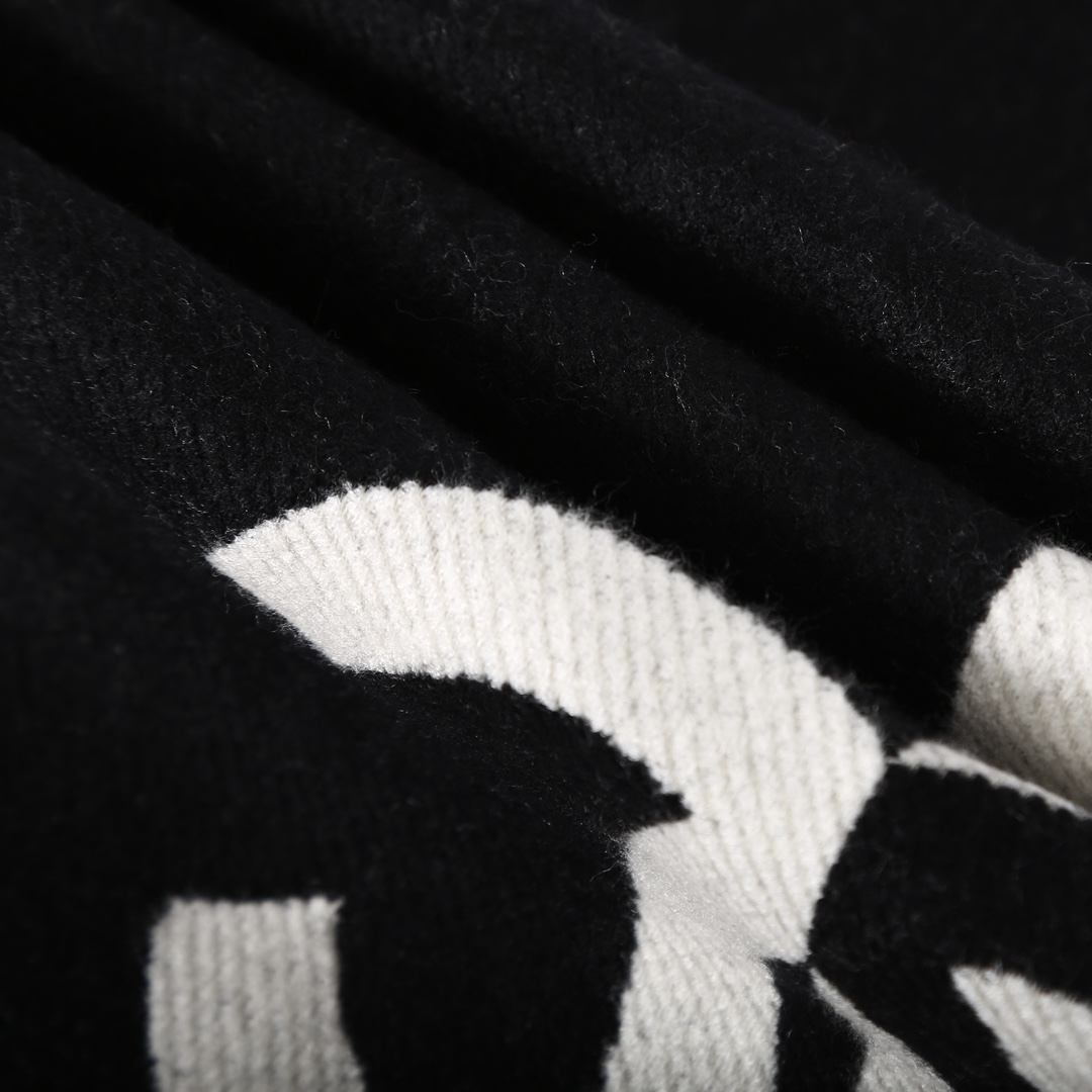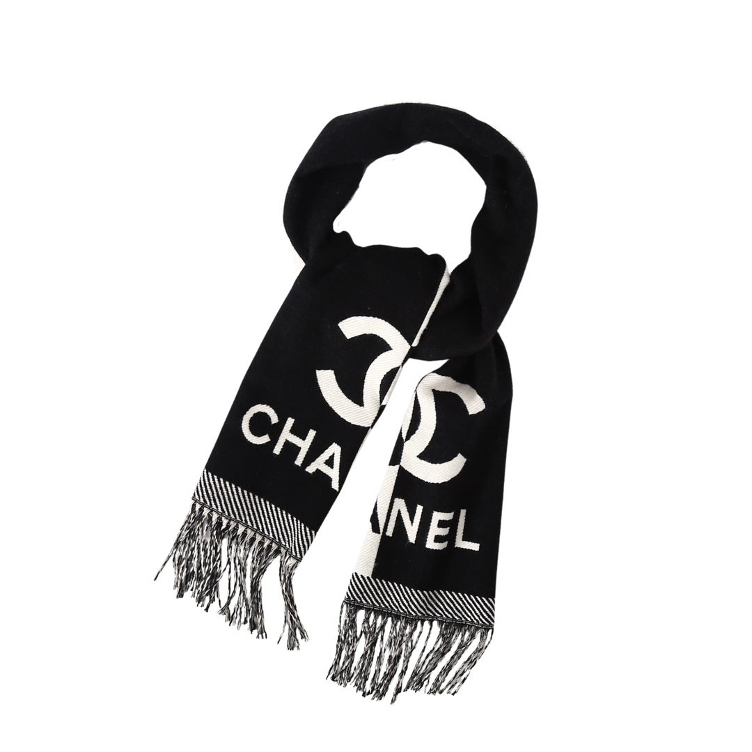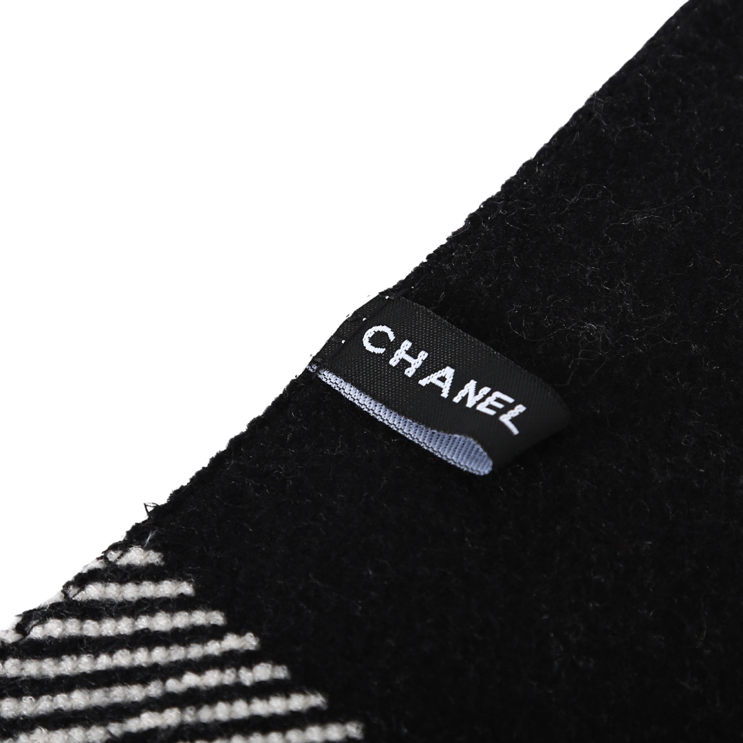 CHANEL新《双面拼色提花》经典黑色!双面异色提花-两面完全相反的颜色及图案-设计真的非常走心,大LOGO与双C拼色点缀整条围巾! 面料巨流弊。90% 美丽奴初剪羊毛,作为羊毛界的天花板,半点不扎,温柔有质感,百搭不挑人!