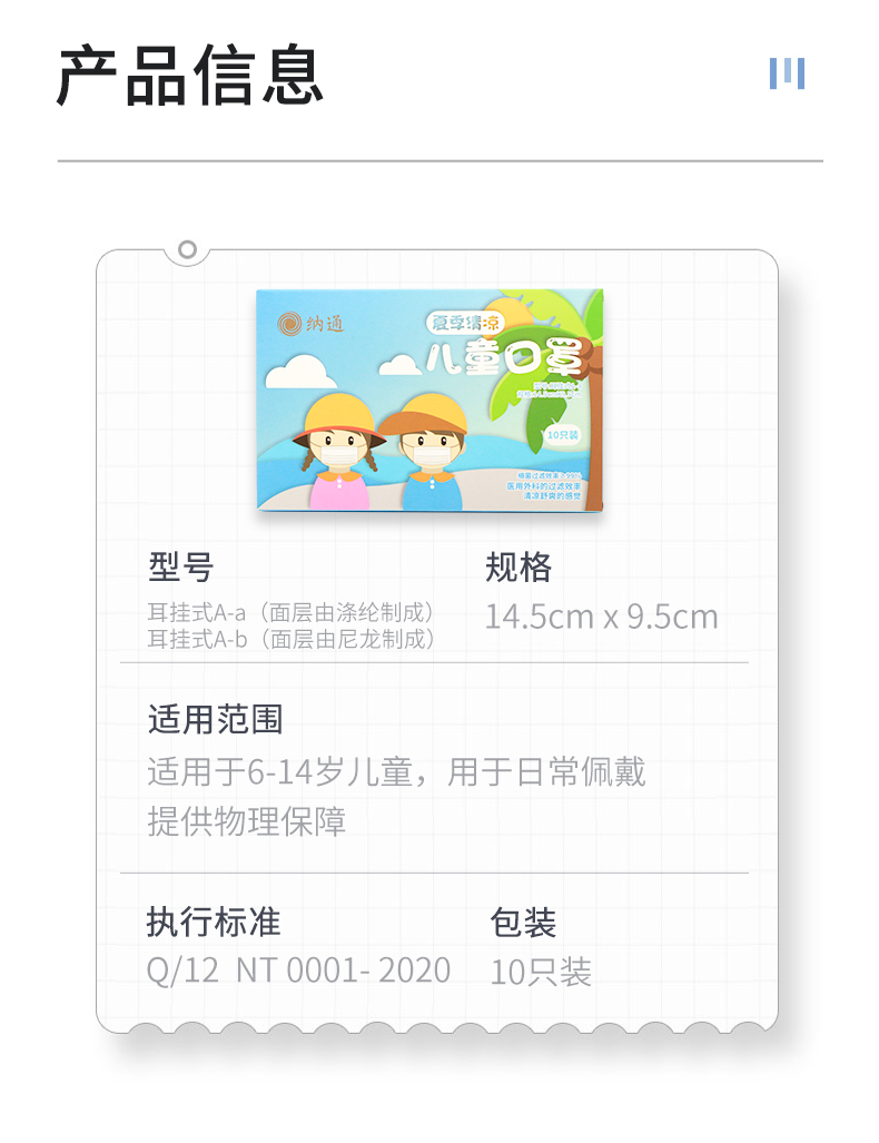 纳通夏季清凉儿童口罩 一次性防护口罩 现货包邮