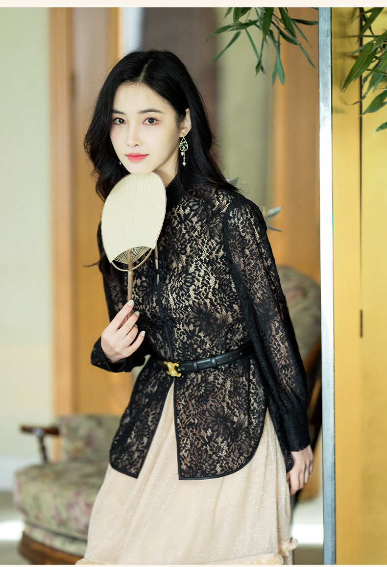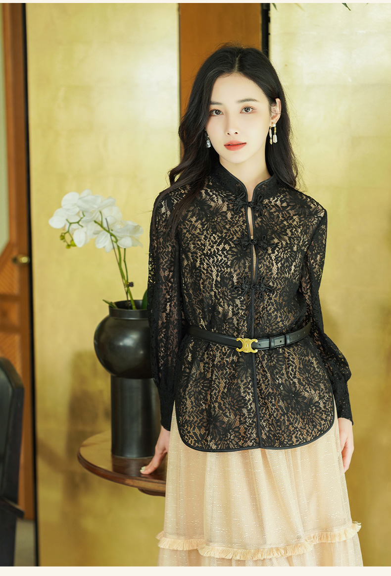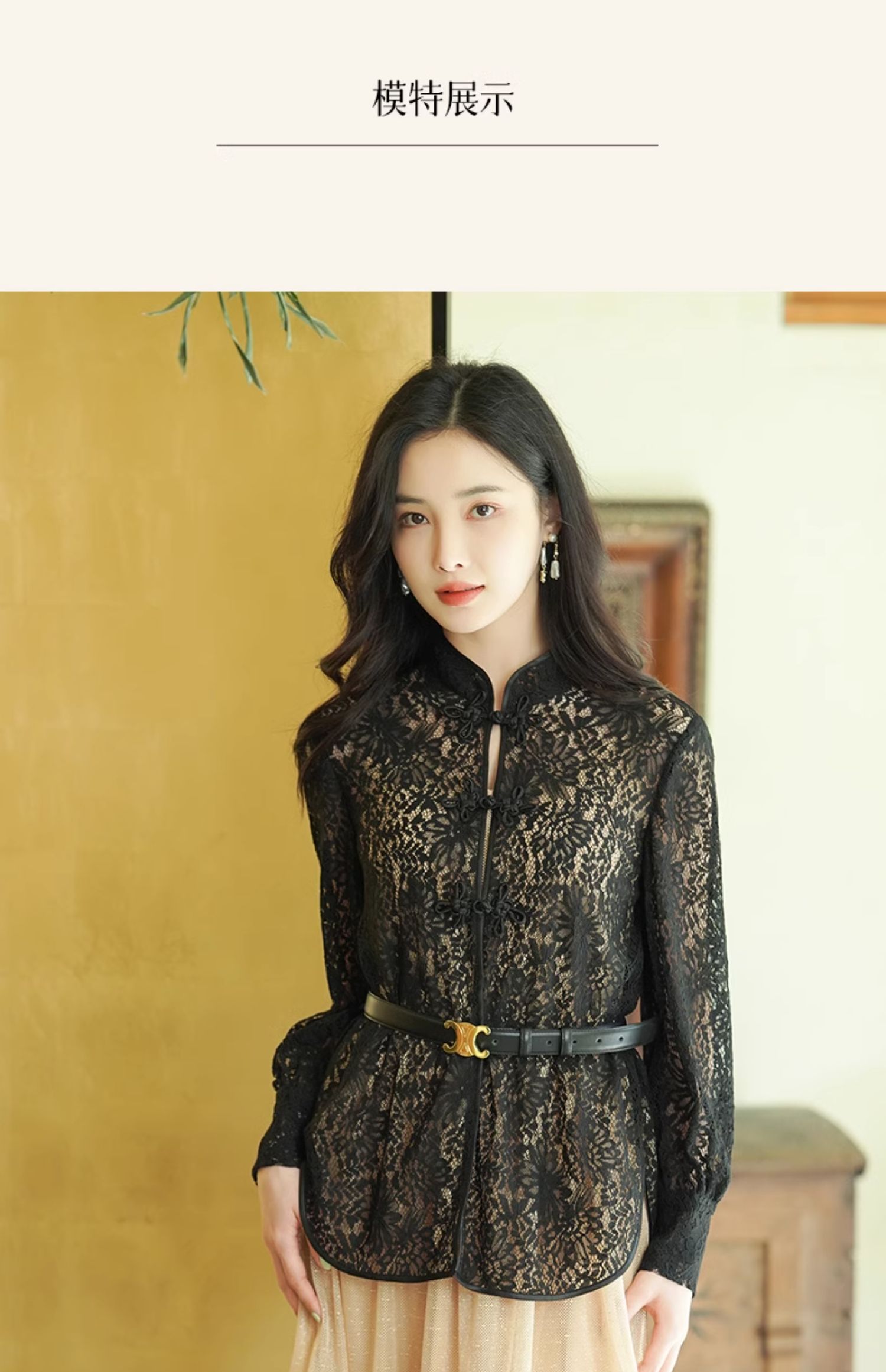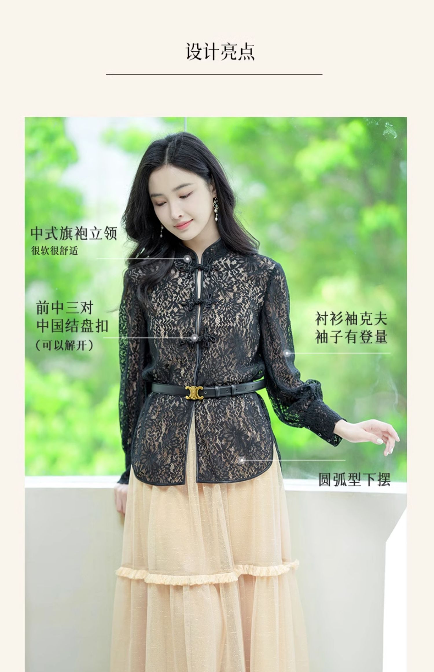 逸红颜青城2025年春季新款中式旗袍立领衬衫精致股线蕾丝法式风情