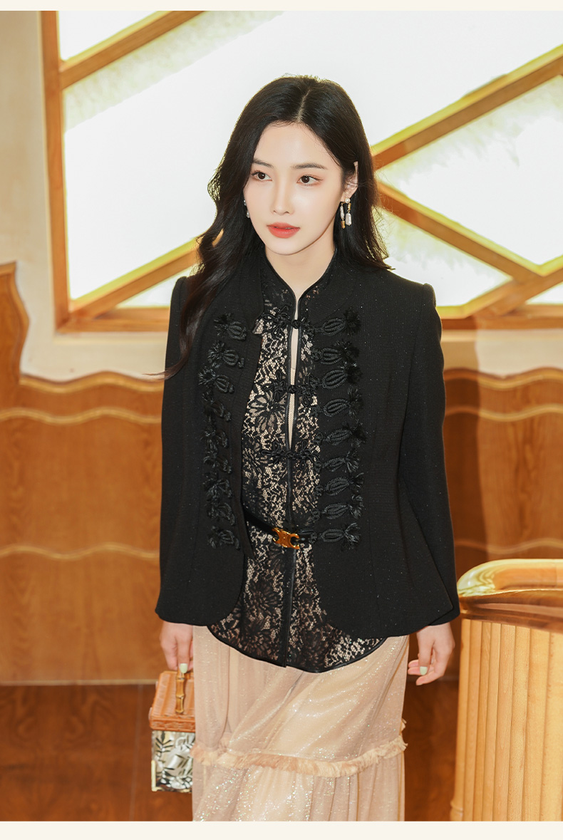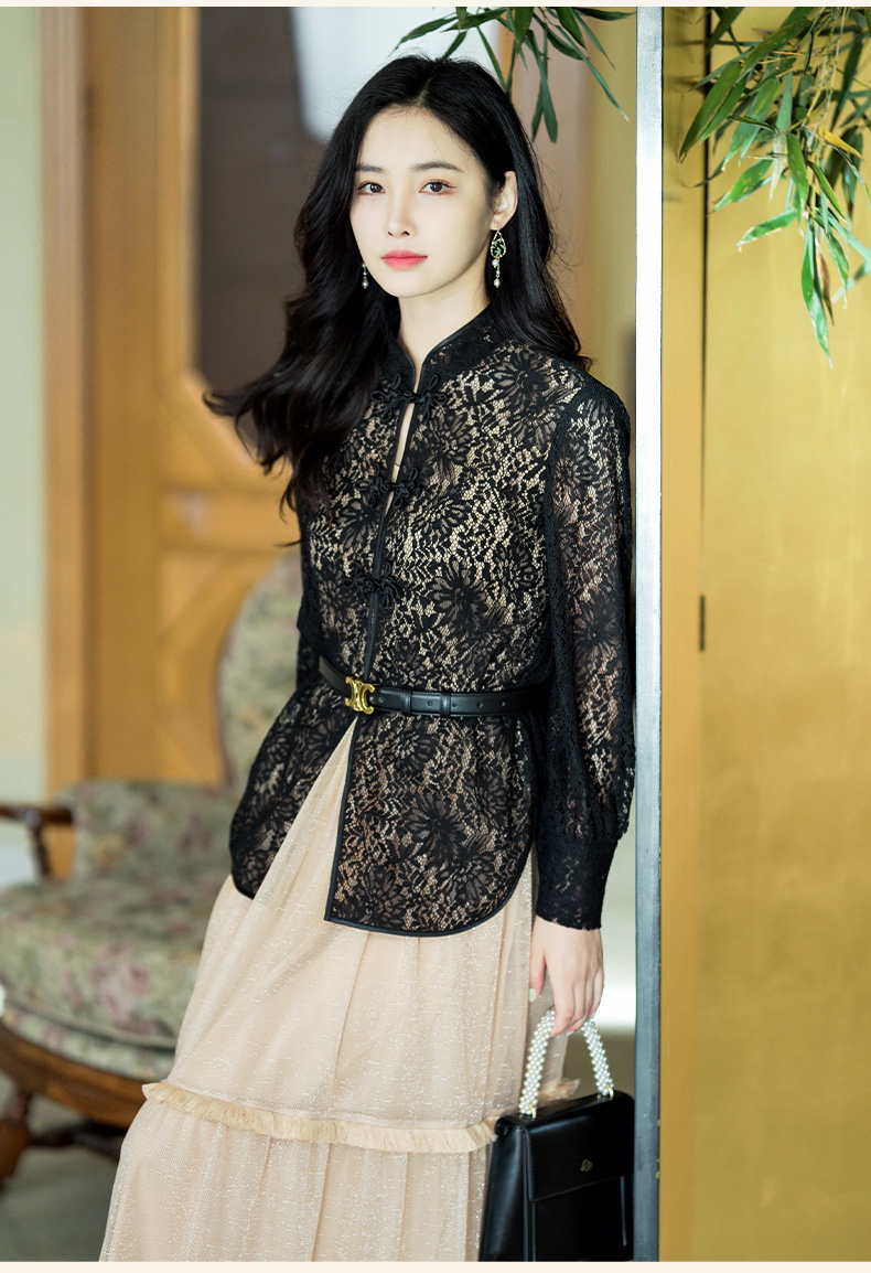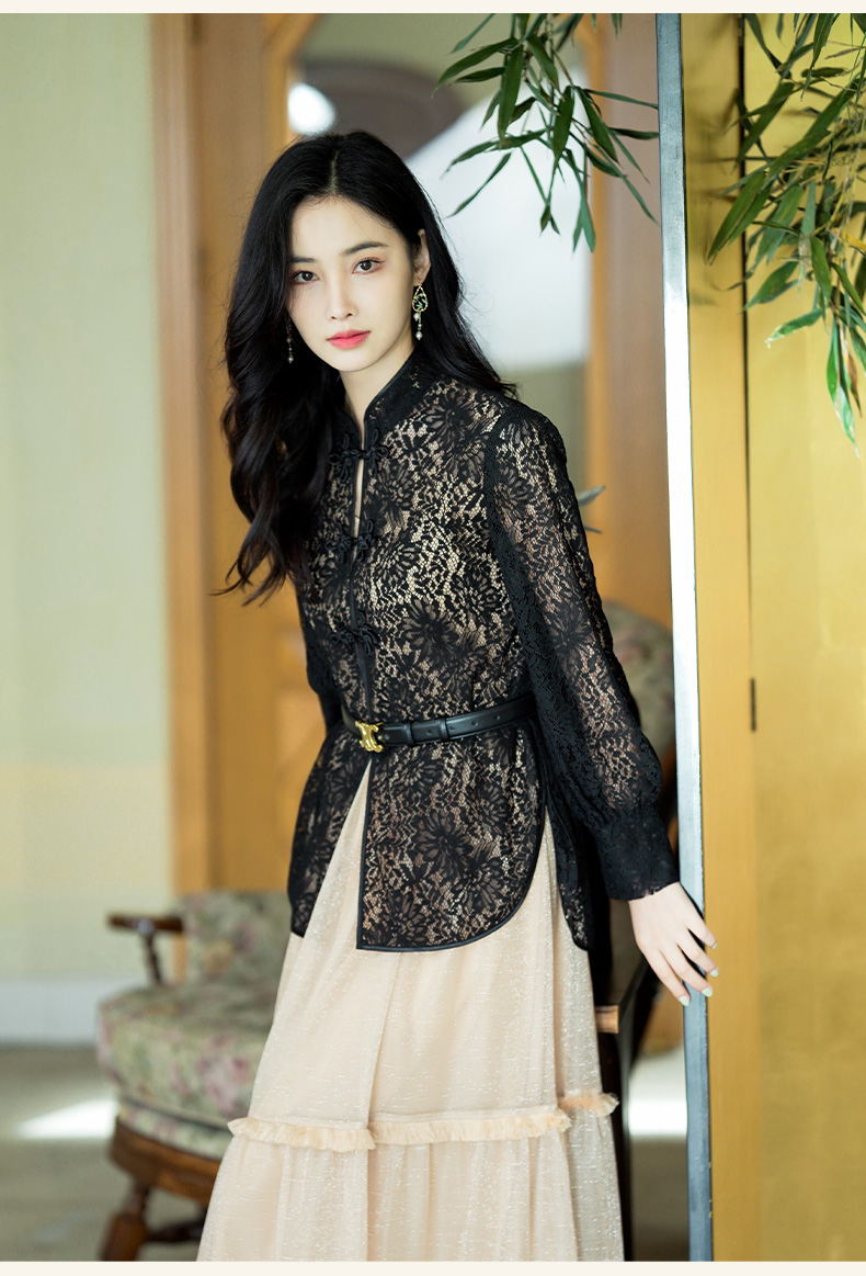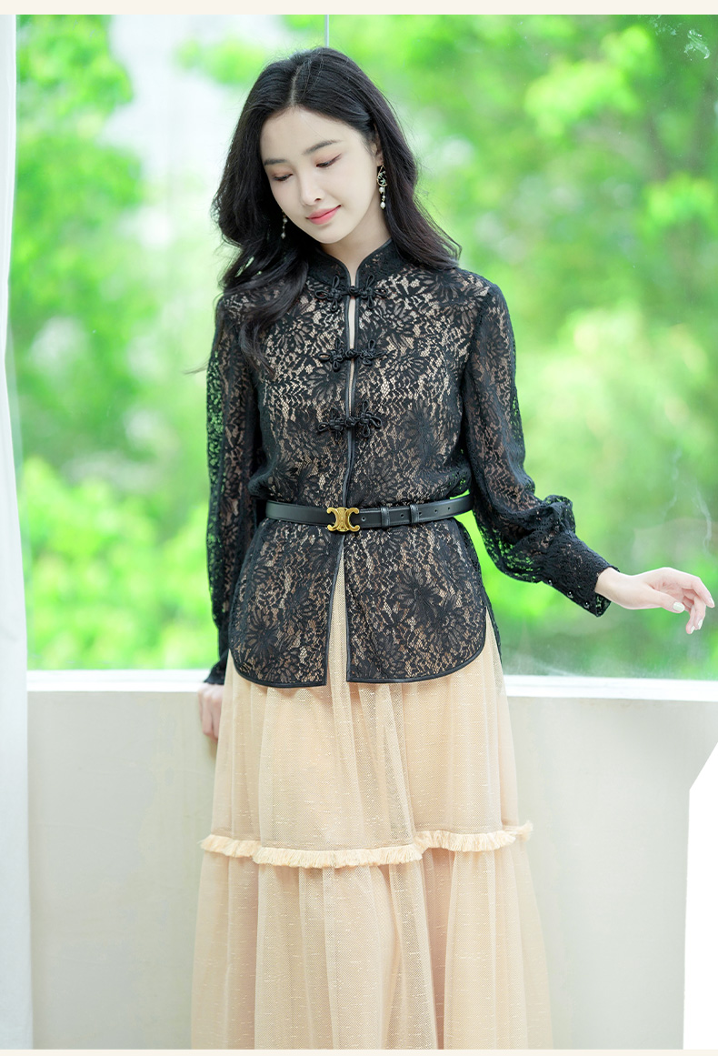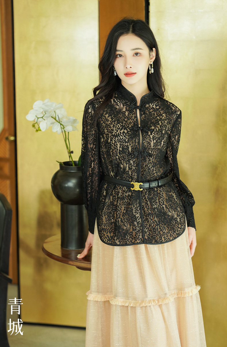逸红颜青城2025年春季新款中式旗袍立领衬衫精致股线蕾丝法式风情