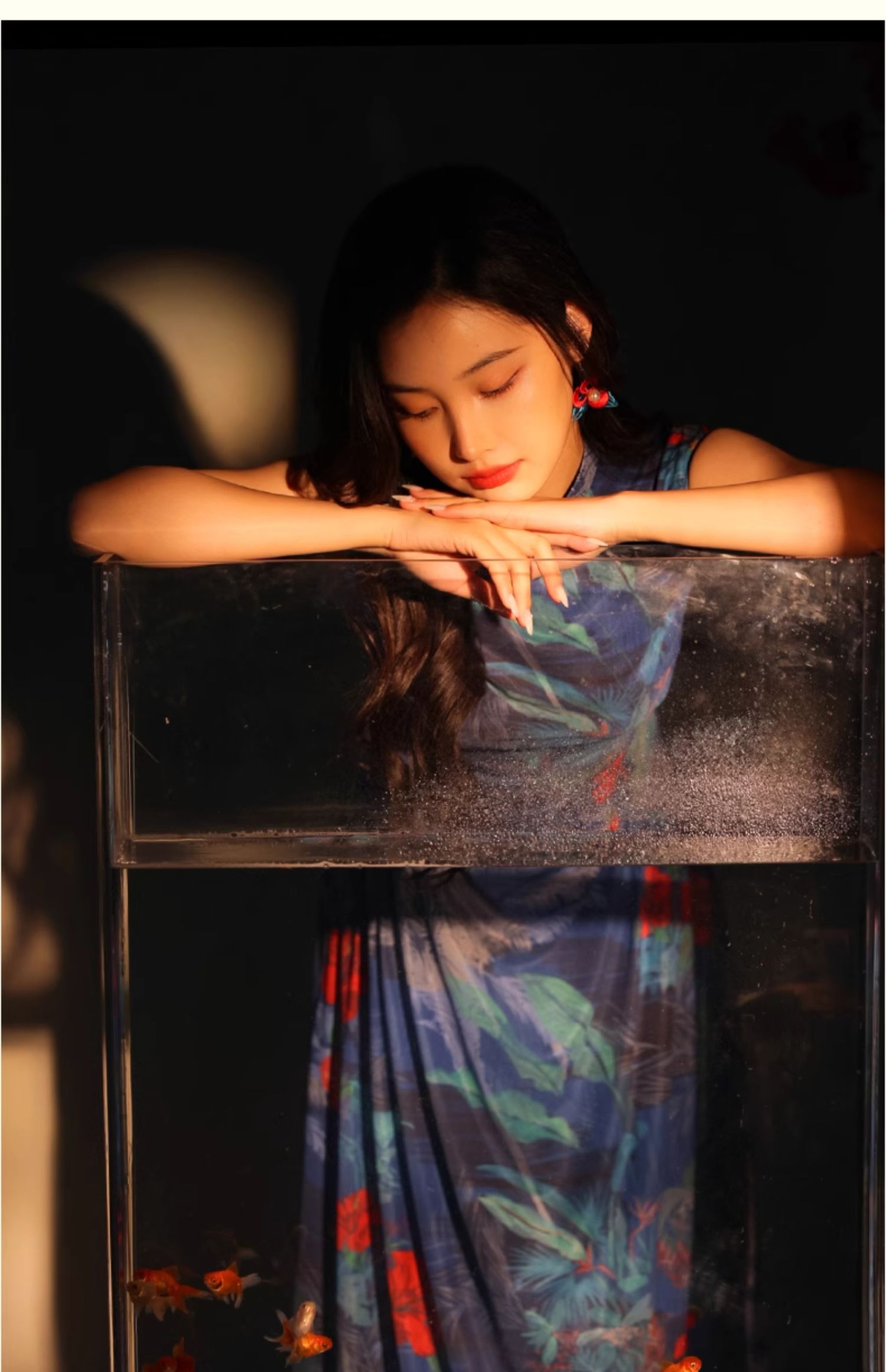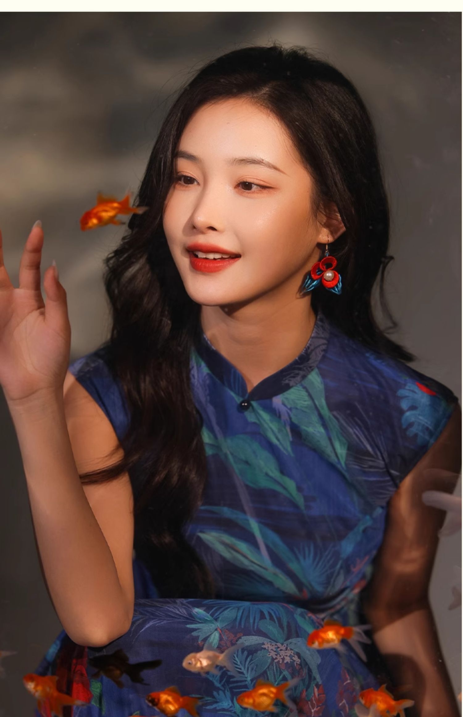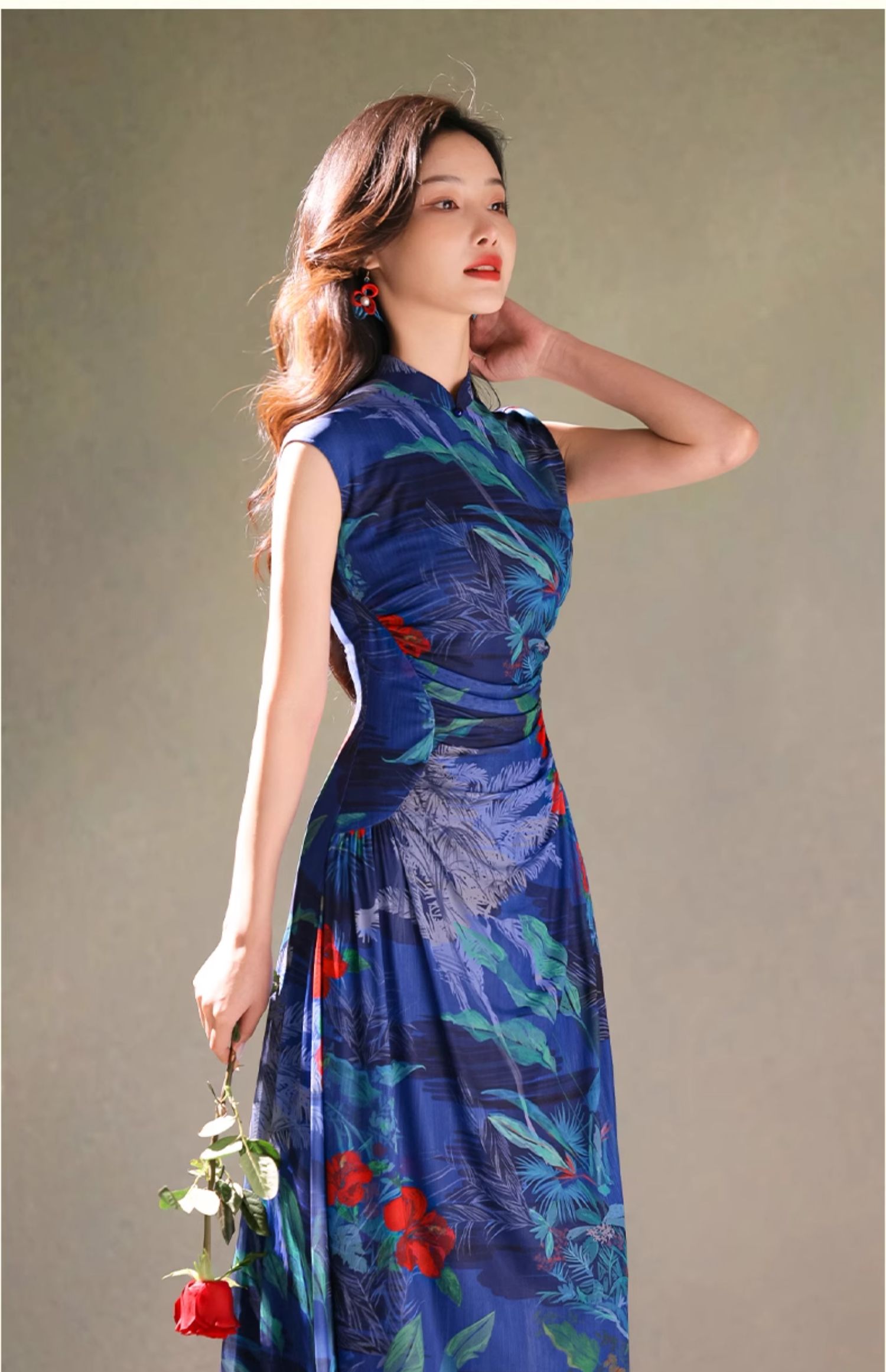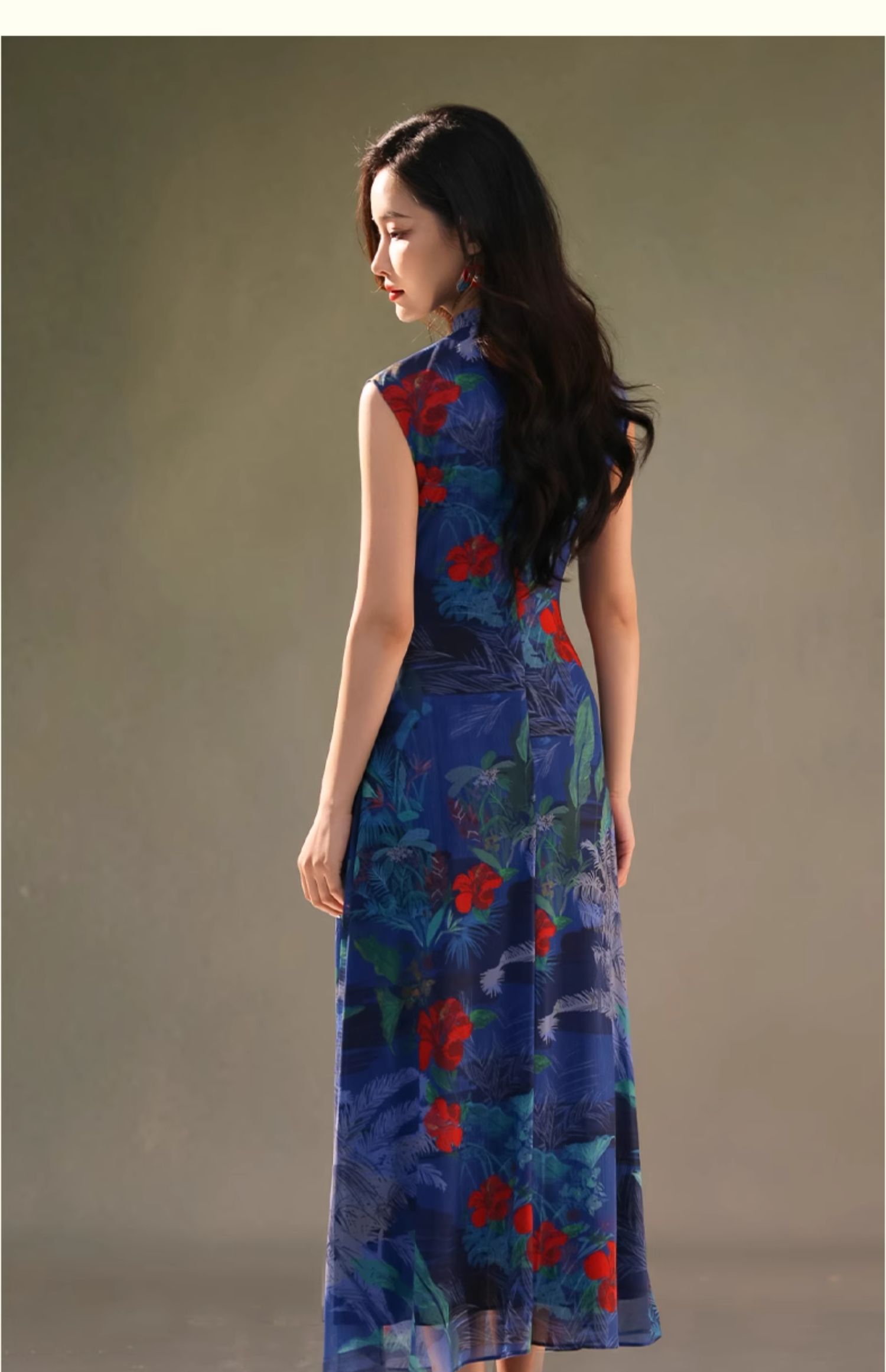 逸红颜浣黎2025夏新款冰感弹力网热辣集美度假风新中式大摆连衣裙