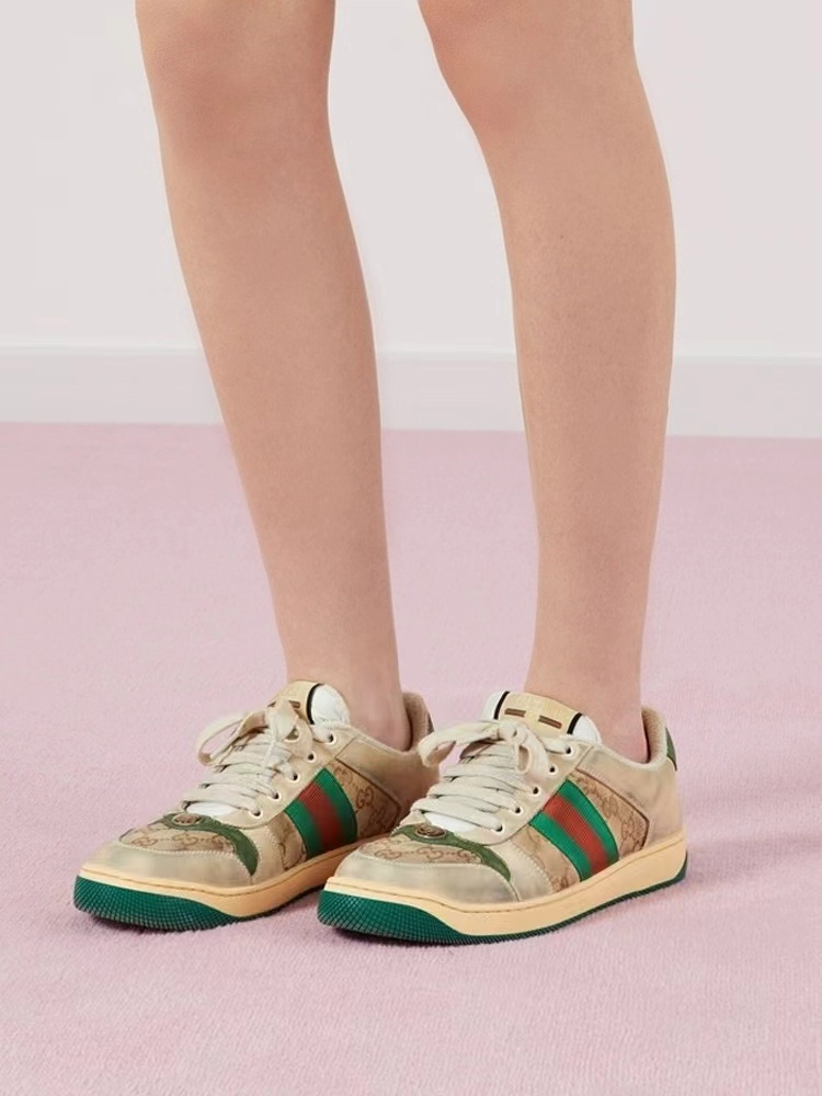 【2F】Luxemporium睿锦尚品 GUCCI古驰Screener系列女士皮革运动鞋 脏脏鞋