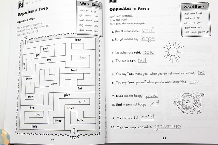 通过每册24个单元,每个单元3页的词汇训练扩展词汇量吧。每个单元包含探究性活动,运用孩子们已掌握的知识更好的理解词汇,以多种形式讲解词汇,以便他们真正记住这些词汇,扩大词汇量,提高单词的使用方式。单元主题包括同义词、反义词、复合词,同音词,前缀和后缀等等。 慢慢地,你还会发现孩子的表达能力、阅读能力显著提升!