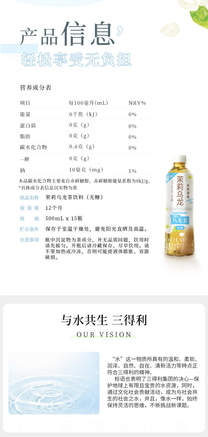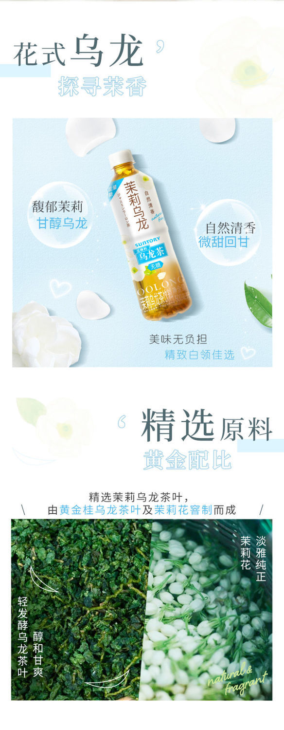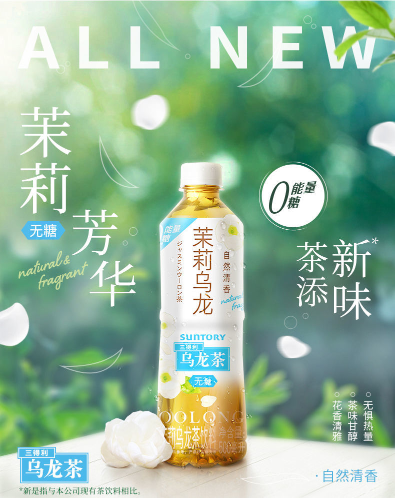 三得利无糖0糖 茉莉乌龙茶饮料 500ml冰镇饮料