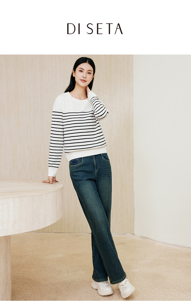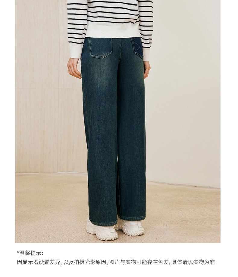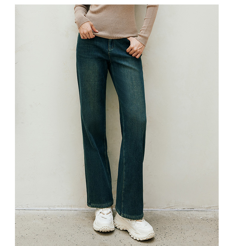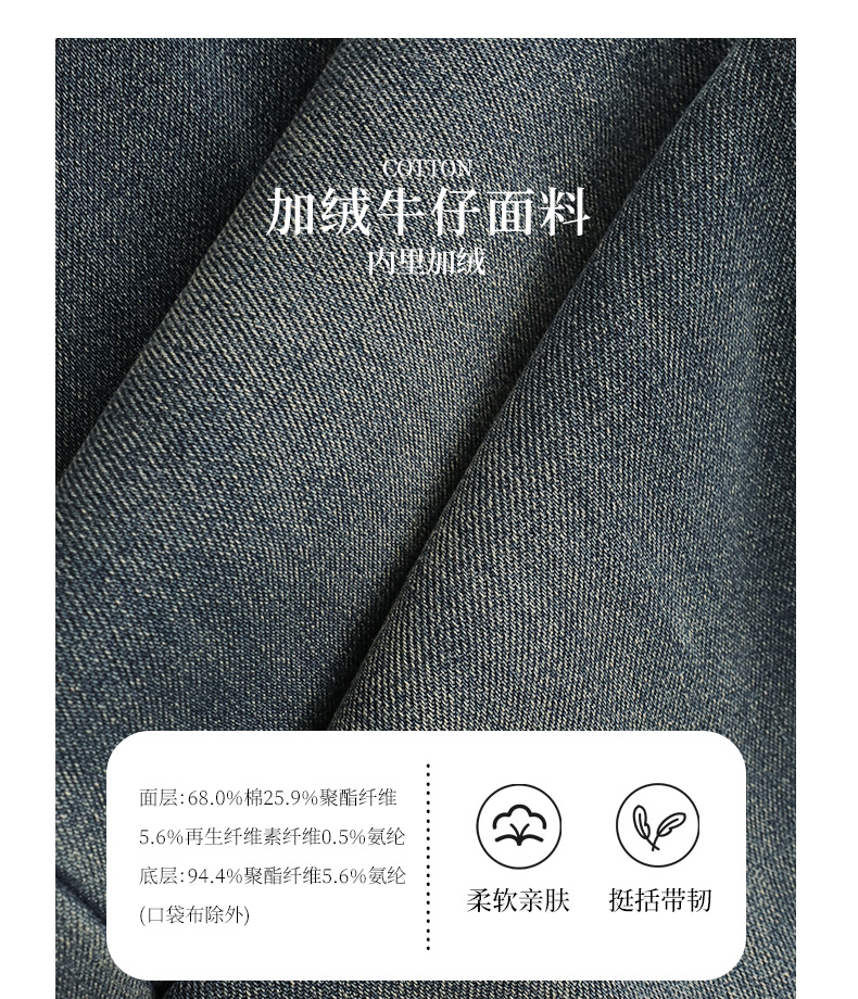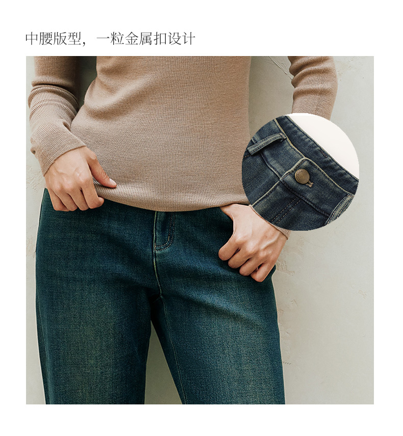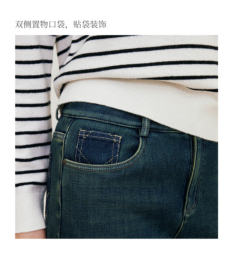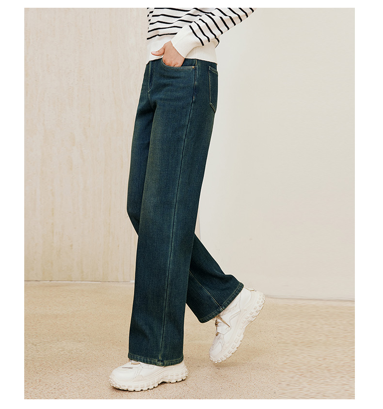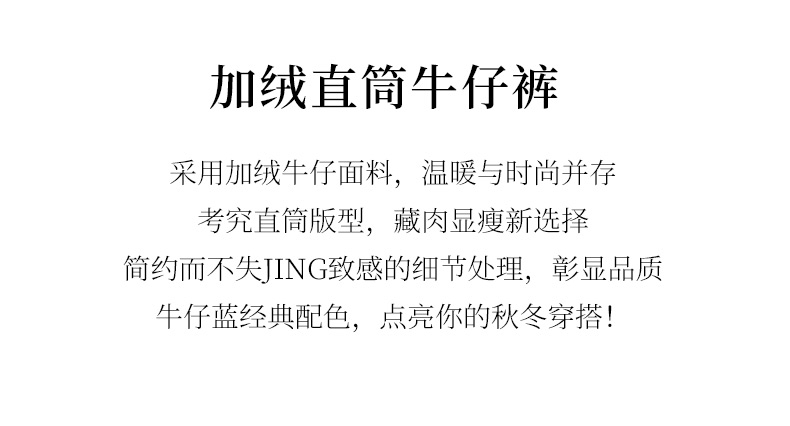 玳莎直筒加绒牛仔裤女2024年冬季新款复古百搭白暖显瘦休闲长裤 ED36307