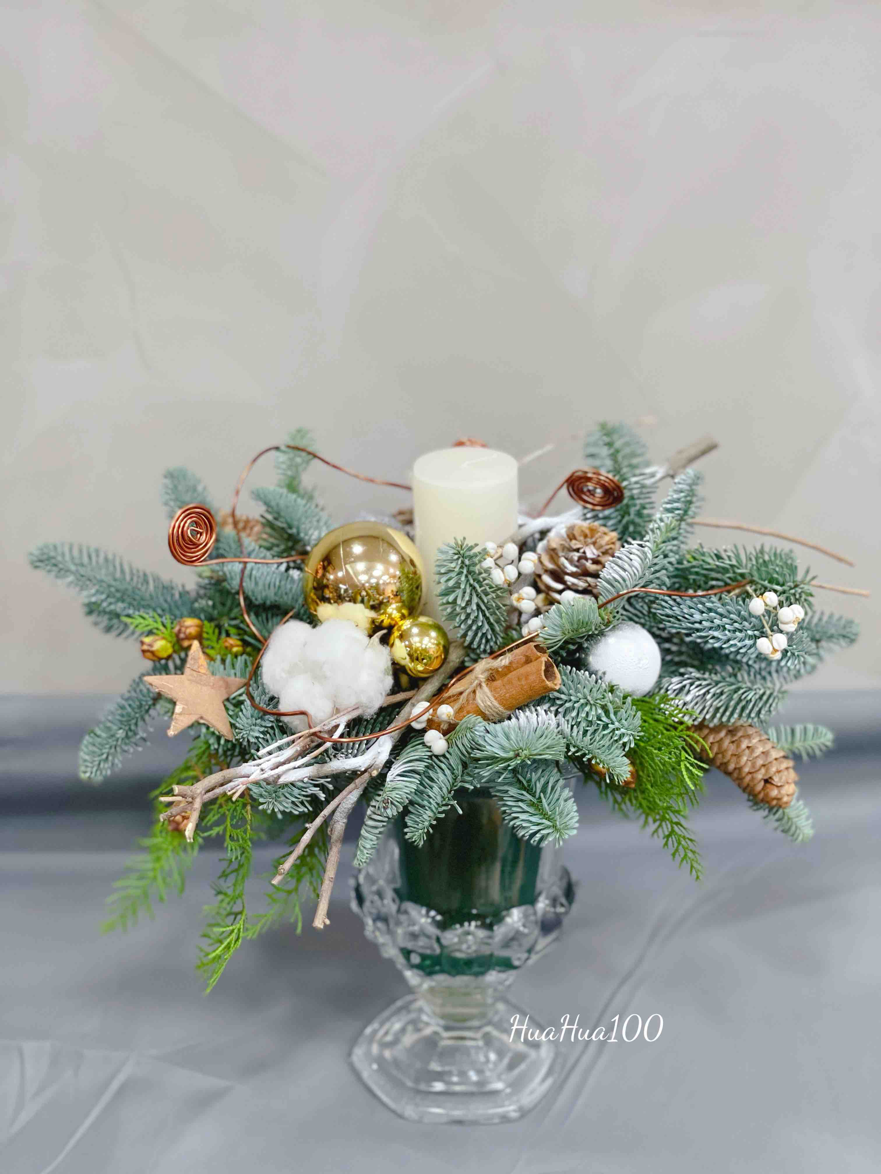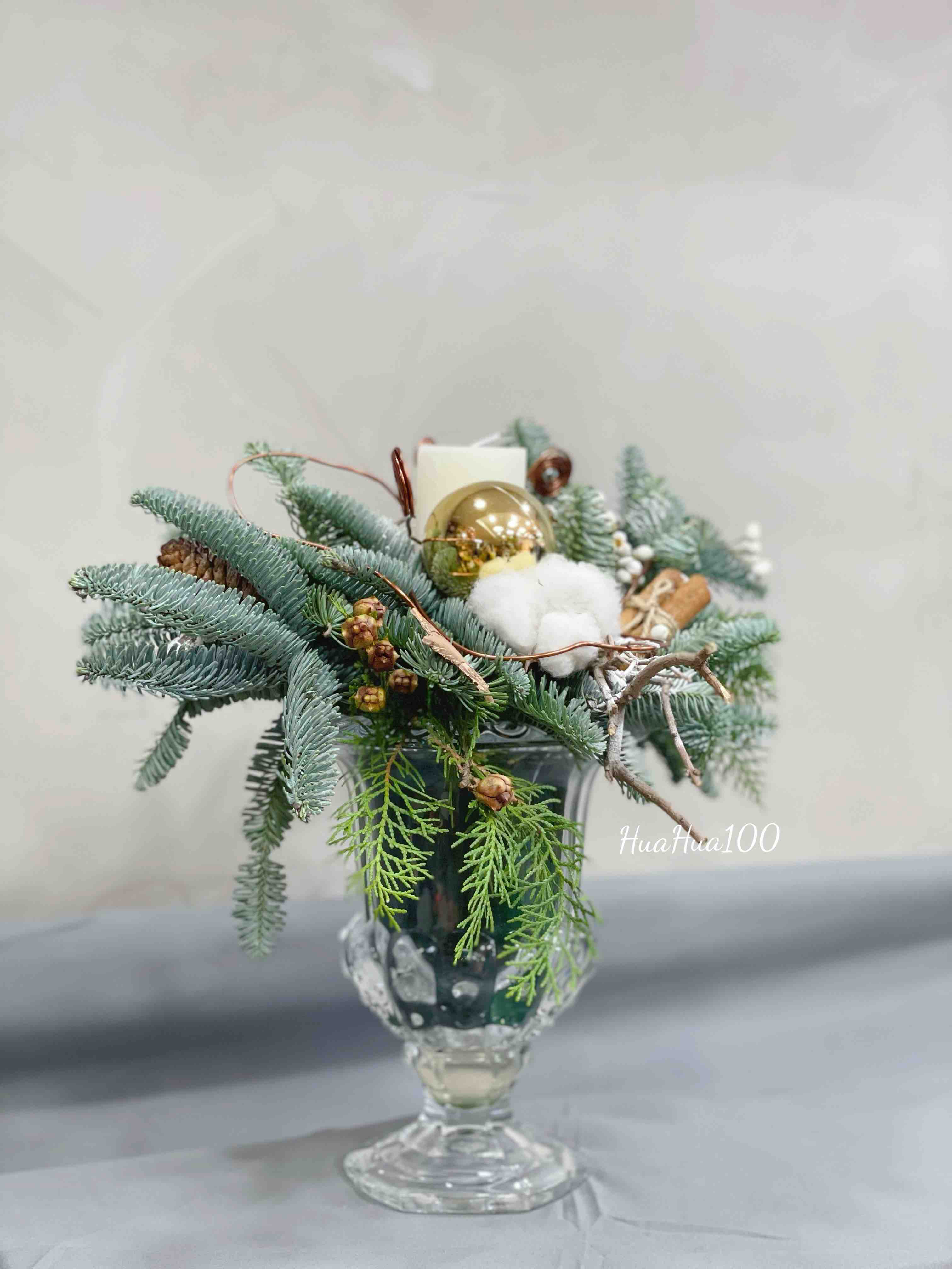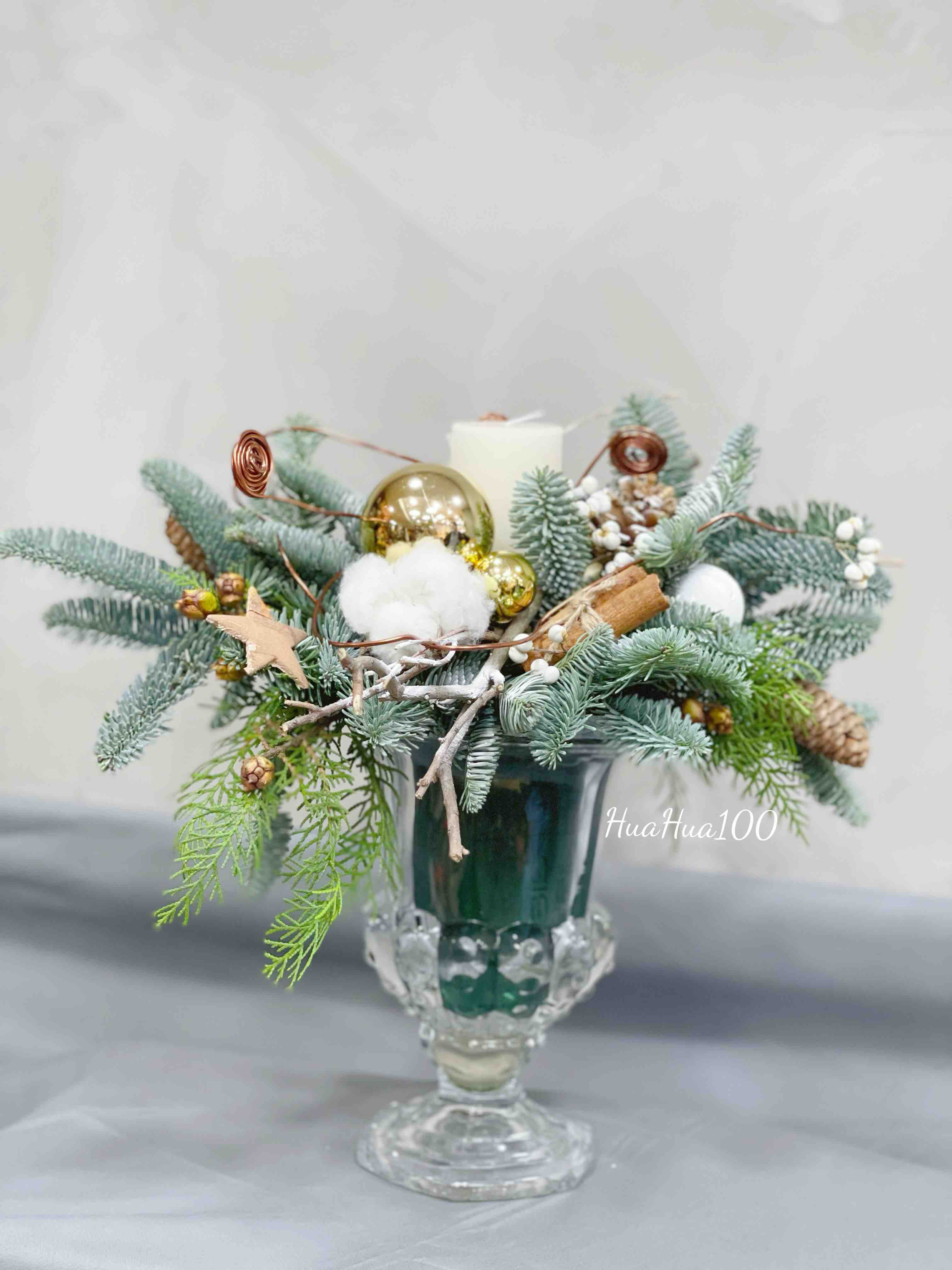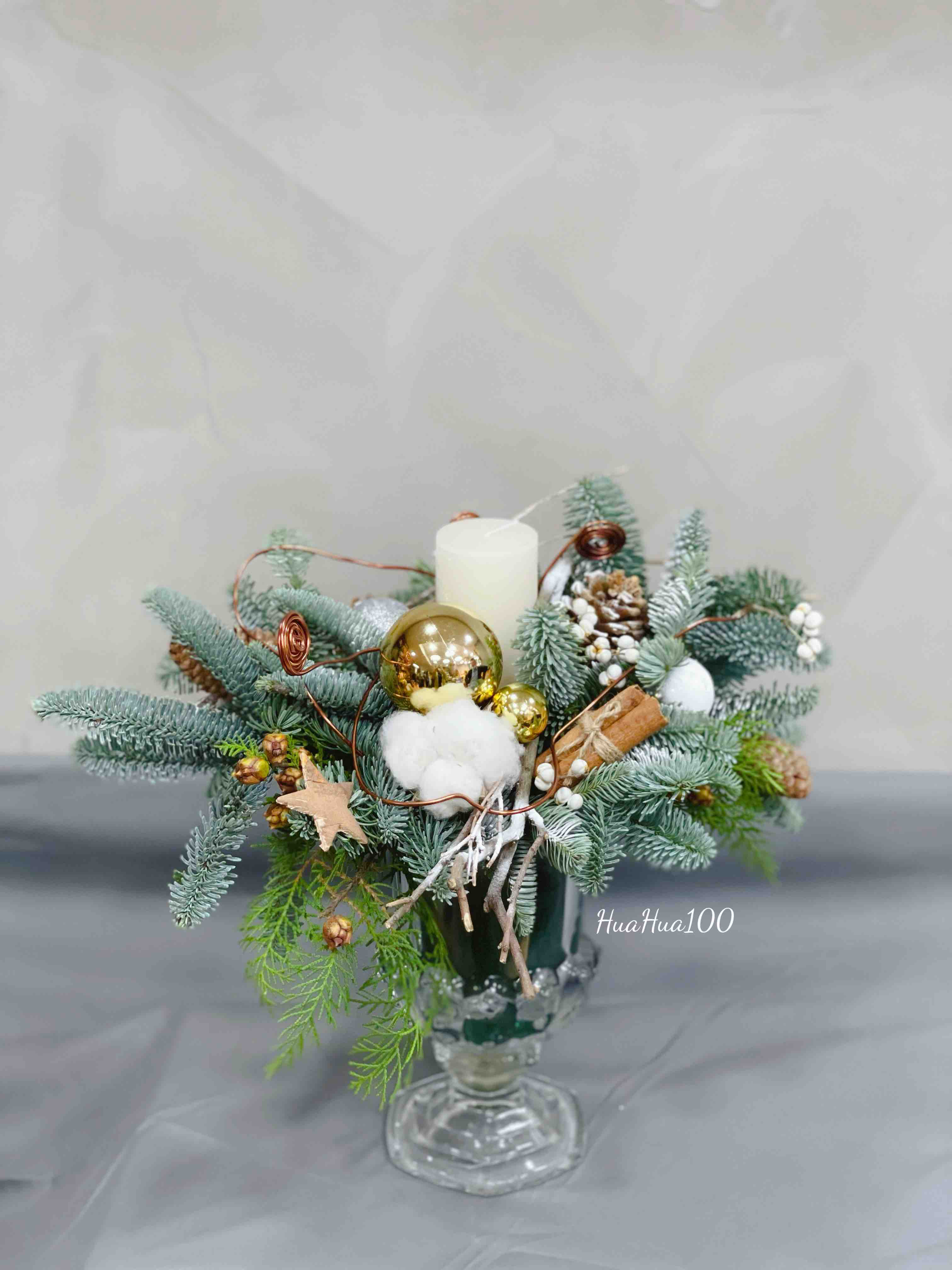 主花:进口诺贝松、圣诞球、白色蜡烛
