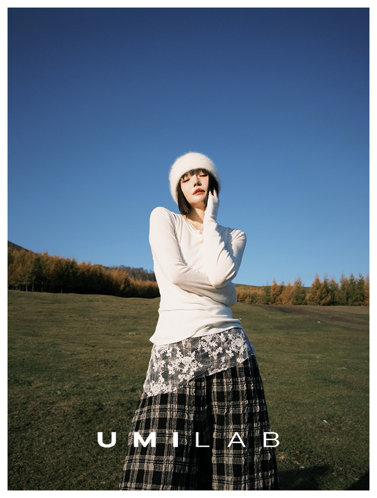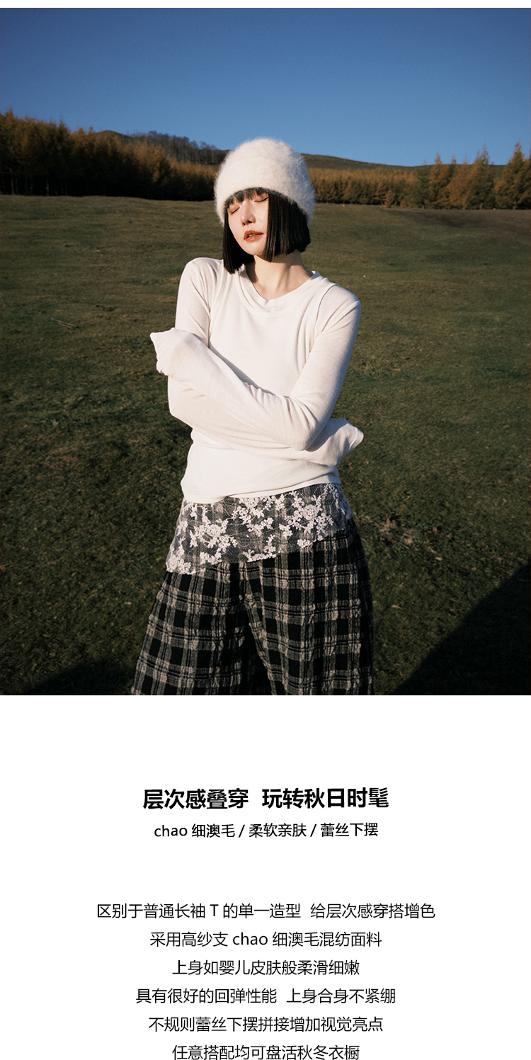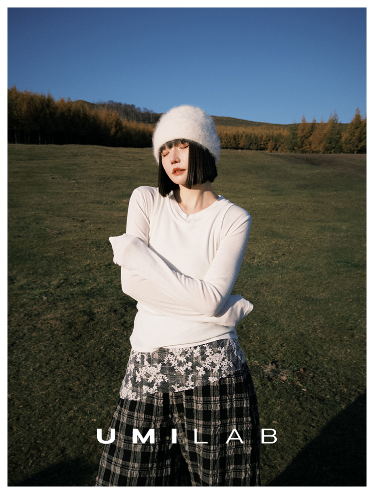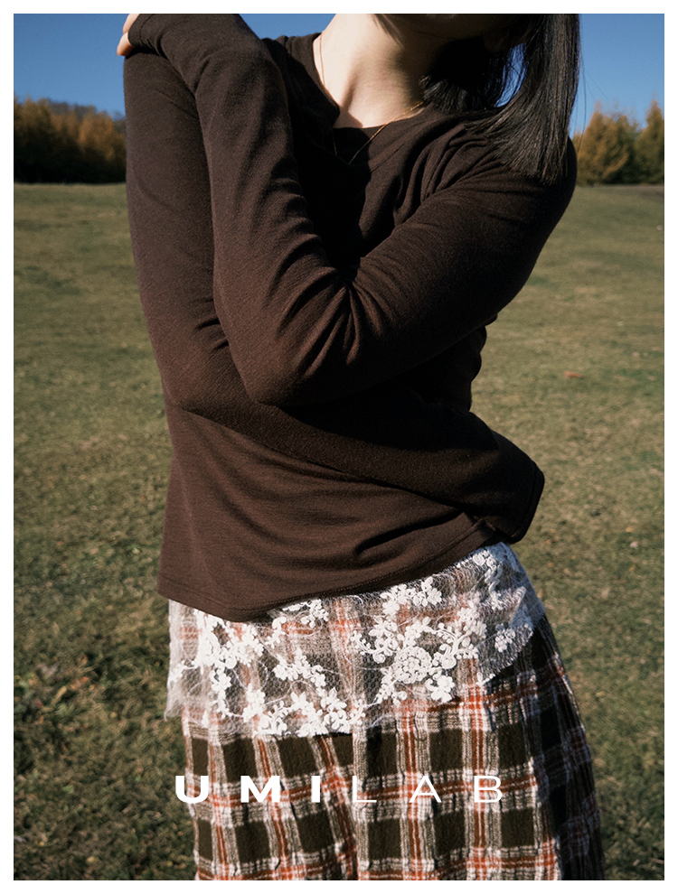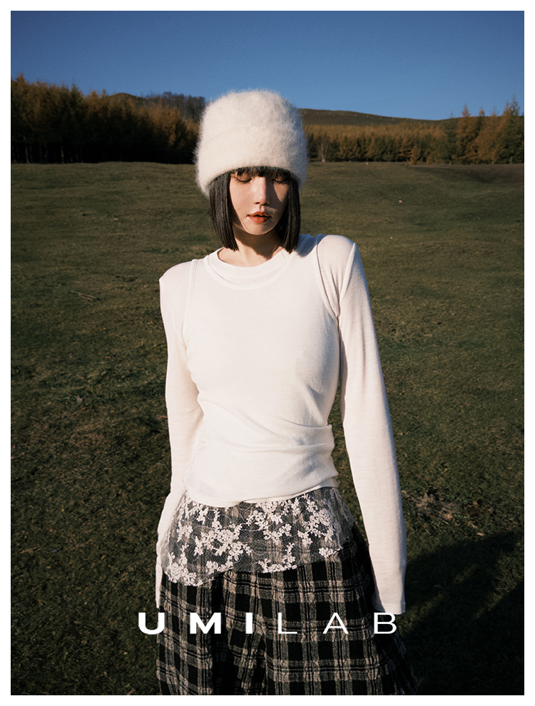 UMILAB|光晕*绝美叠穿 柔软针织羊毛蕾丝拼接长袖T恤/U领背心T778W
