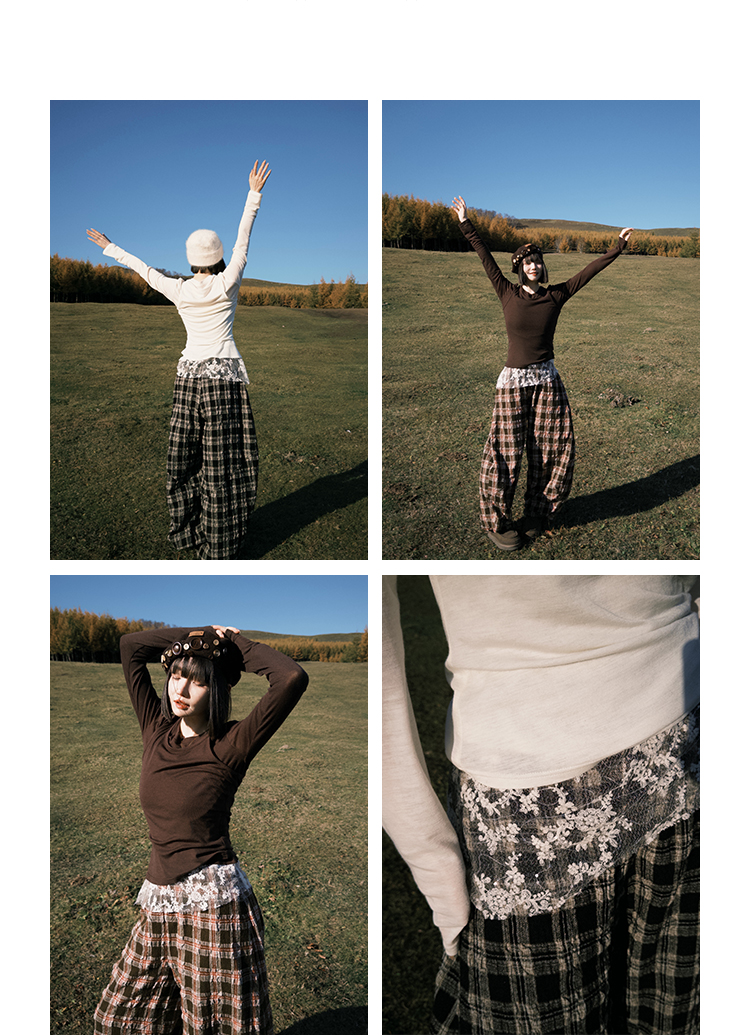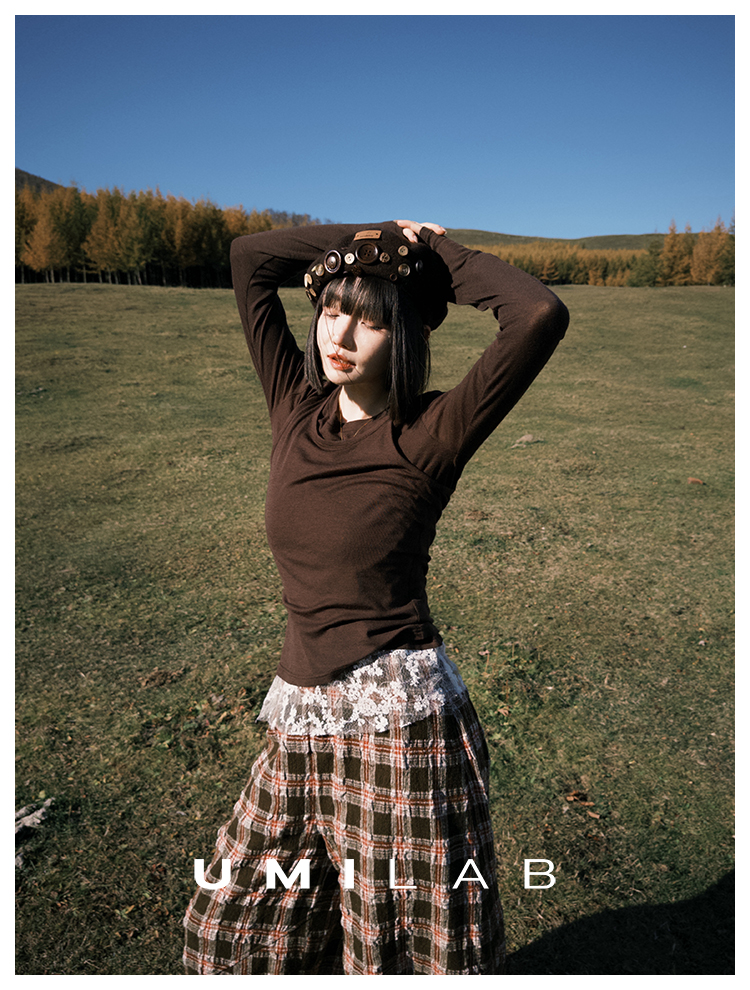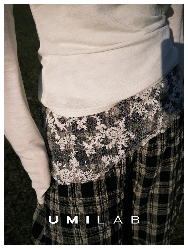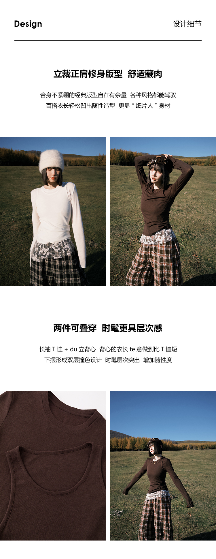 UMILAB|光晕*绝美叠穿 柔软针织羊毛蕾丝拼接长袖T恤/U领背心T778W