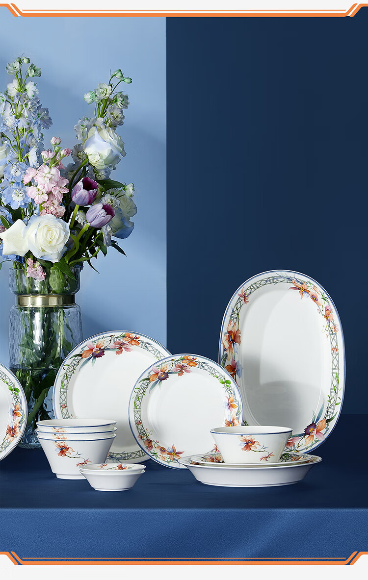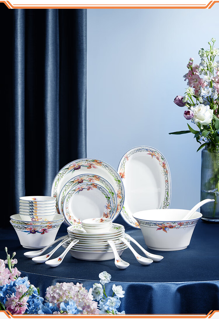 【6F】玛戈隆特【乔迁礼】兰亭雅宴系列骨瓷餐具整套家用中式餐具碗盘乔迁礼 新中式餐具