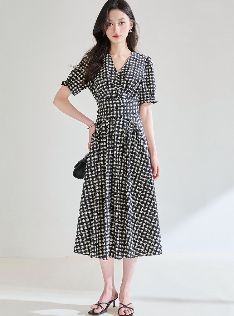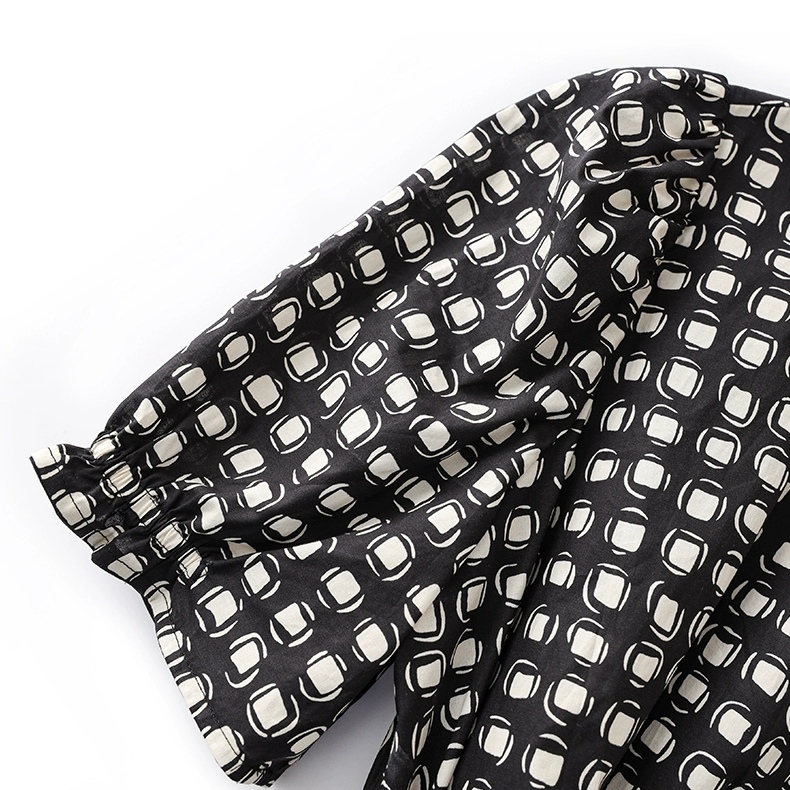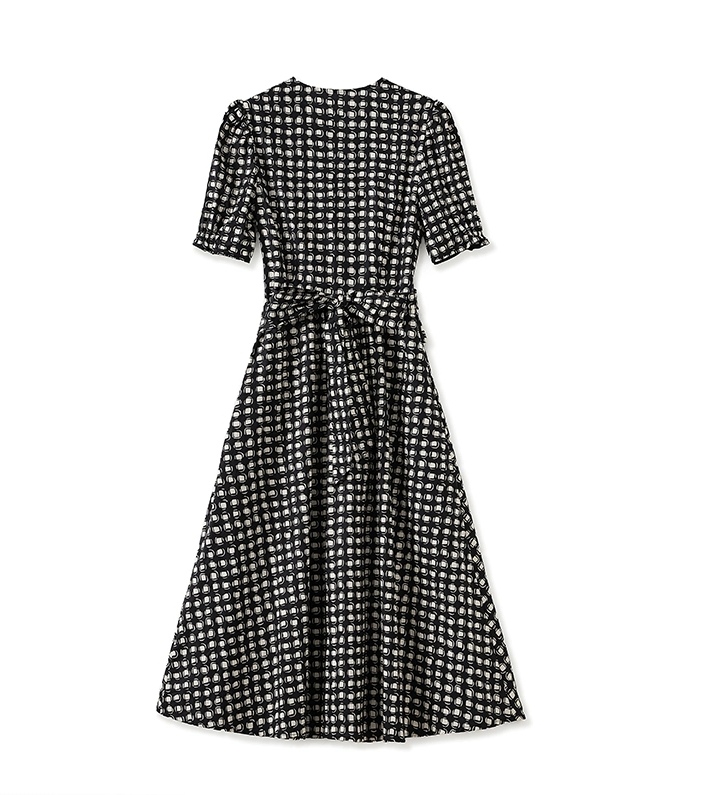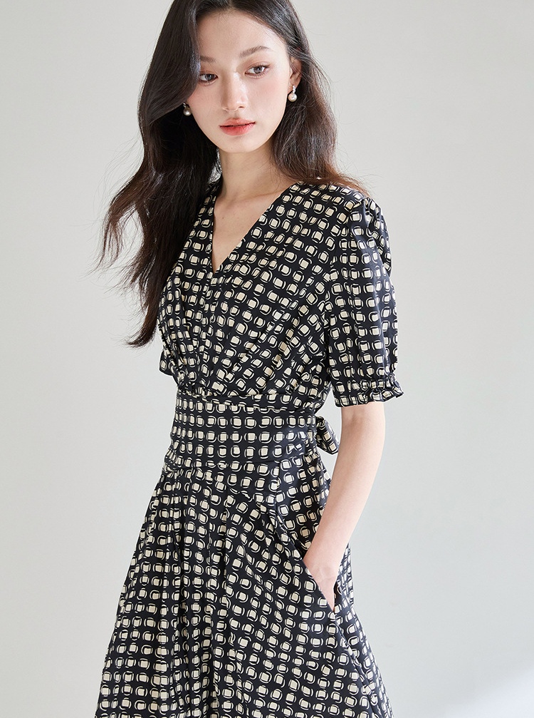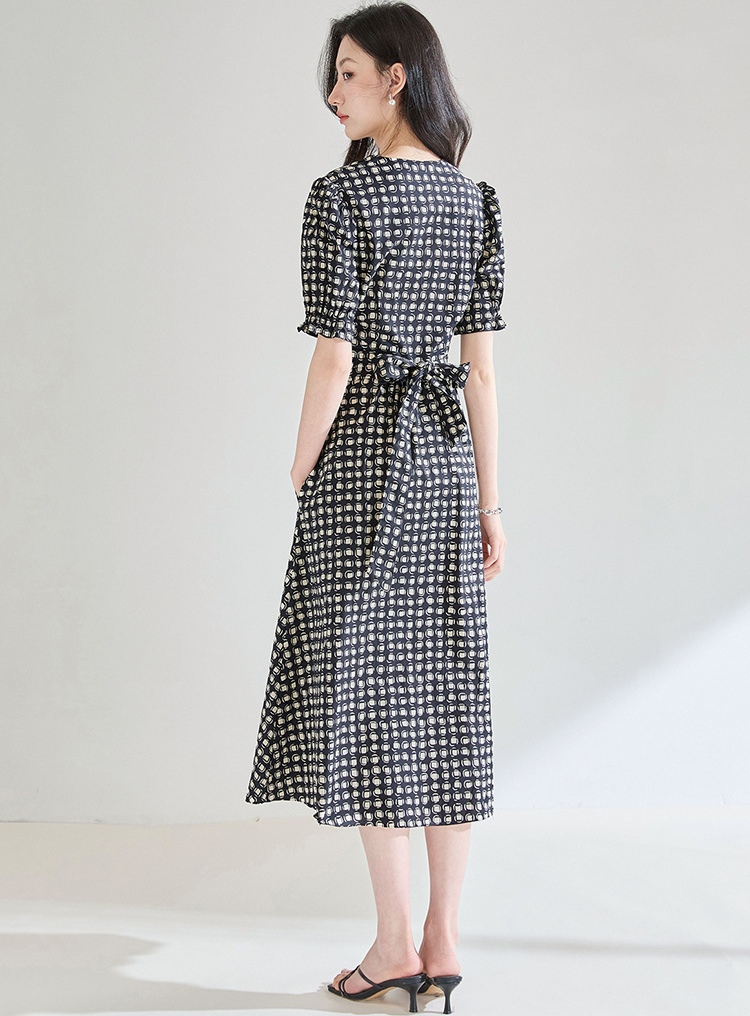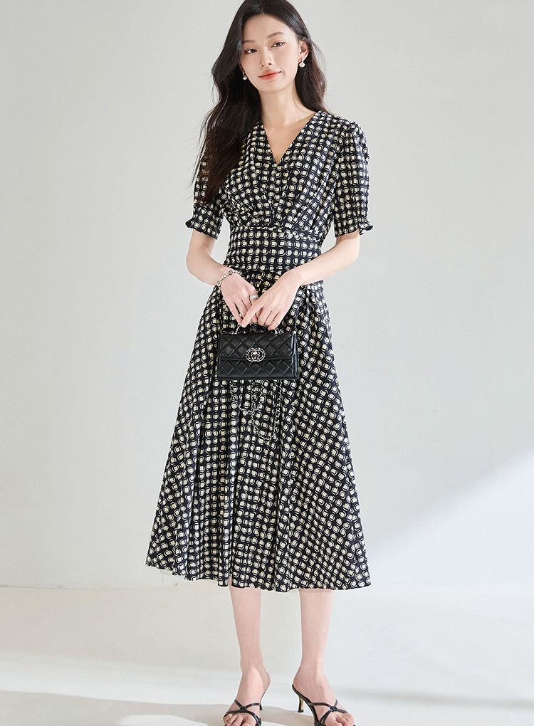 黑与米白交织的格纹图案,经典而不失格调裙重拾复古韵味,又融入摩登风情。泡泡袖设计复古又别致,微微的蓬松感,为整体造型增添了层次感。