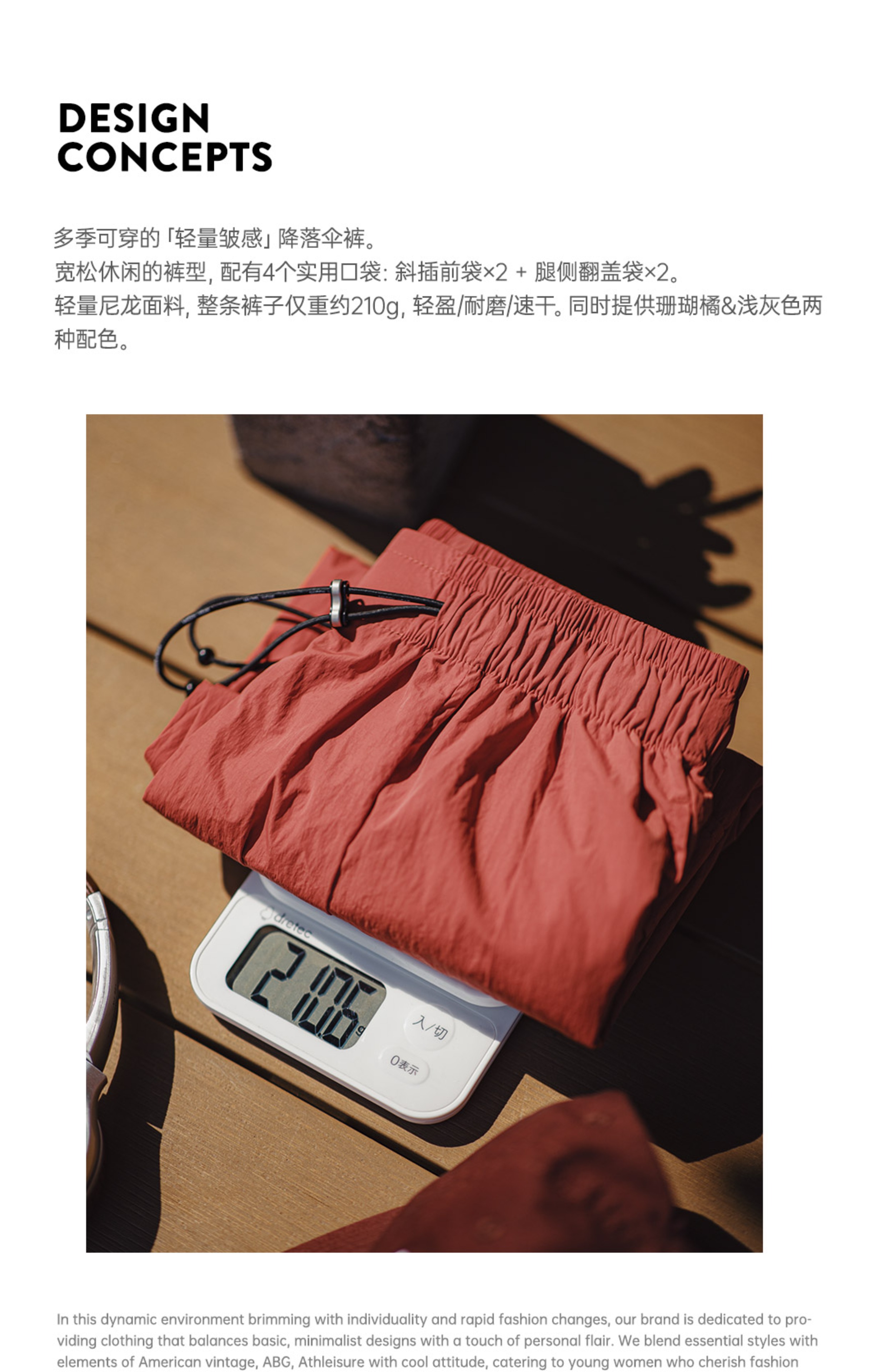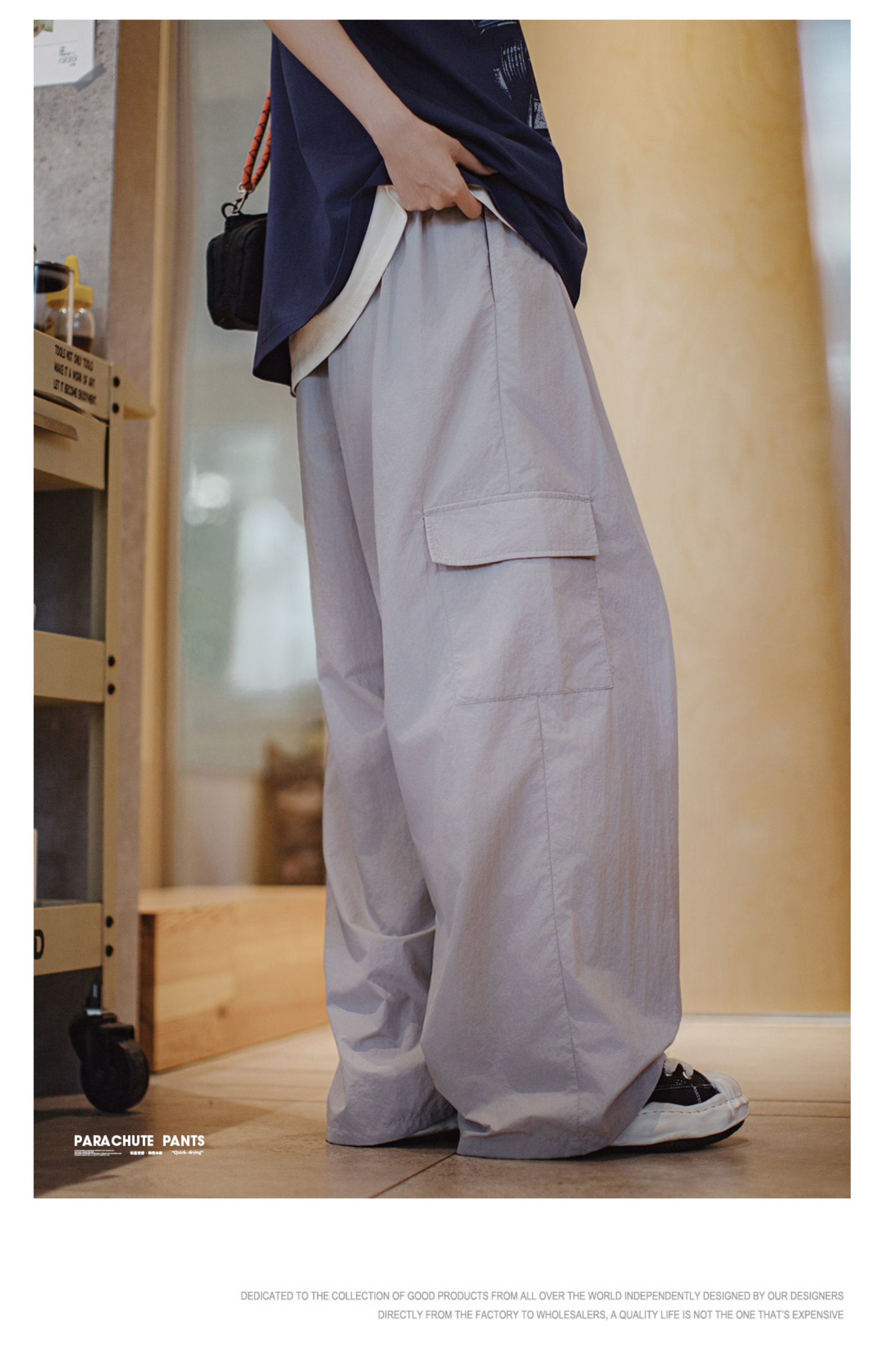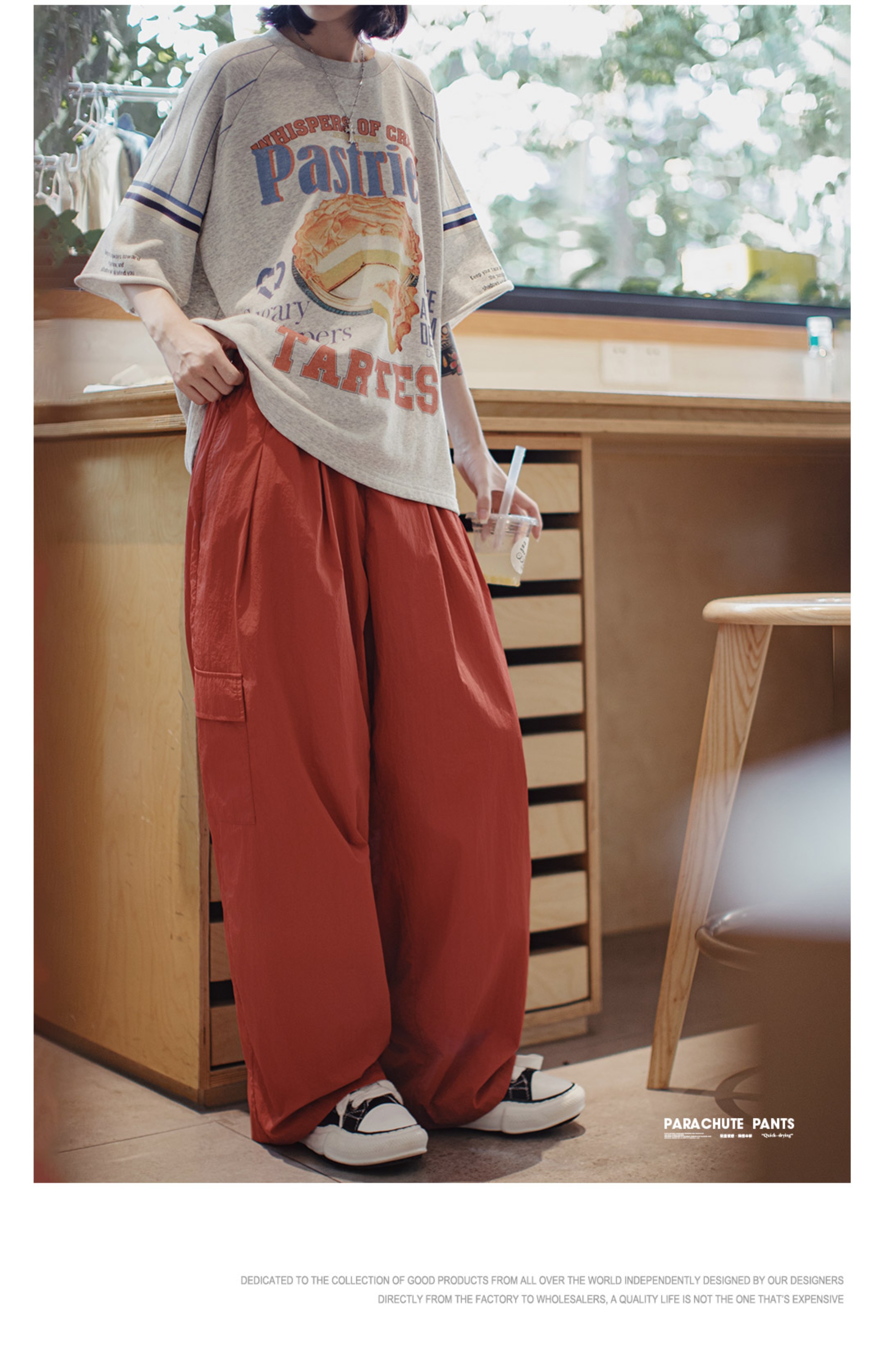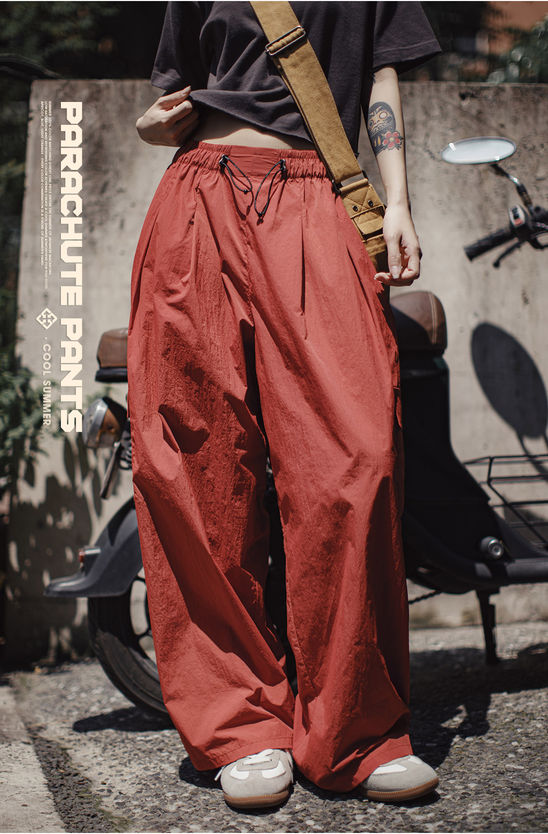 马登夏日爵士舞工装降落伞裤美式高街轻薄大口袋褶皱宽松阔腿裤女