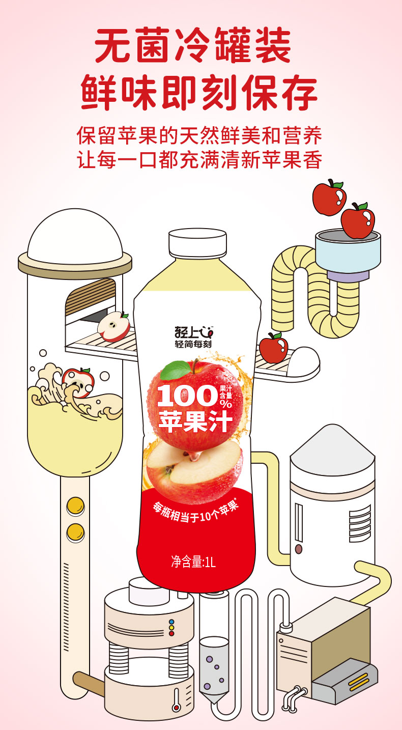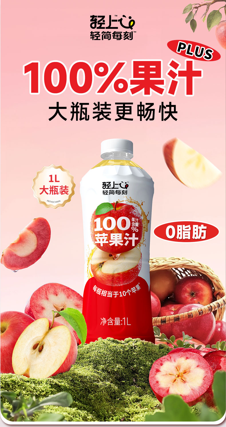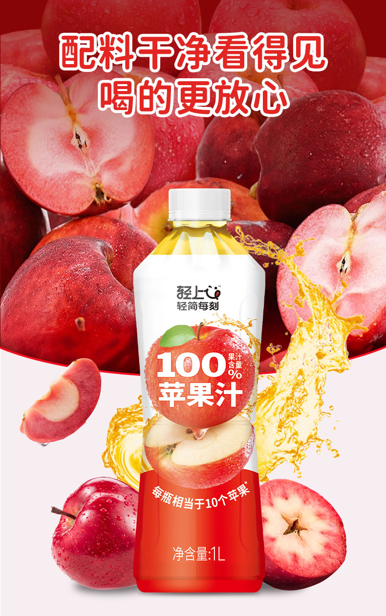 轻上100 %果汁苹果汁饮品1L大瓶装配料干净