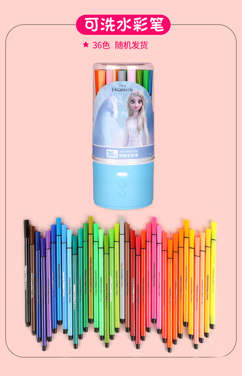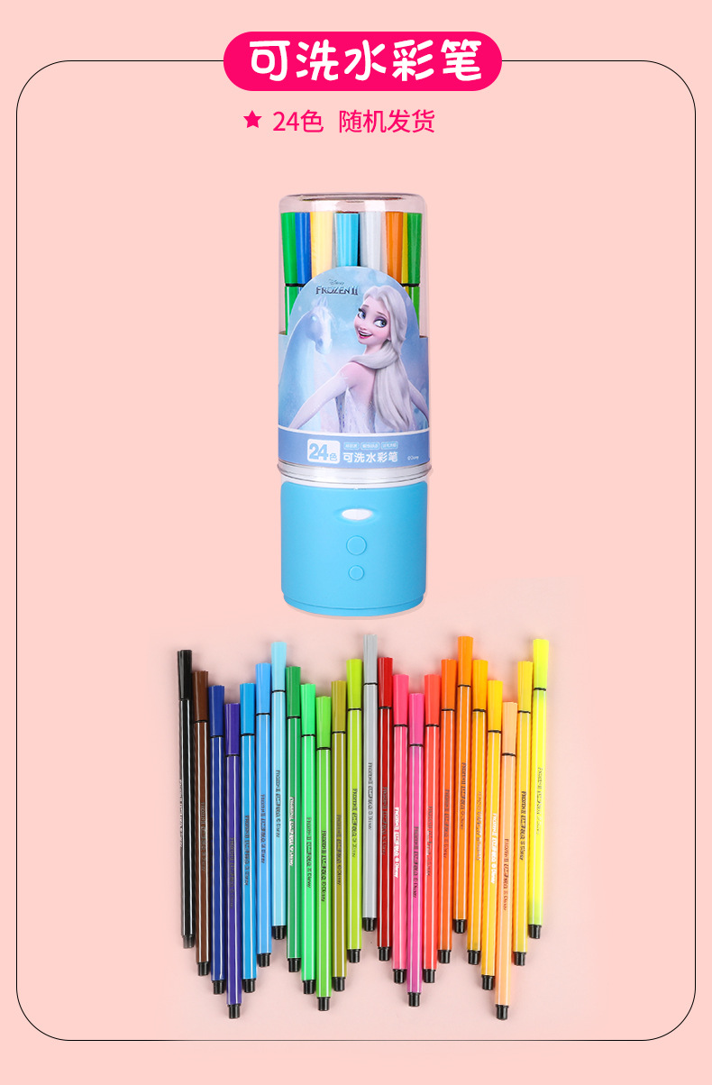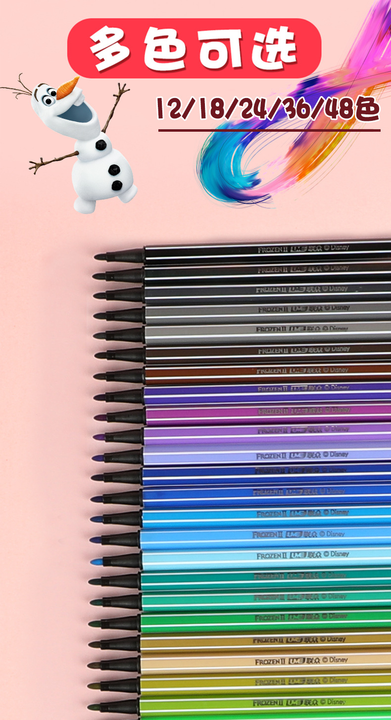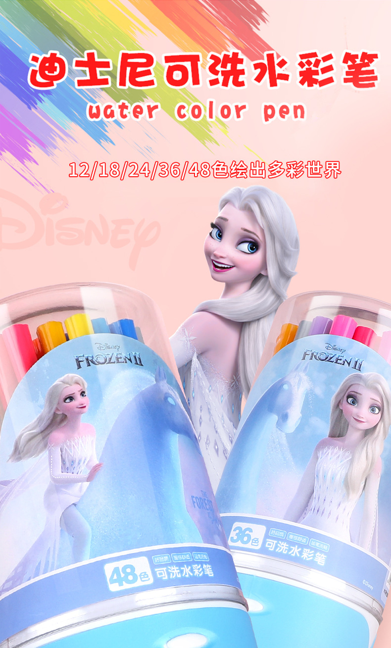 【迪士尼可洗水彩笔】冰雪12色24色36色48色可水洗水彩笔儿童小学生专用绘画笔彩色笔