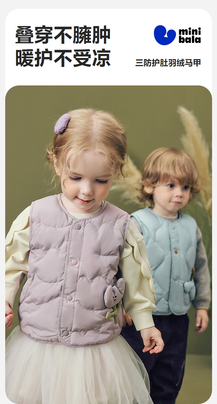 【超模君精选 自家娃都在穿的三防羽绒马甲】迷你巴拉男女童宝宝羽绒马甲亲肤舒适保暖外套冬新款