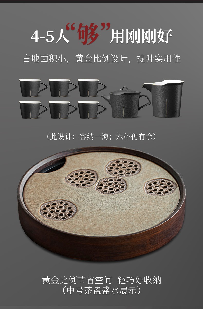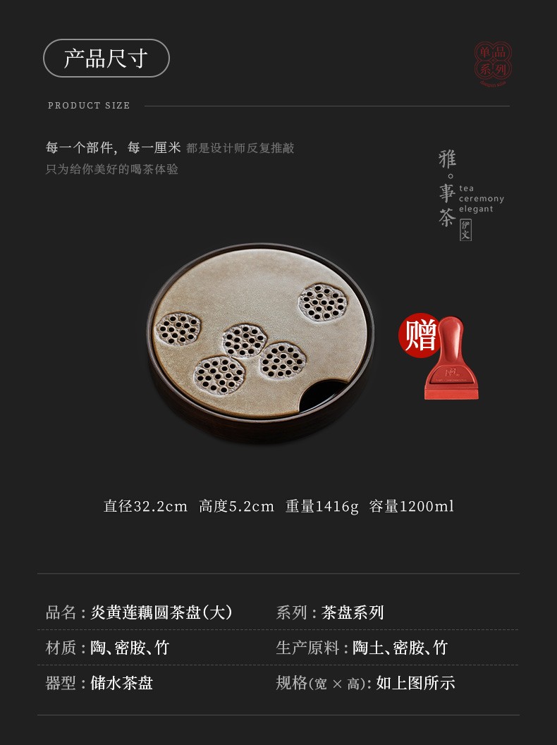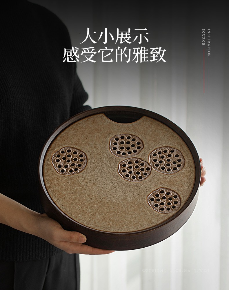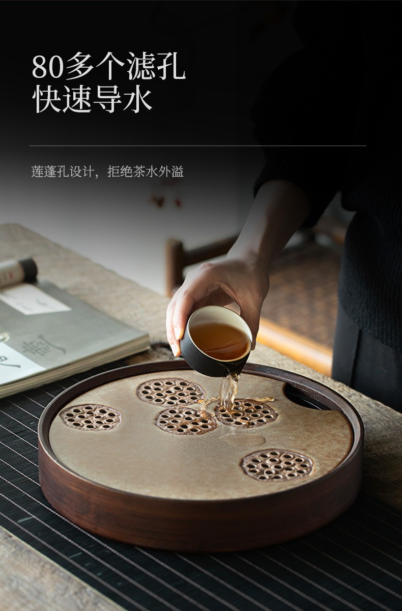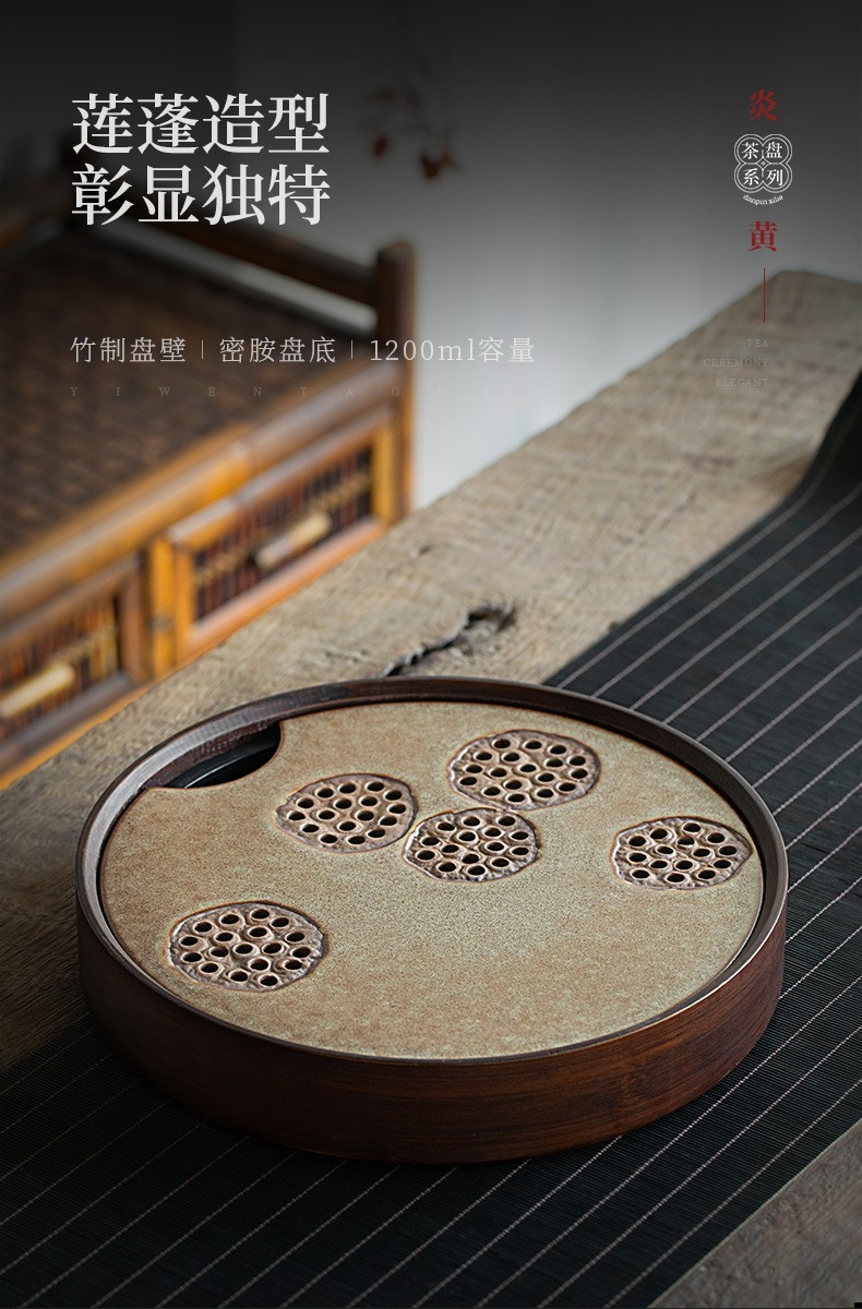 陶瓷圆形茶盘家用储水式托盘陶瓷简约茶海小型茶台干泡茶盘 炎黄莲藕圆茶盘
