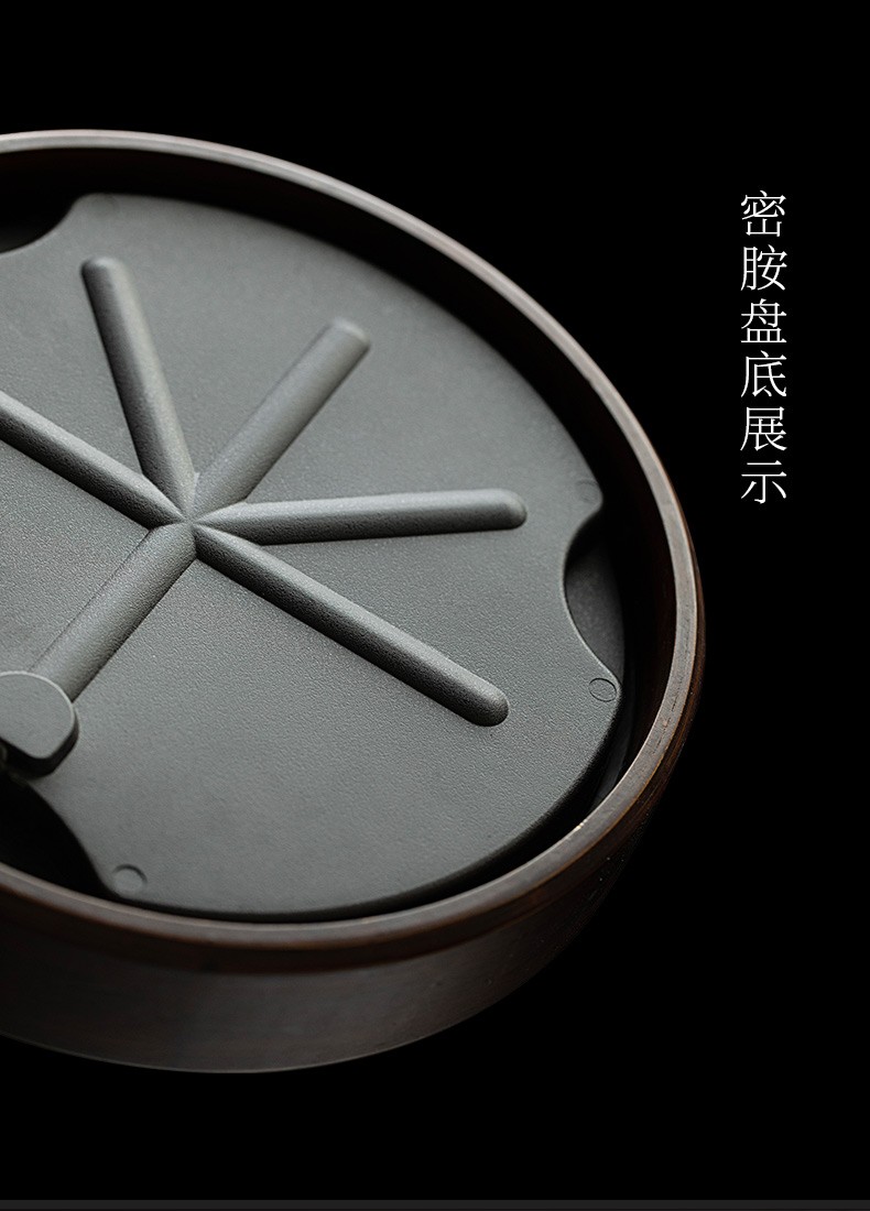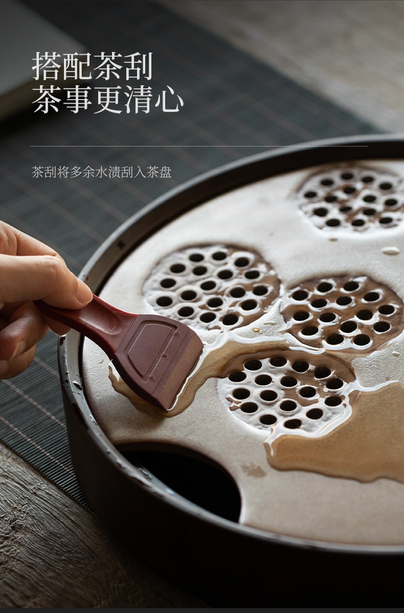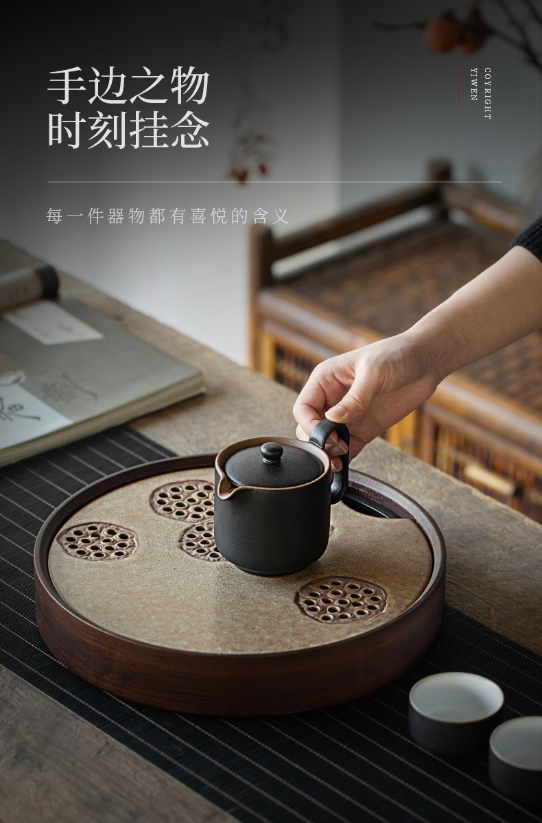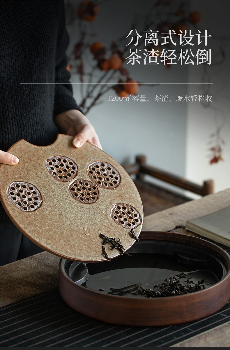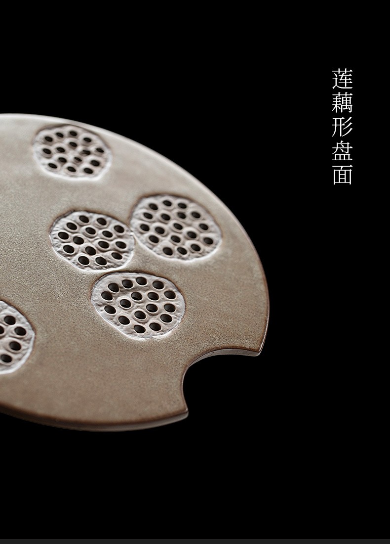 陶瓷圆形茶盘家用储水式托盘陶瓷简约茶海小型茶台干泡茶盘 炎黄莲藕圆茶盘