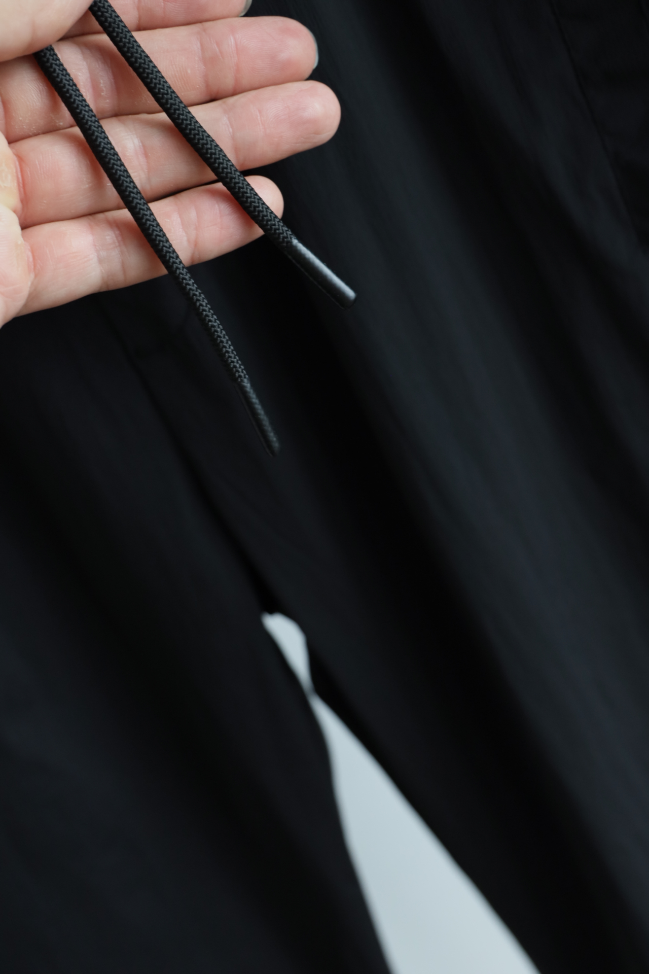 腰部松紧抽绳可调节大小,穿着更舒适,具体面料成份是93锦纶7氨纶混纺的,柔韧又轻盈细腻。夏天穿着很舒适;