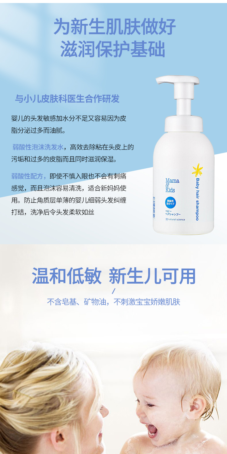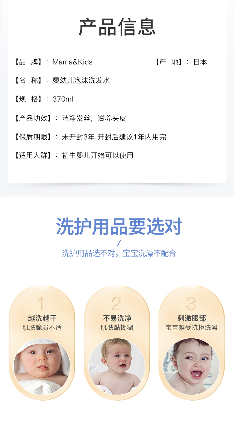 日本MamaKids新生婴幼儿弱酸性儿童洗发水370ml|保税