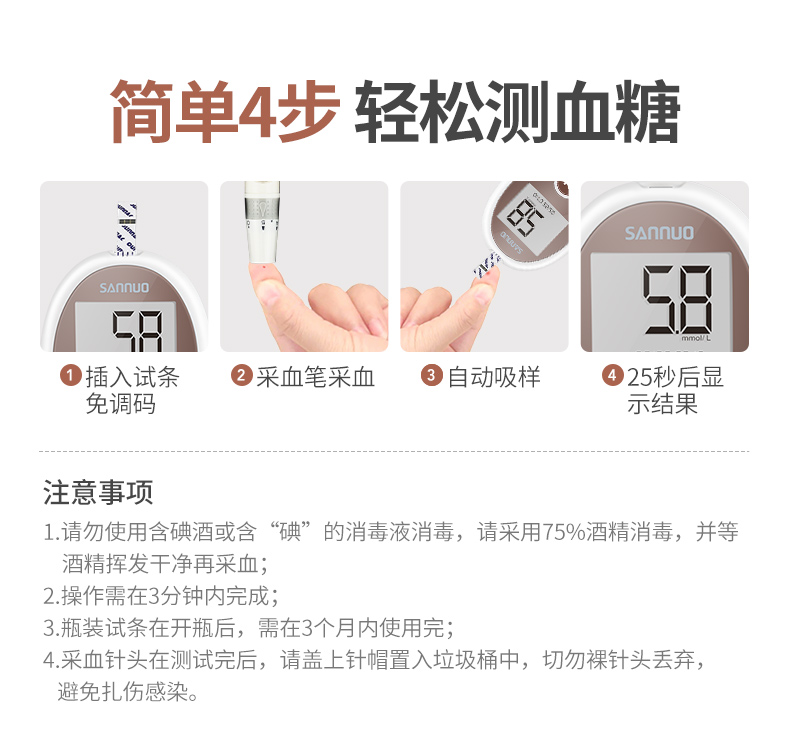 - 三诺血糖仪官方旗舰店,产品覆盖血糖、血脂、糖化血红蛋白、尿酸等多项糖尿病指标检测,中国血糖仪品牌领导者。