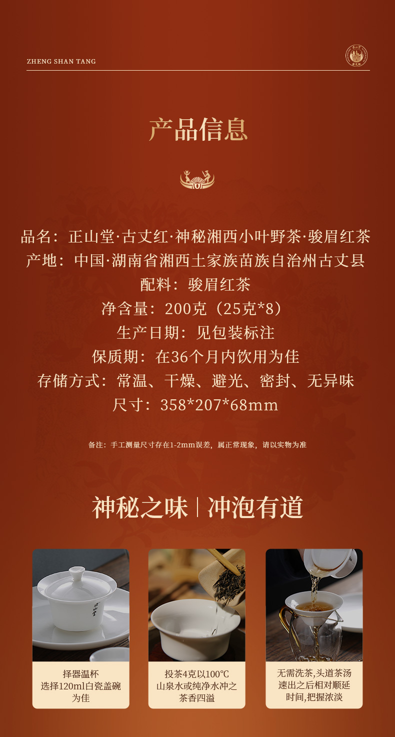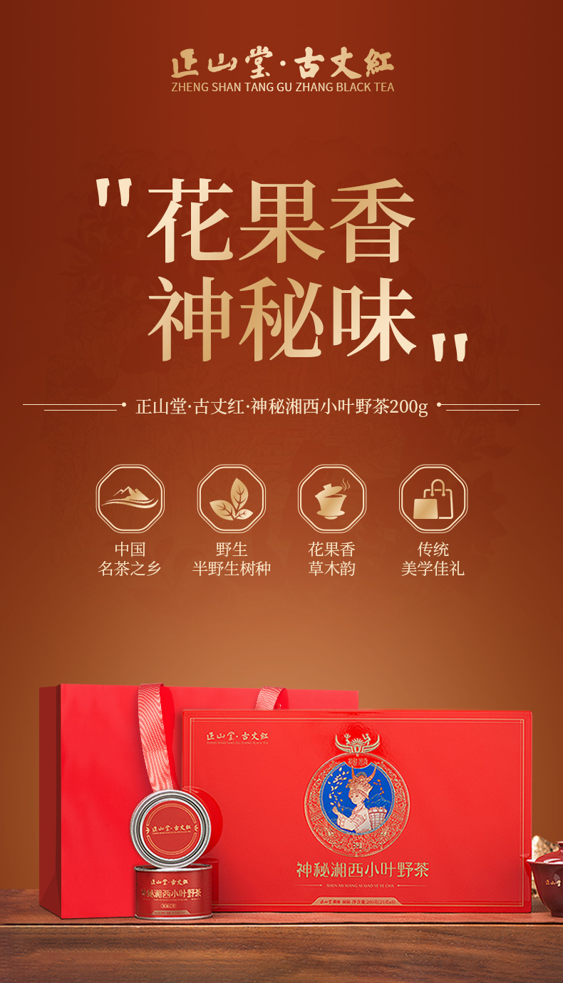 正山堂 古丈红湘西小叶野茶礼盒装 特级湖南野生红茶正宗茶叶送礼200g
