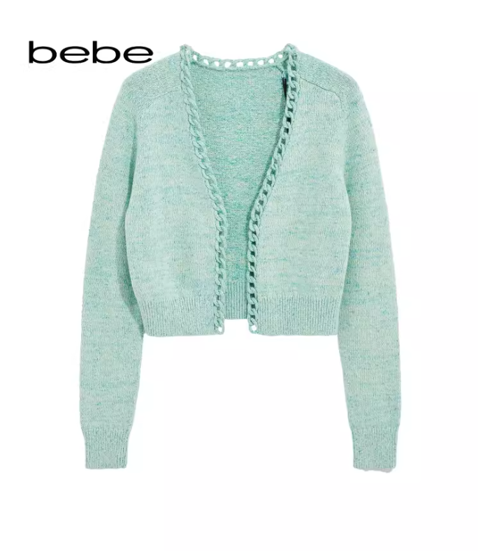 【2F】bebe2024春季新款女士气质链条长袖短款宽松针织开衫