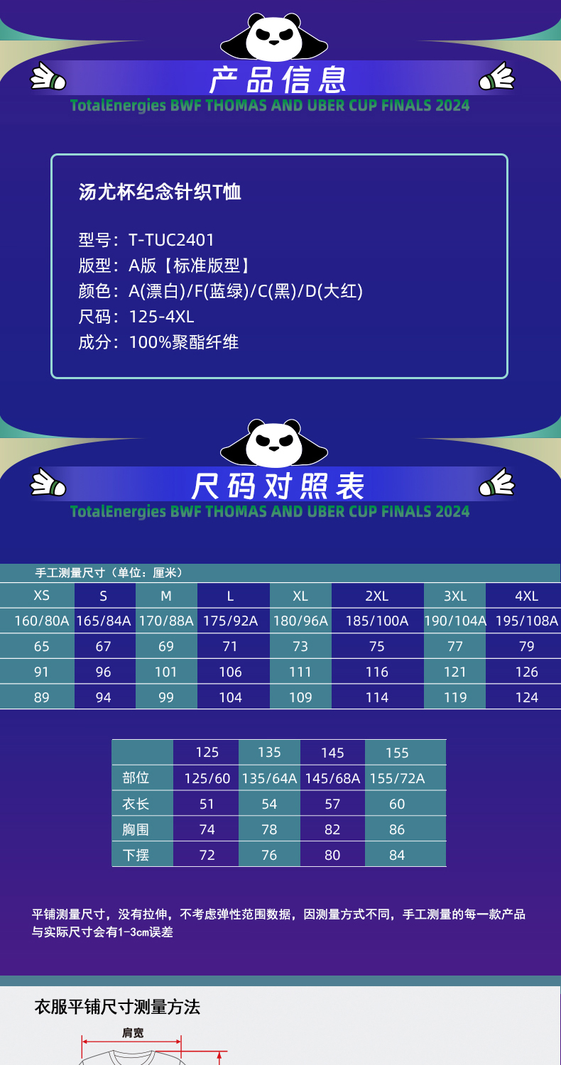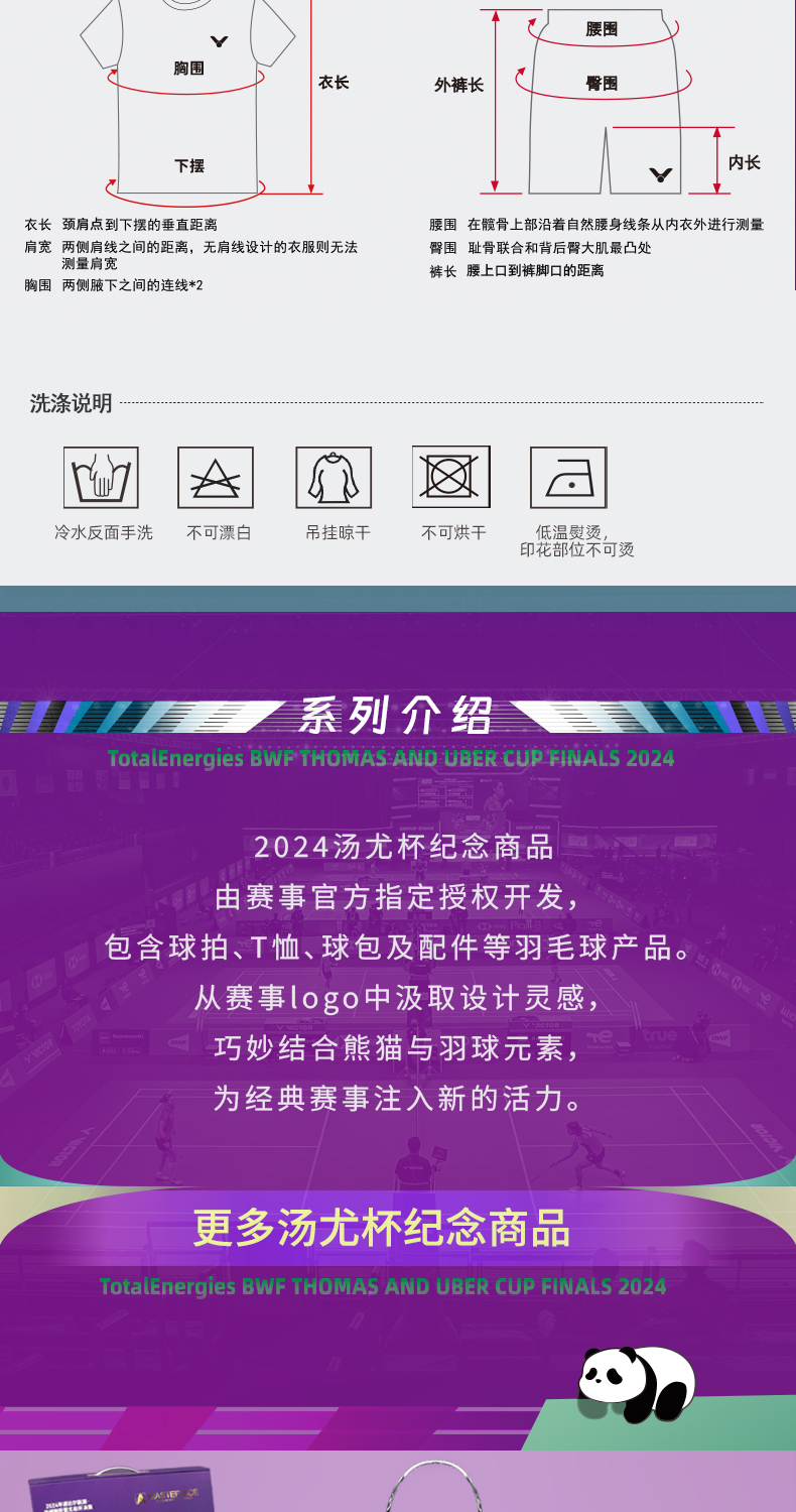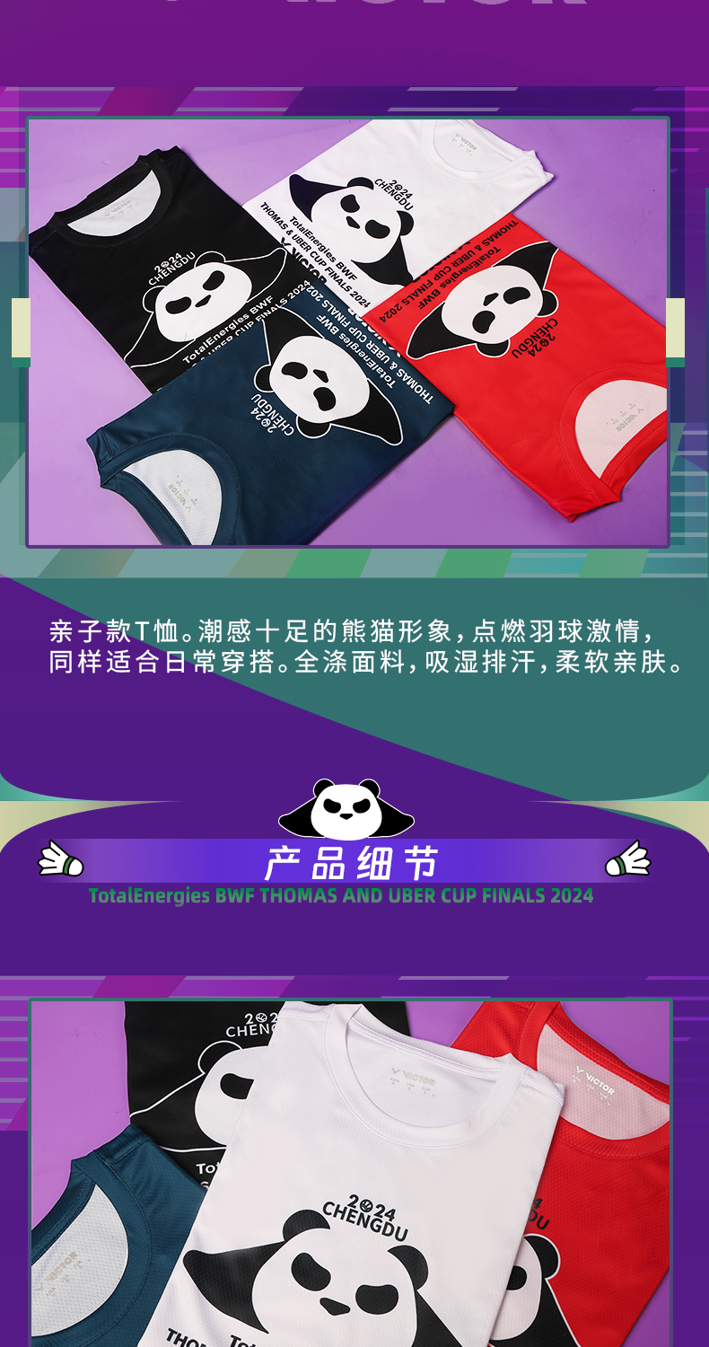 胜利威克多 羽毛球服 汤尤杯熊猫款 男女同款 针织T恤T-TUC2401