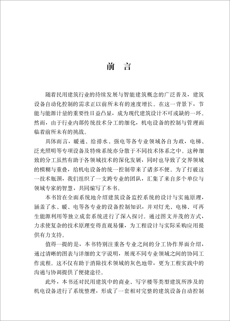本 书 旨 在 全 面 系 统 地 介 绍 建 筑 设 备 监 控 系 统 的 设 计 与 实 施 原 理 ,涵 盖 了 水 、 暖 、 电 等 各 专