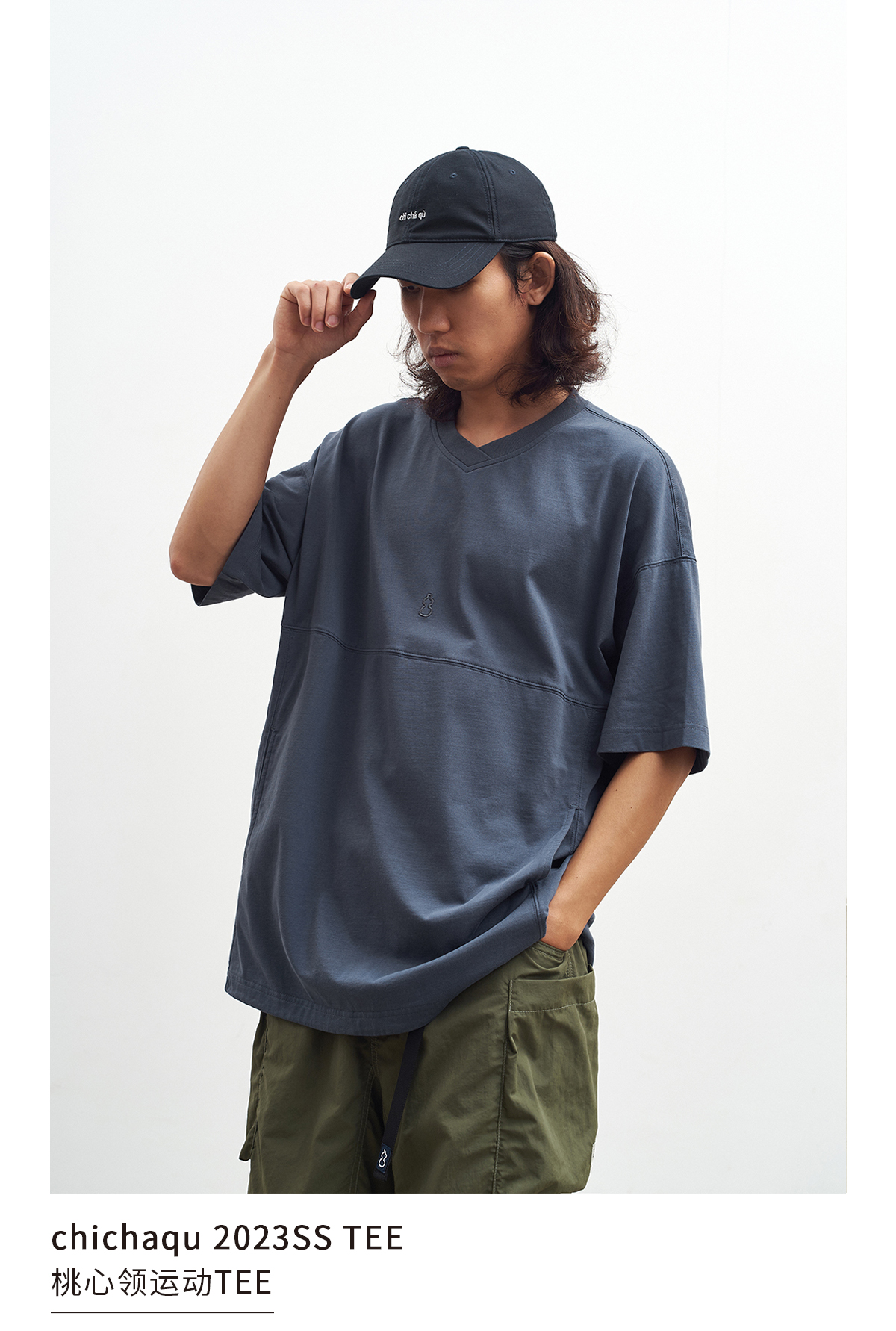 吃茶去chichaqu户外运动风格桃心领短袖TEE