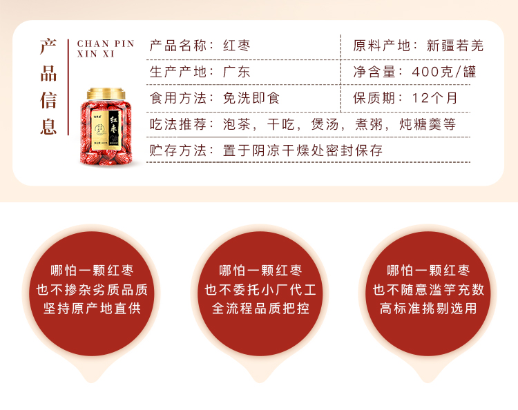 家庭实惠装 福东海 红枣400克/罐装 新疆大枣 皮薄核小干枣