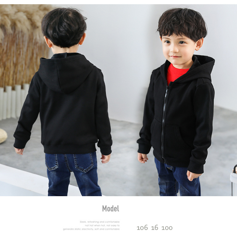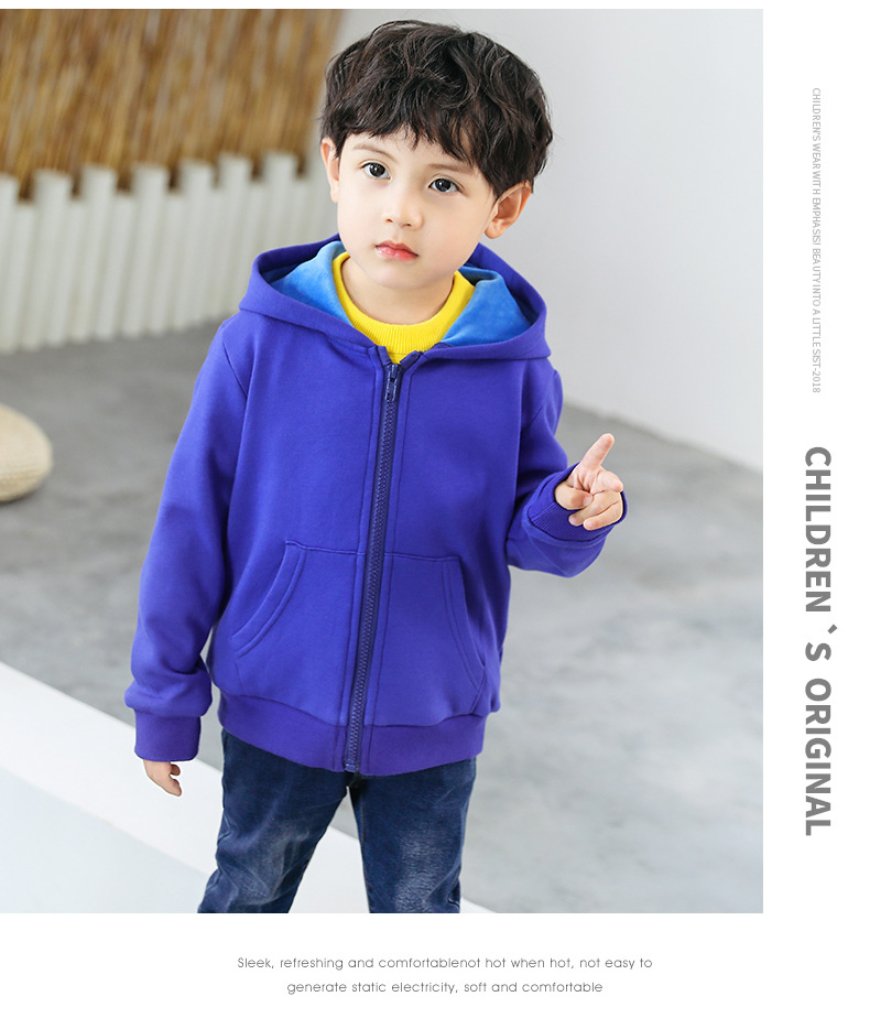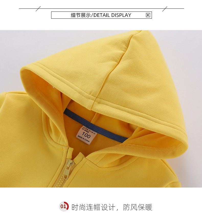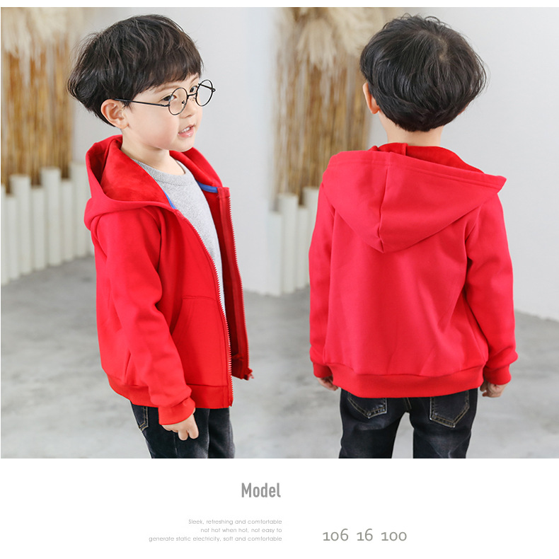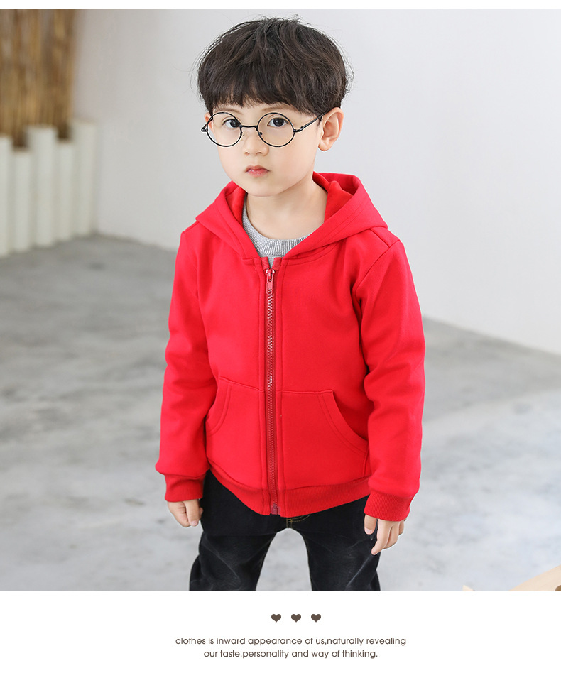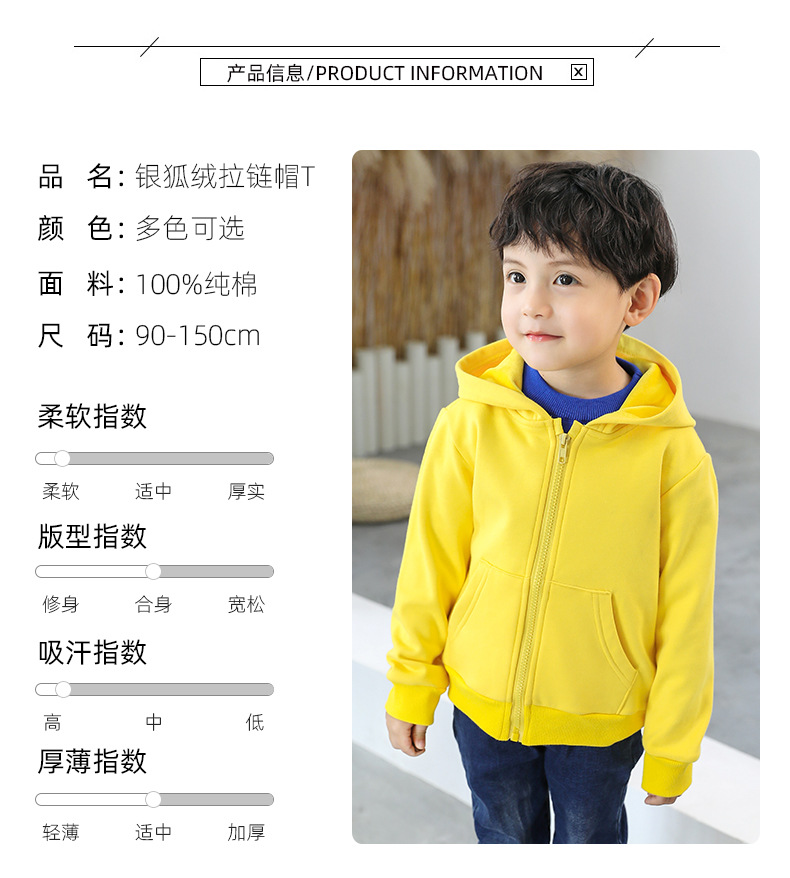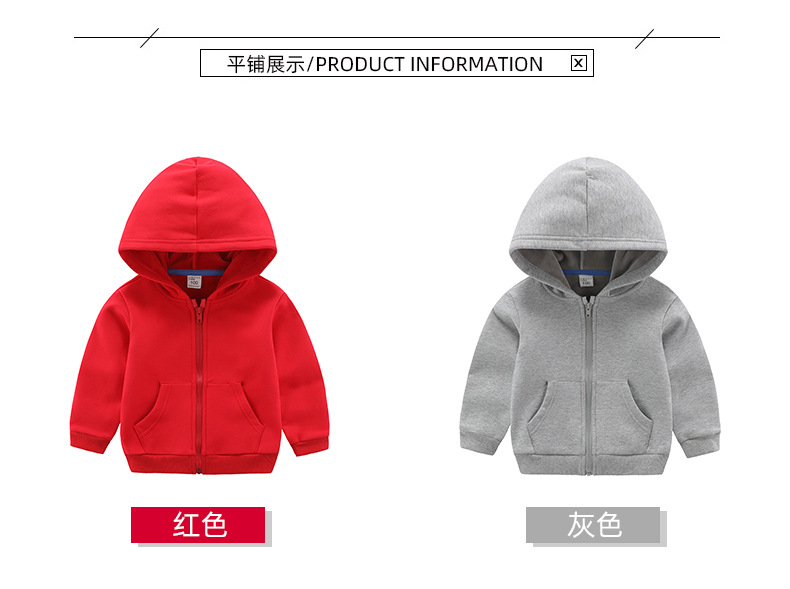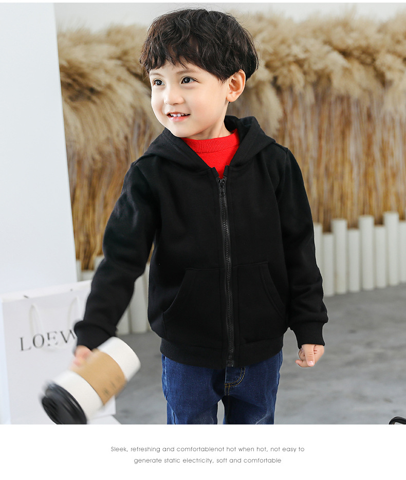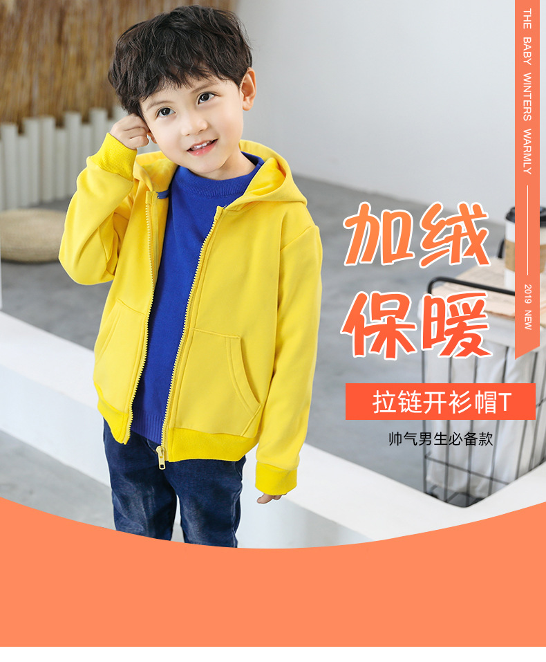 【银狐绒保暖拉链开衫帽T】秋冬新款拉链连帽男女童装儿童加绒卫衣纯色韩版