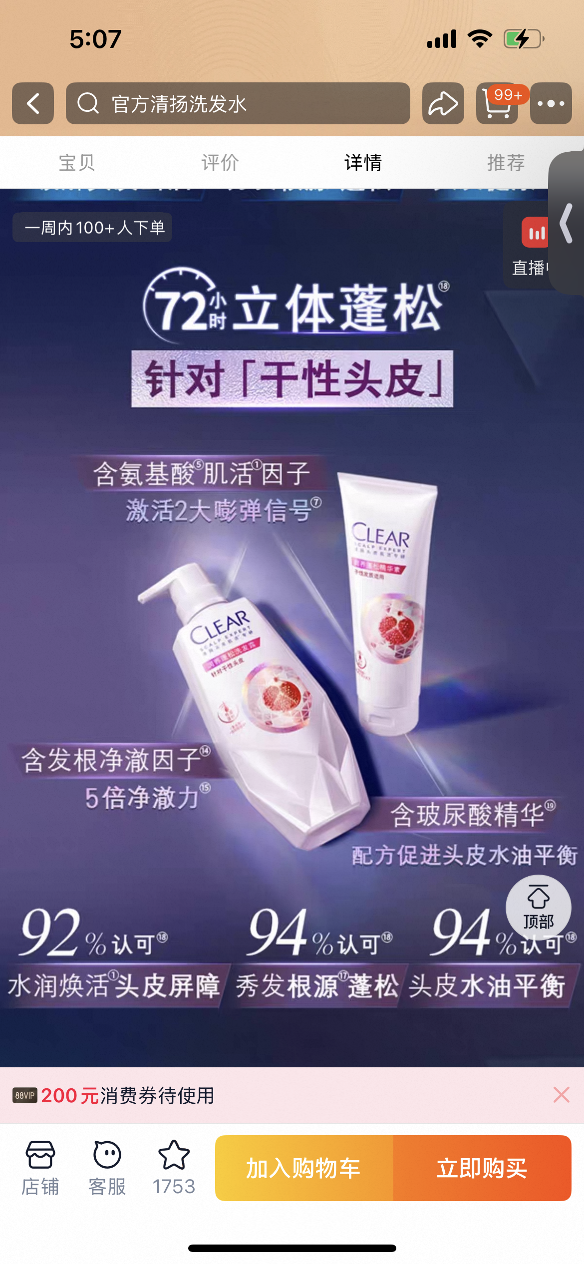 正品保真! 山东代理商拉回!正规开票 清扬头皮控油蓬松洗发水 玻尿酸护发素