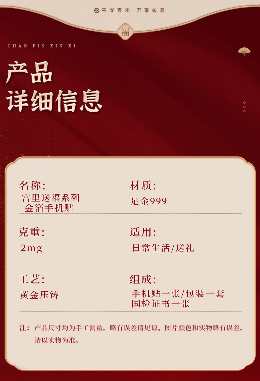 【手机贴】 好运足金金箔手机贴