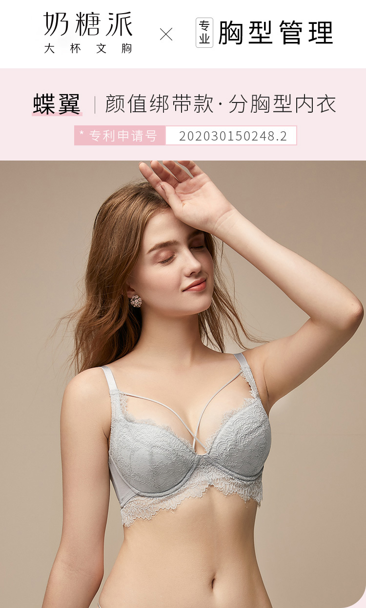 奶糖派蝶翼分胸型聚拢包容侧收女大码绑带文胸罩内衣【非质量问题不退不换】