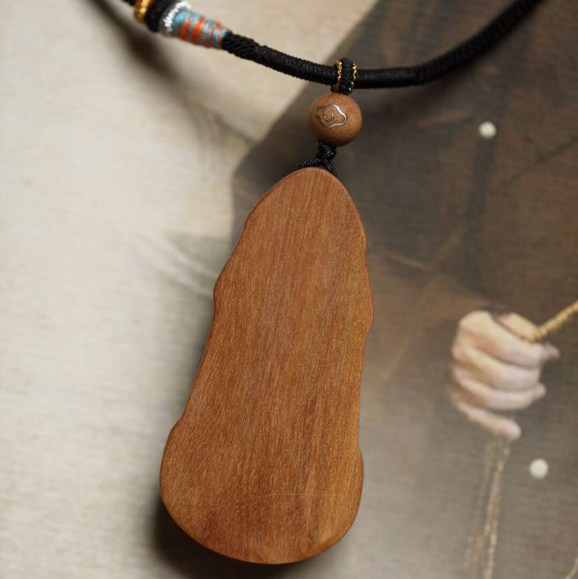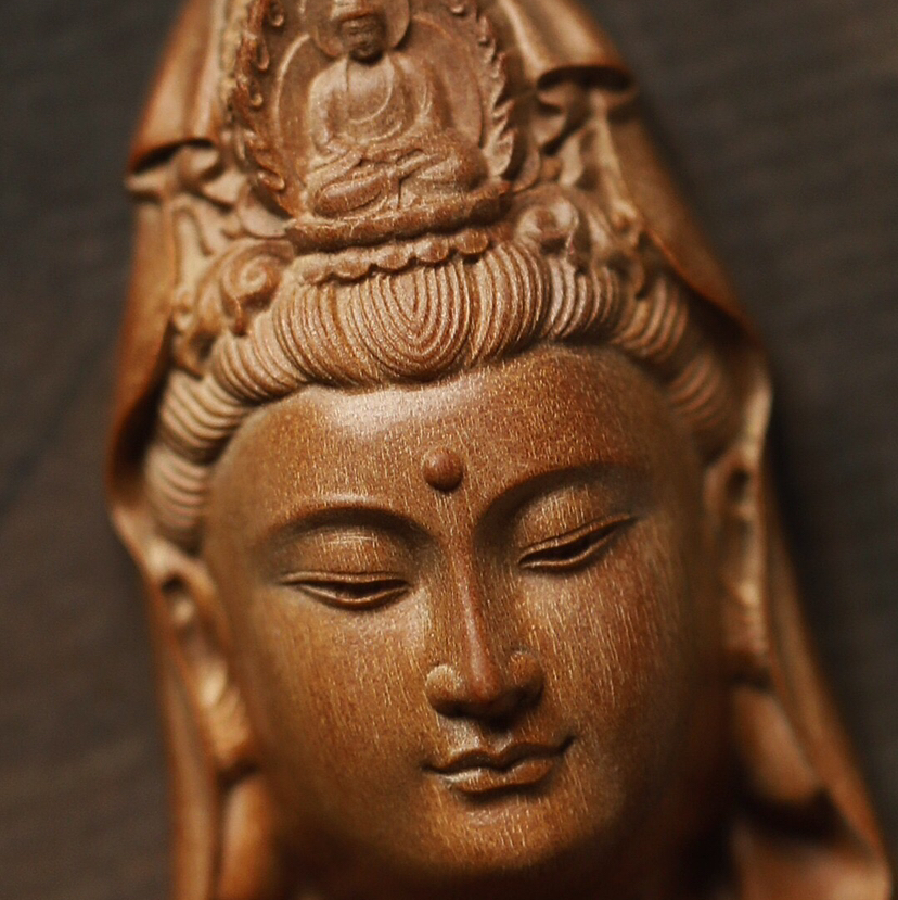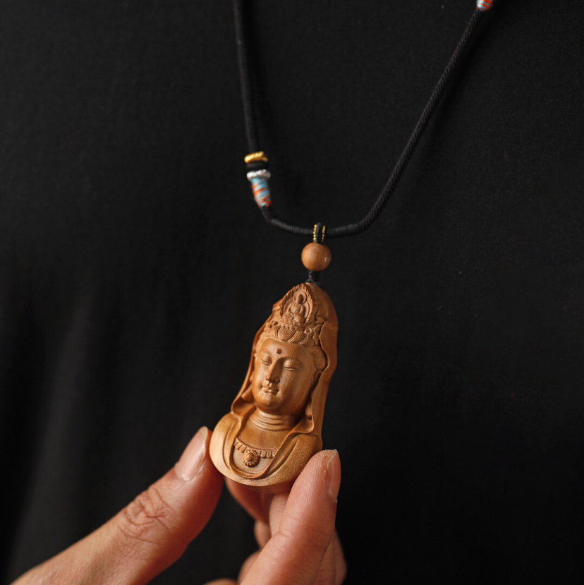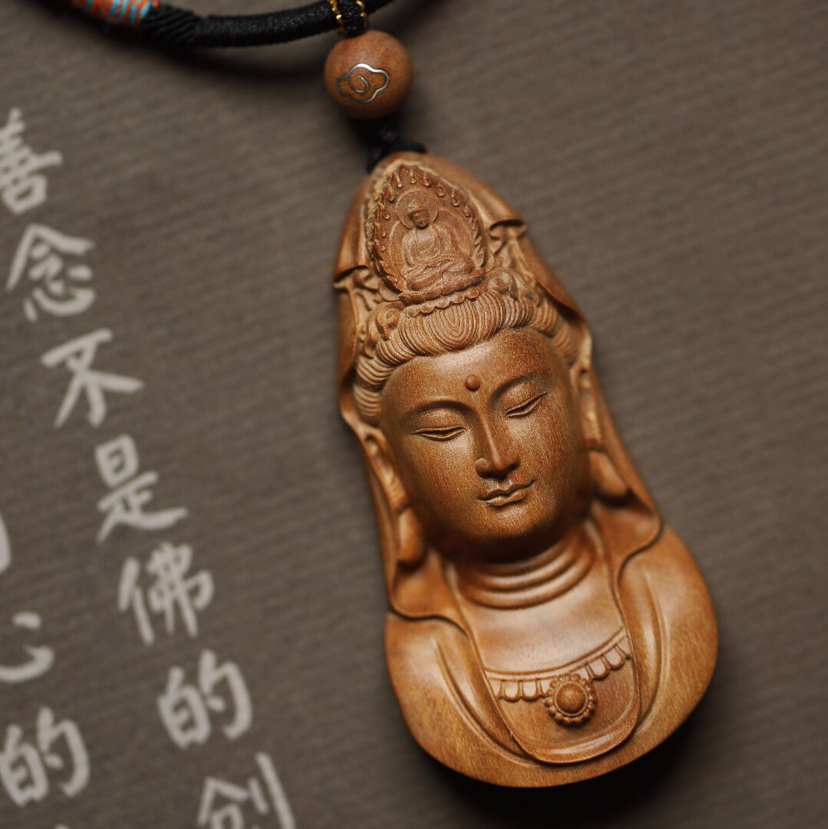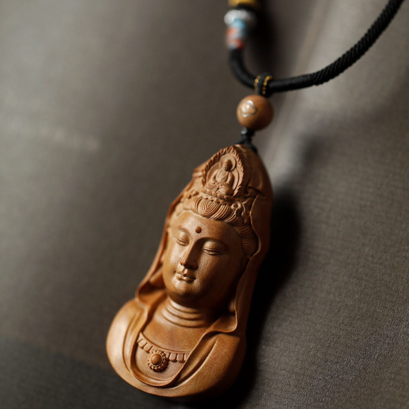 老山檀【观音】吊坠 色泽温雅,立体雕刻, 观音面容祥和,气韵深幽, 佩戴稳重大气,吉祥安康!