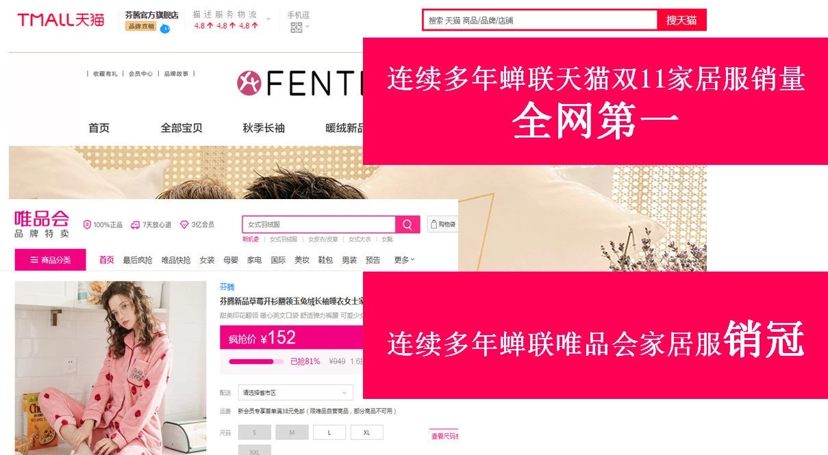 🔺连续多年蝉联「唯品会」居服销售榜冠军