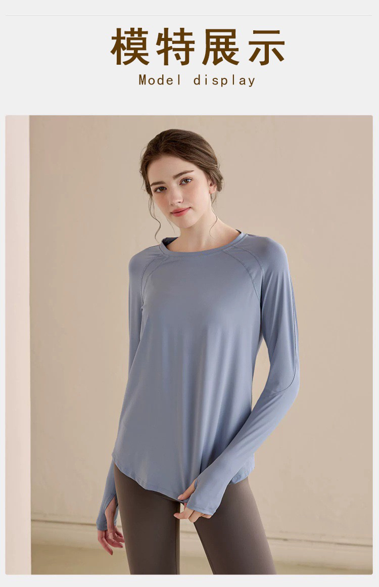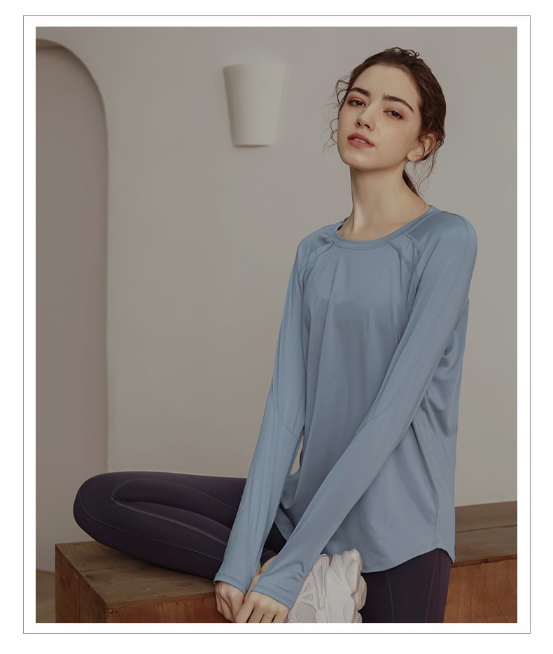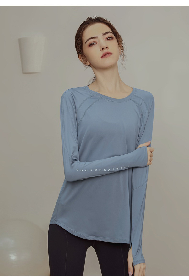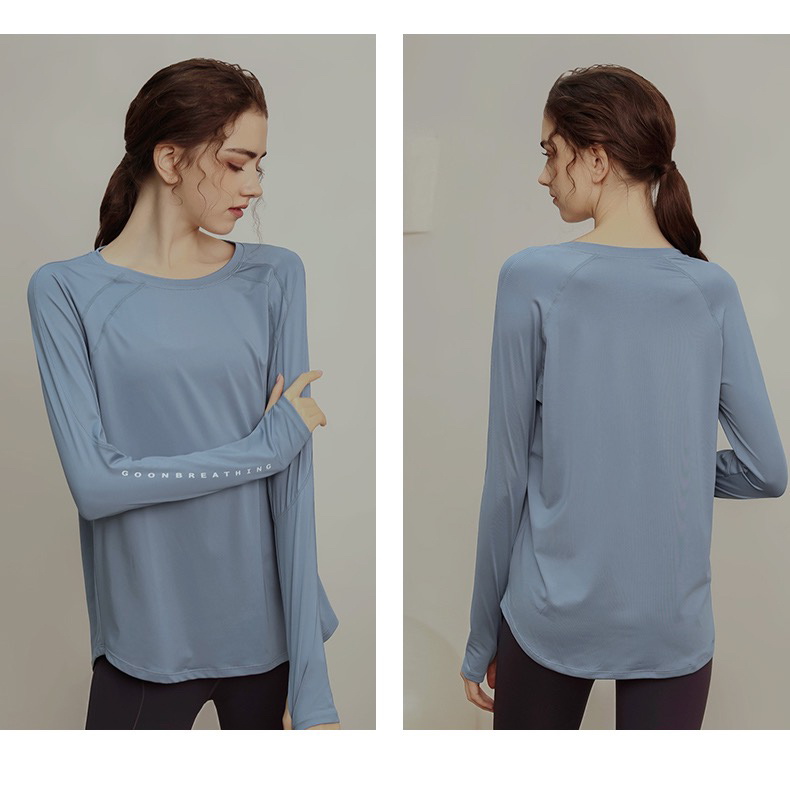 新款宽松速干运动上衣女长袖T恤瑜伽服透气跑步健身服显瘦健身衣 KML BT-ARWT310