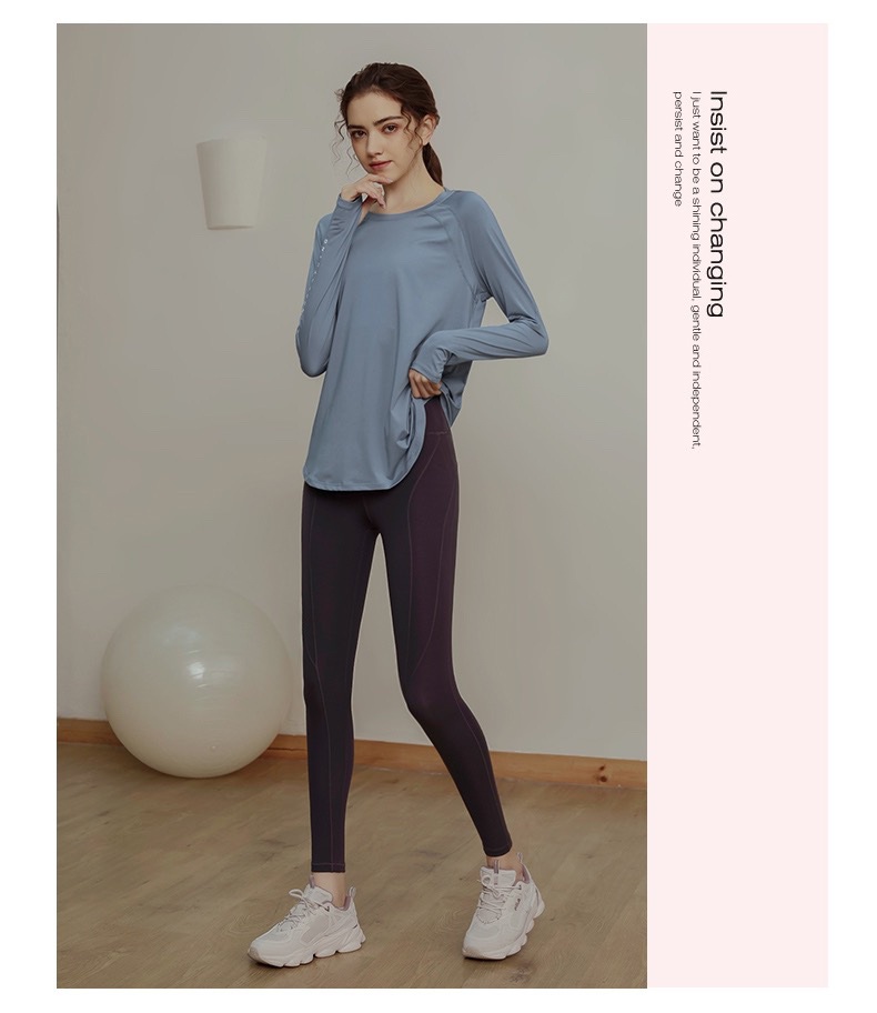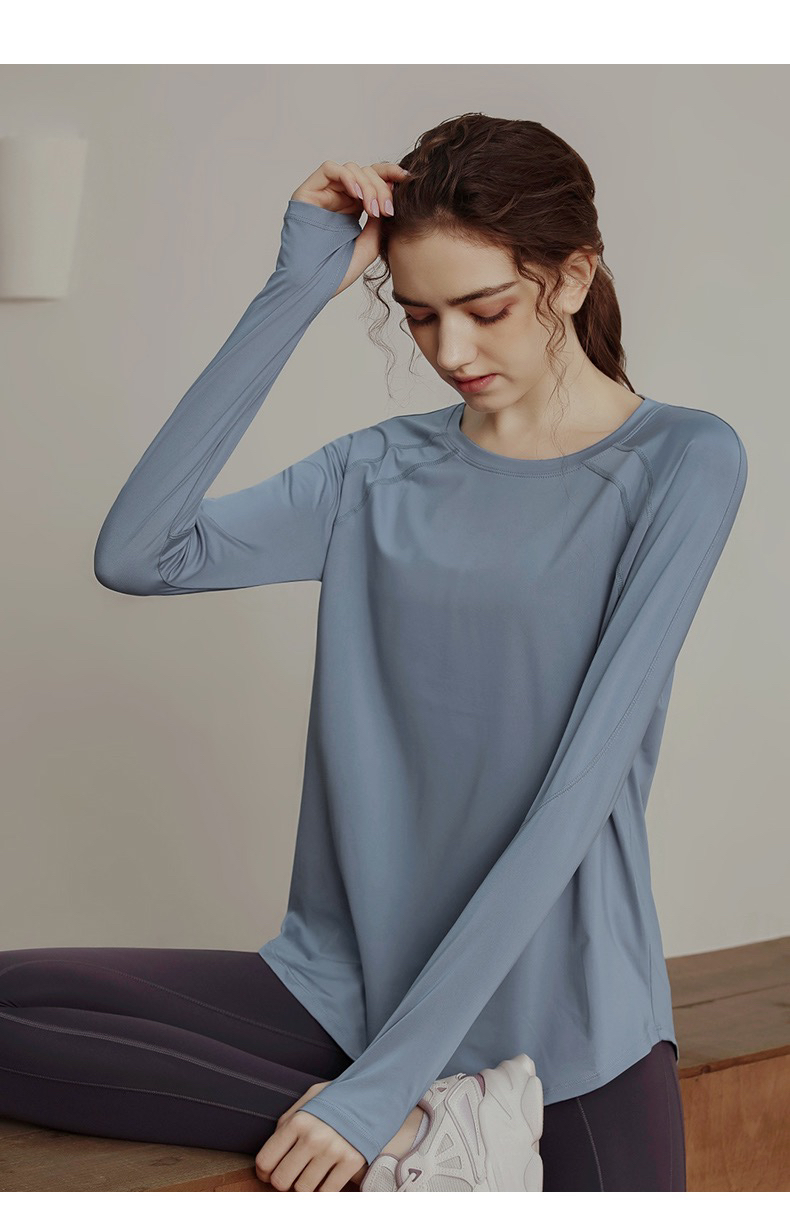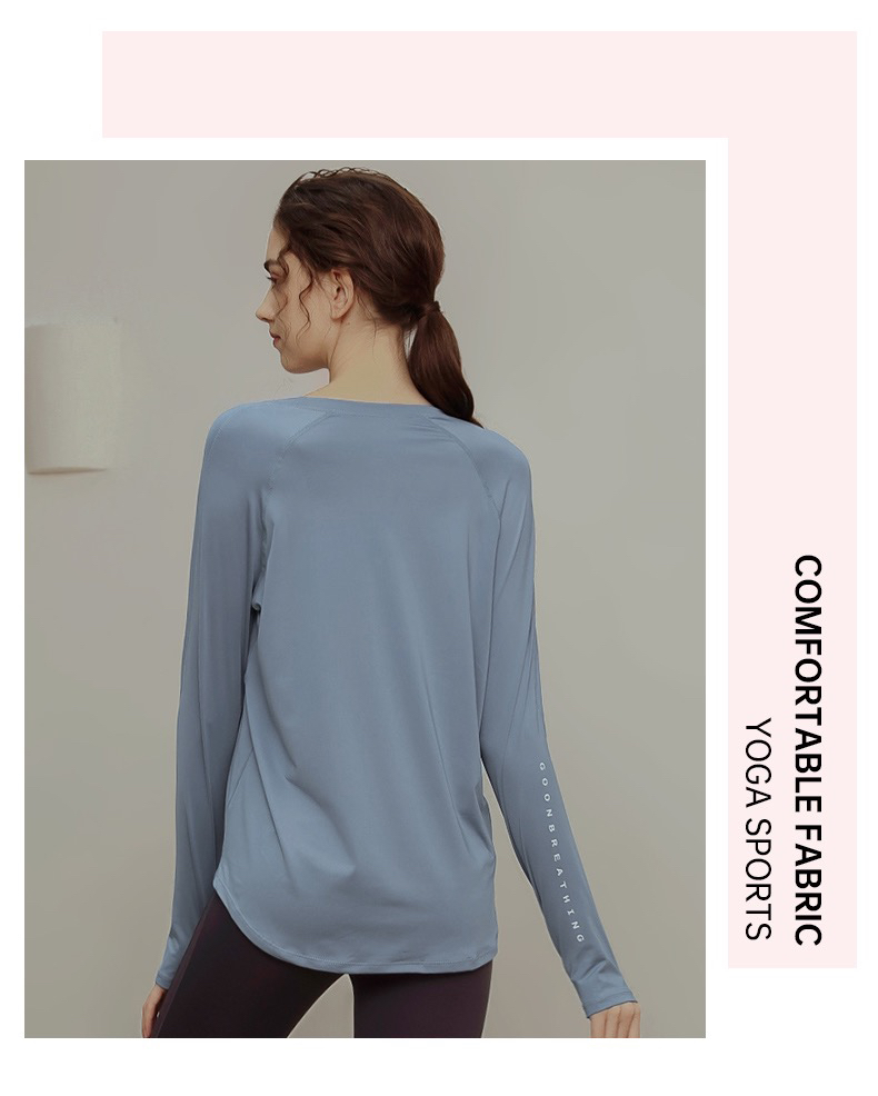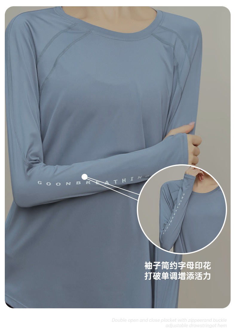 新款宽松速干运动上衣女长袖T恤瑜伽服透气跑步健身服显瘦健身衣 KML BT-ARWT310