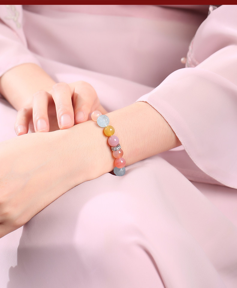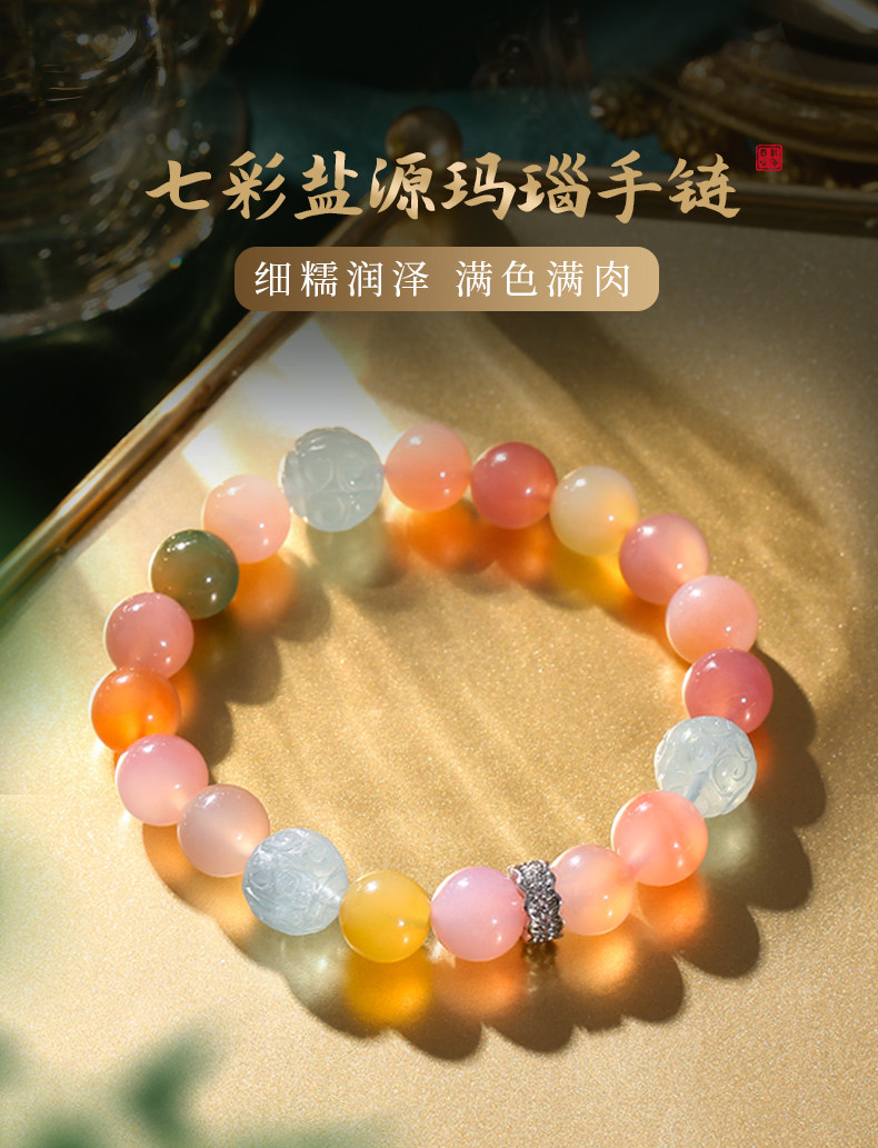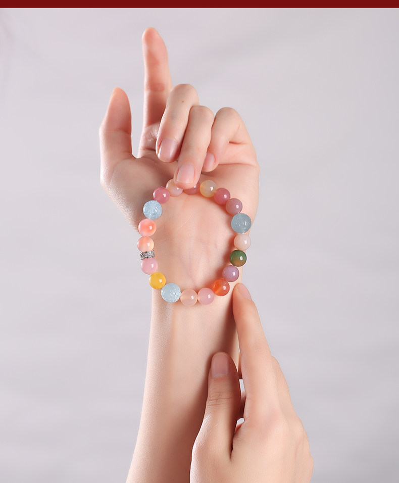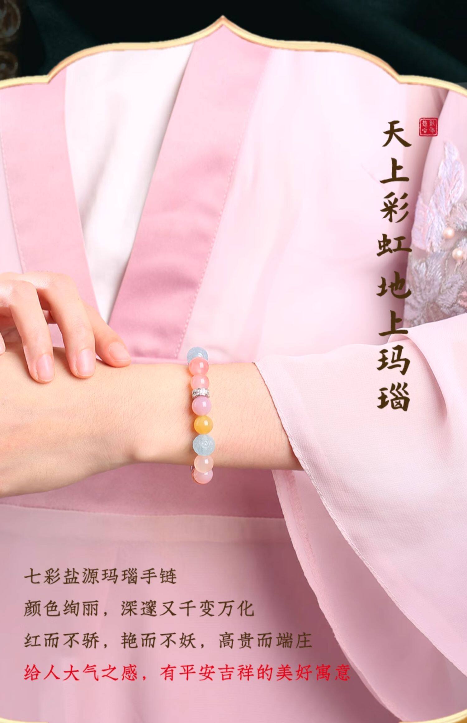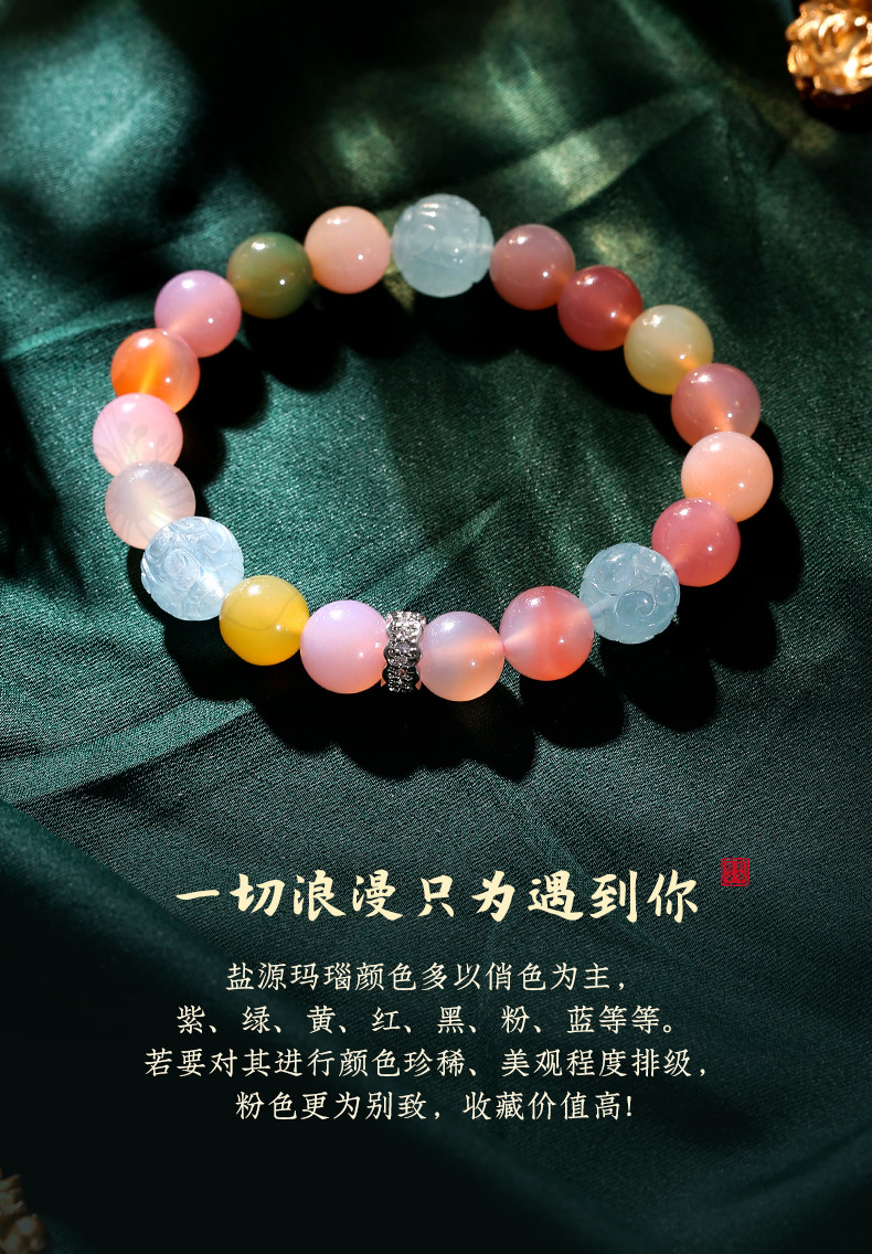【祈愿吉品】七彩盐源玛瑙手链女 美气韵焕发柔雅绽放海蓝宝手串