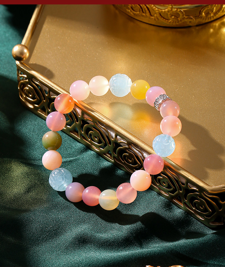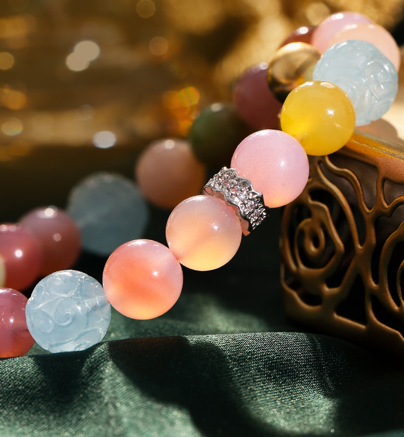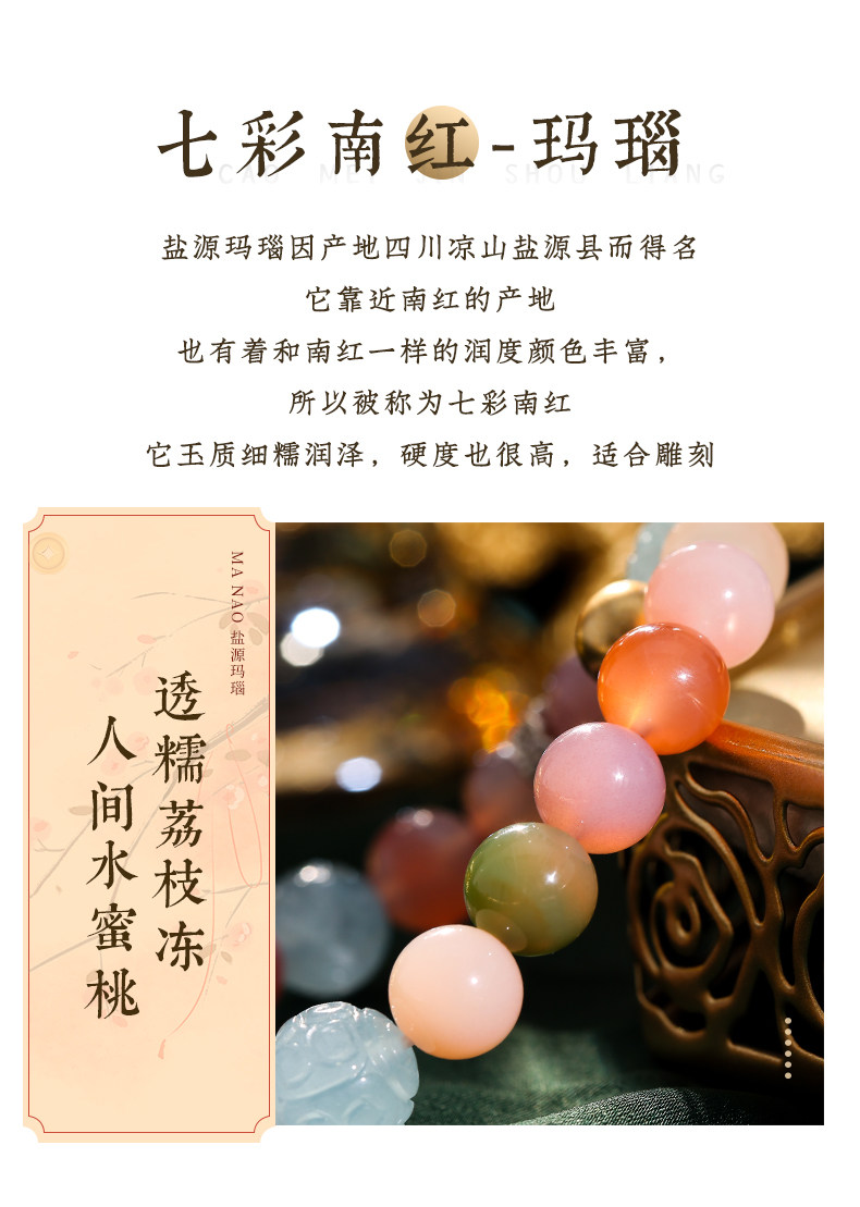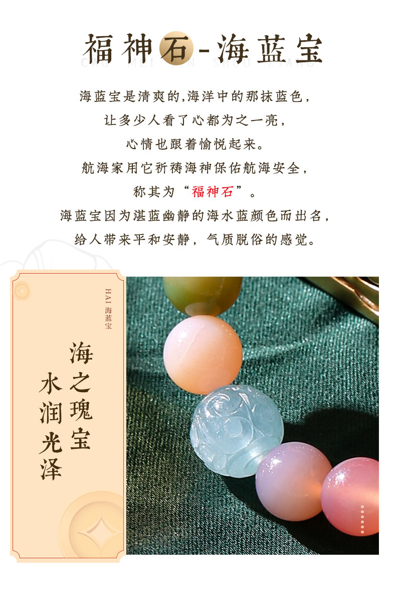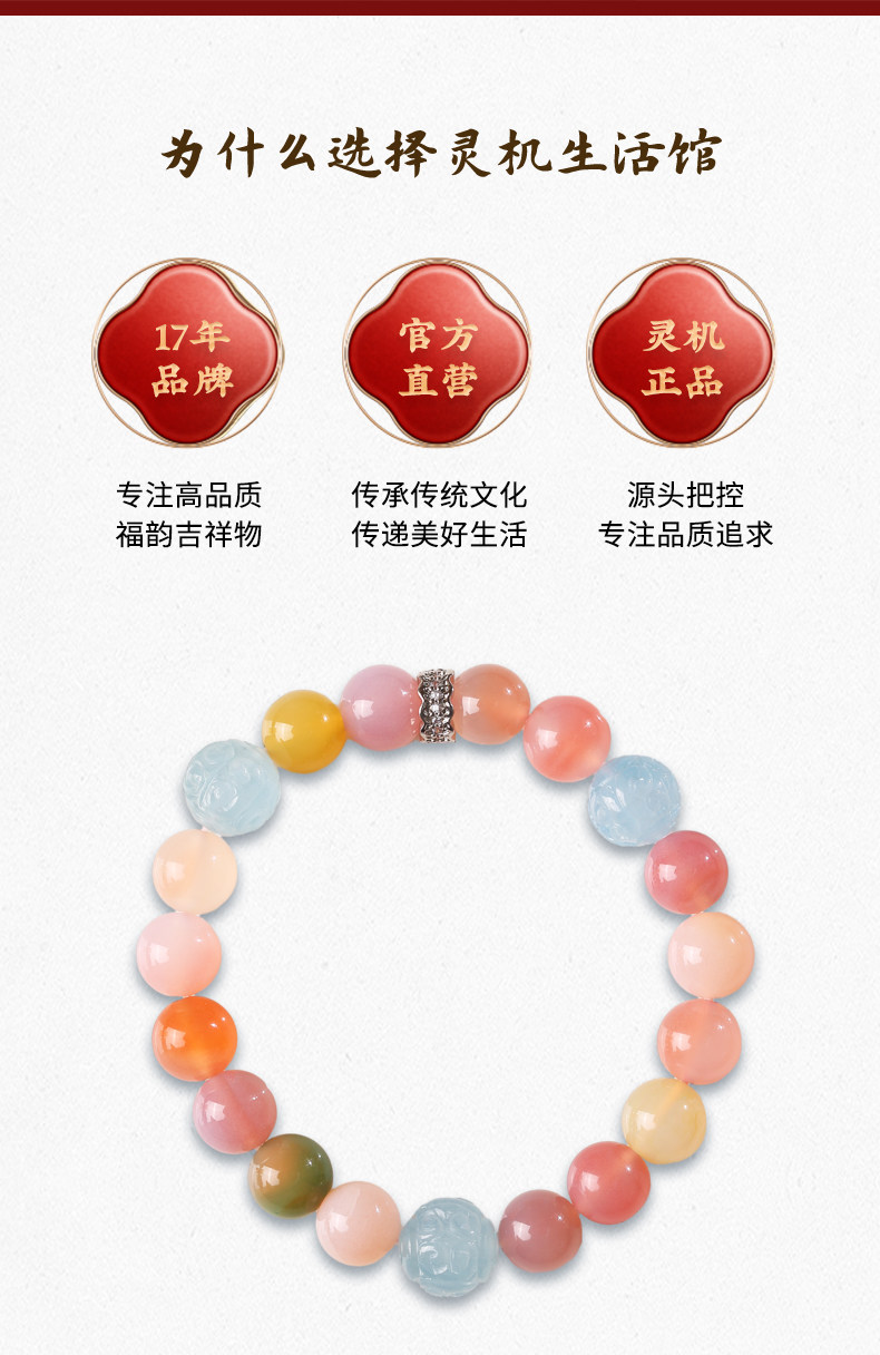 【祈愿吉品】七彩盐源玛瑙手链女 美气韵焕发柔雅绽放海蓝宝手串