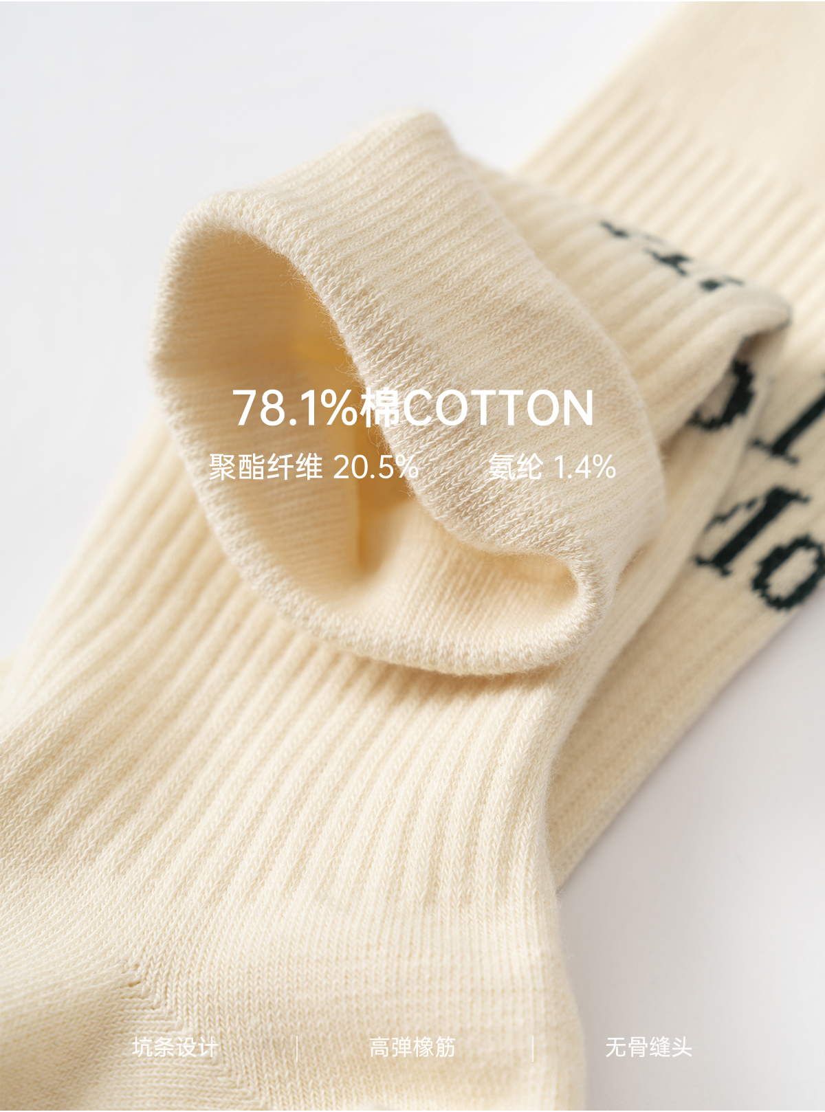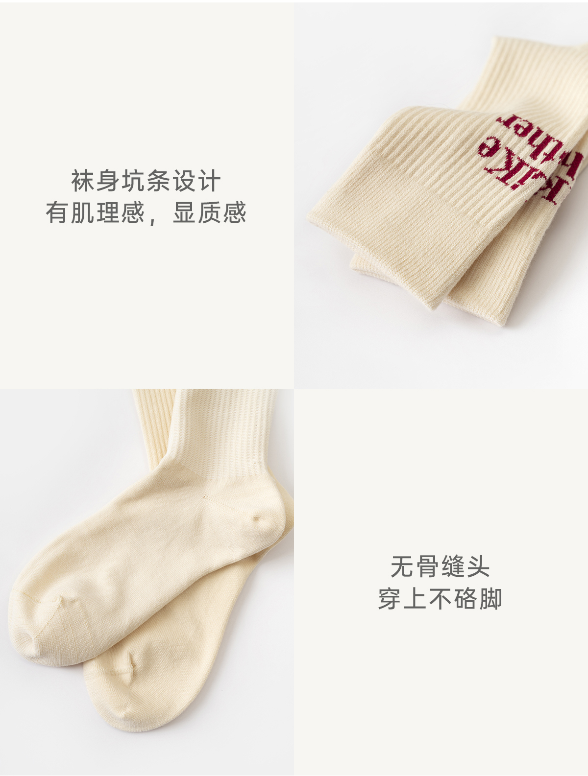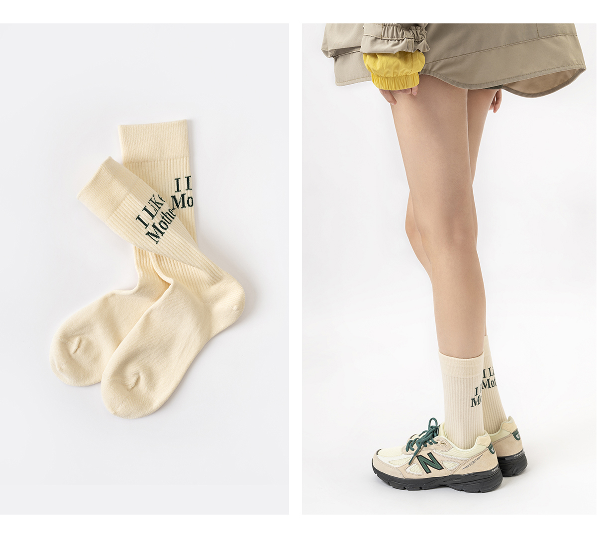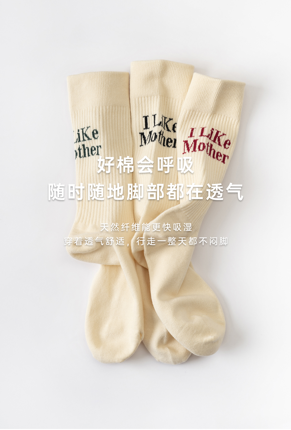 靴下物精梳棉中筒袜女纯棉白色INS字母印花潮透气耐穿纯色堆堆袜