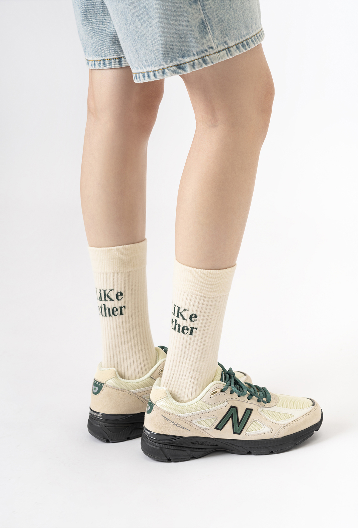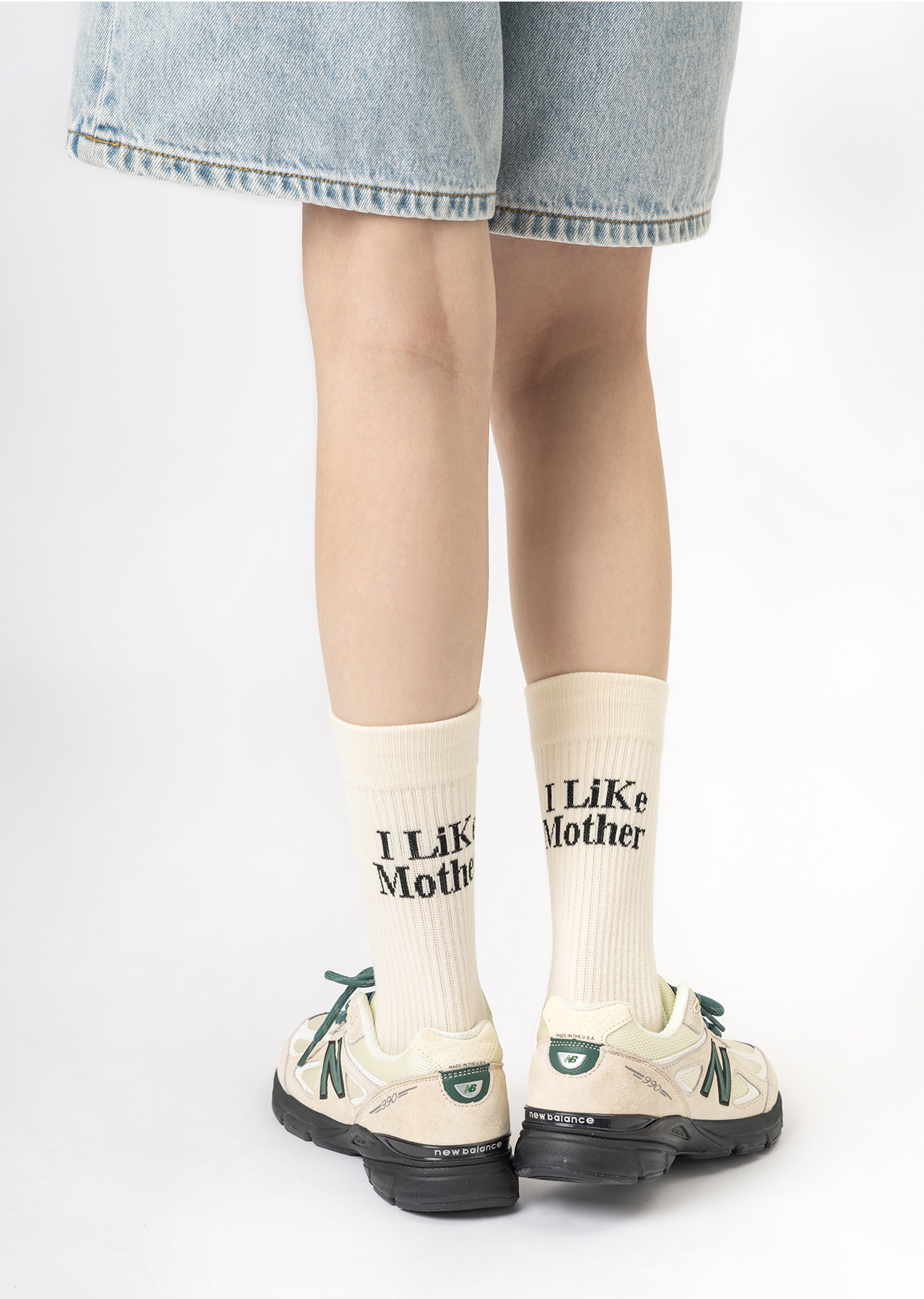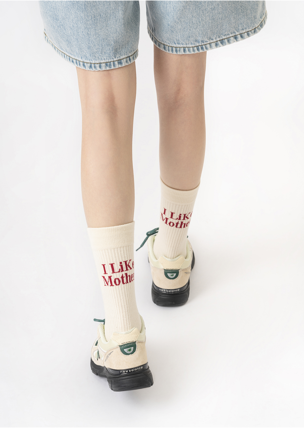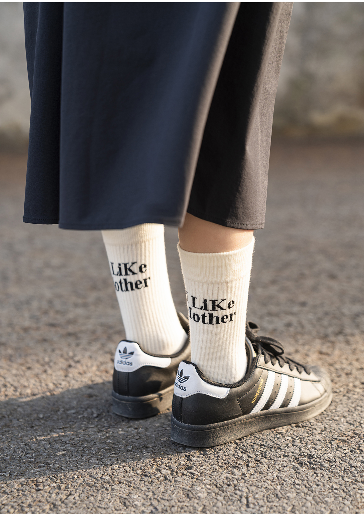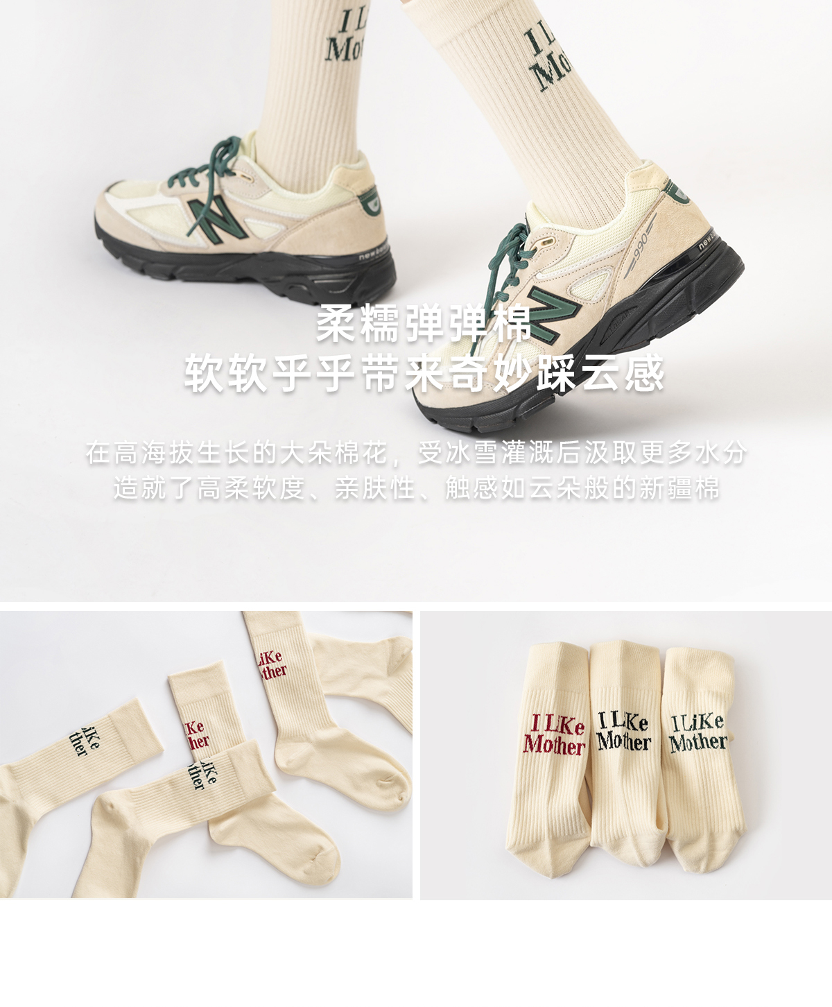 靴下物精梳棉中筒袜女纯棉白色INS字母印花潮透气耐穿纯色堆堆袜