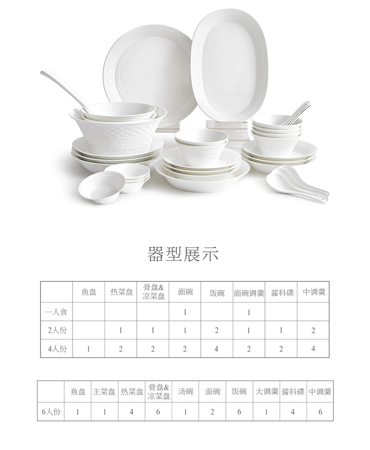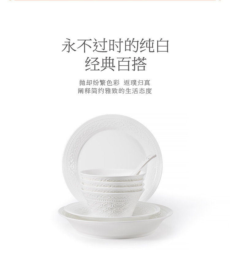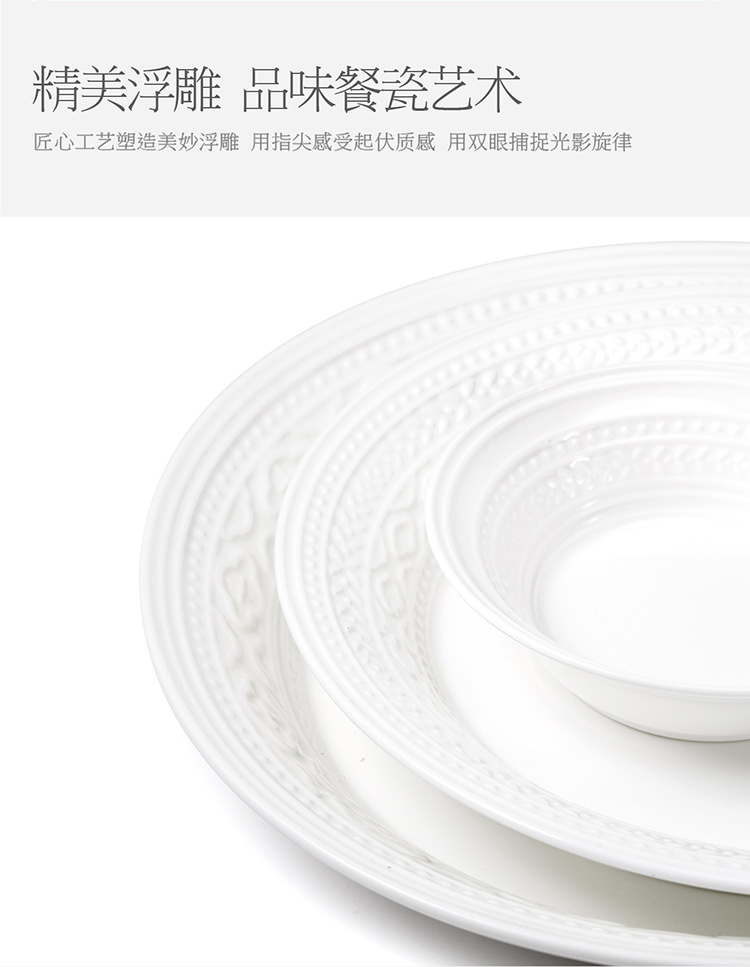 【6F】玛戈隆特 6人份纯白浮雕餐具套装简约创意个性盘碗碟套装家用礼品